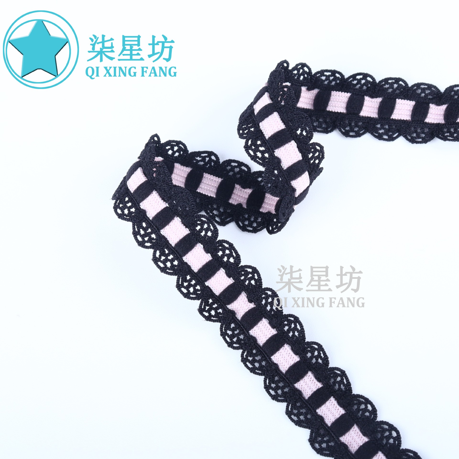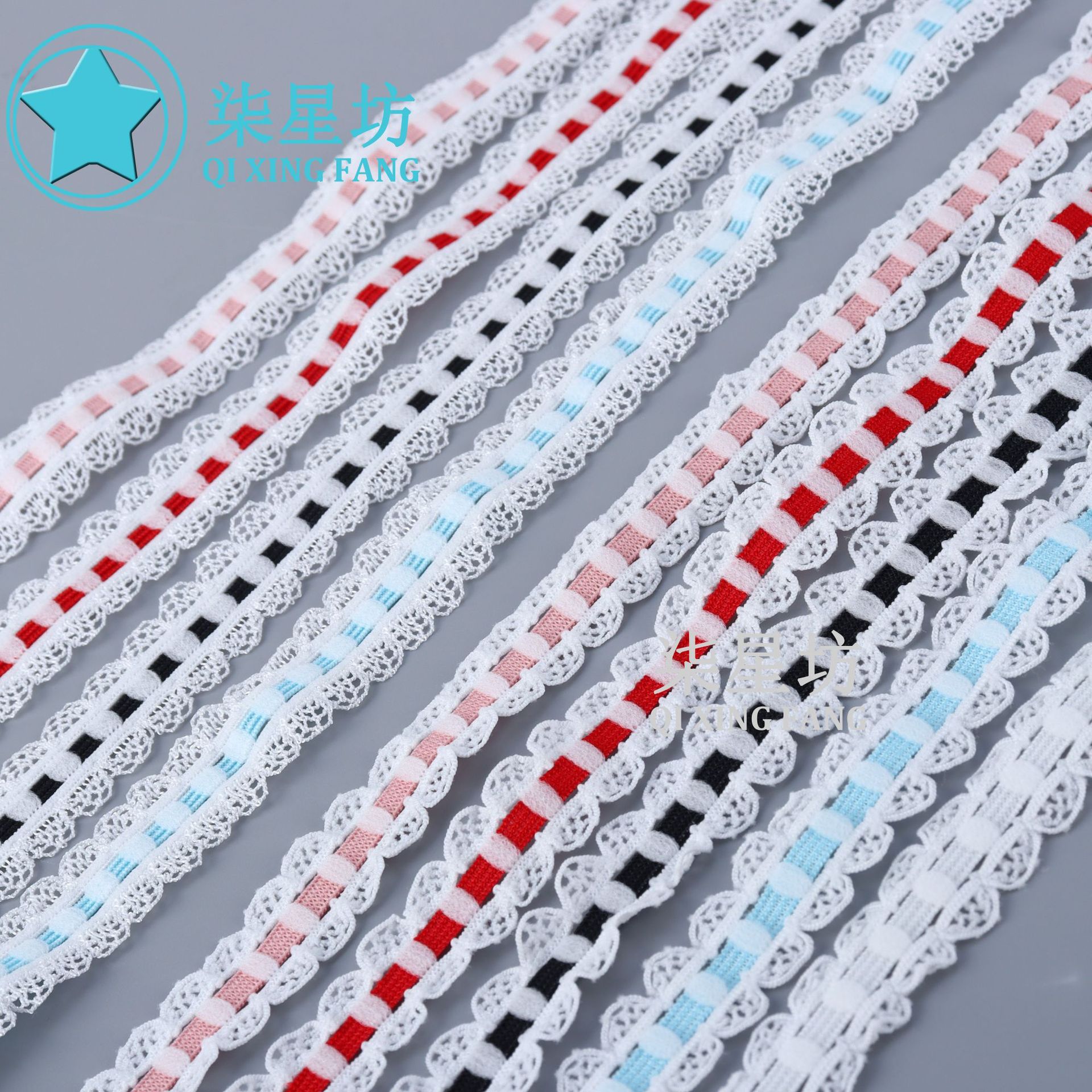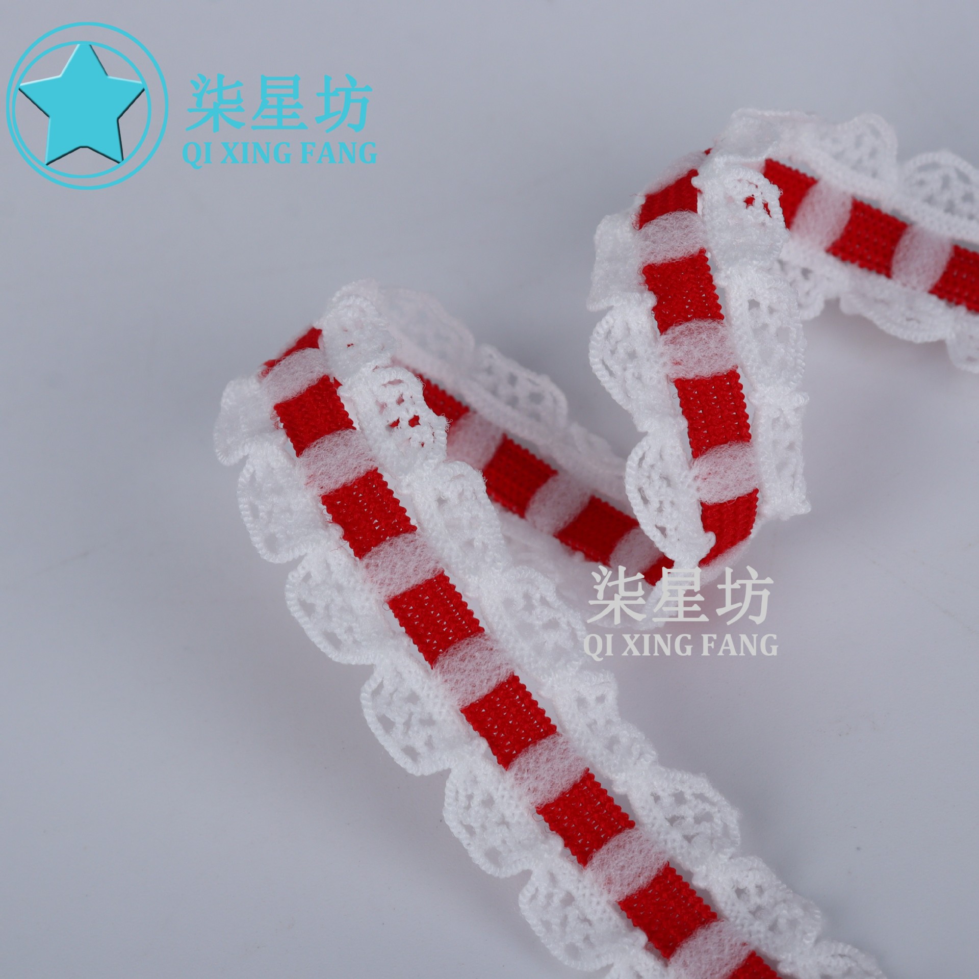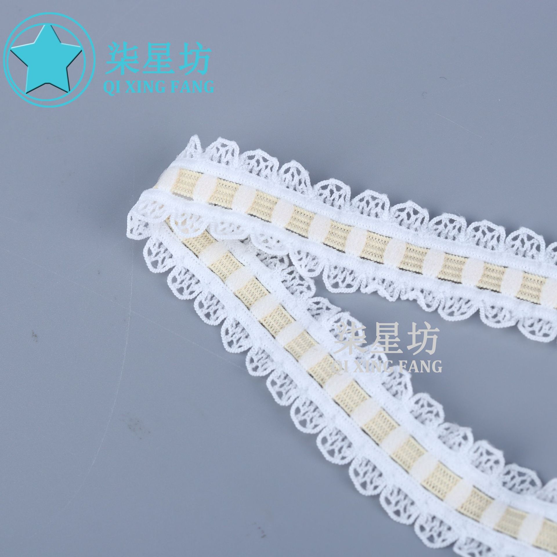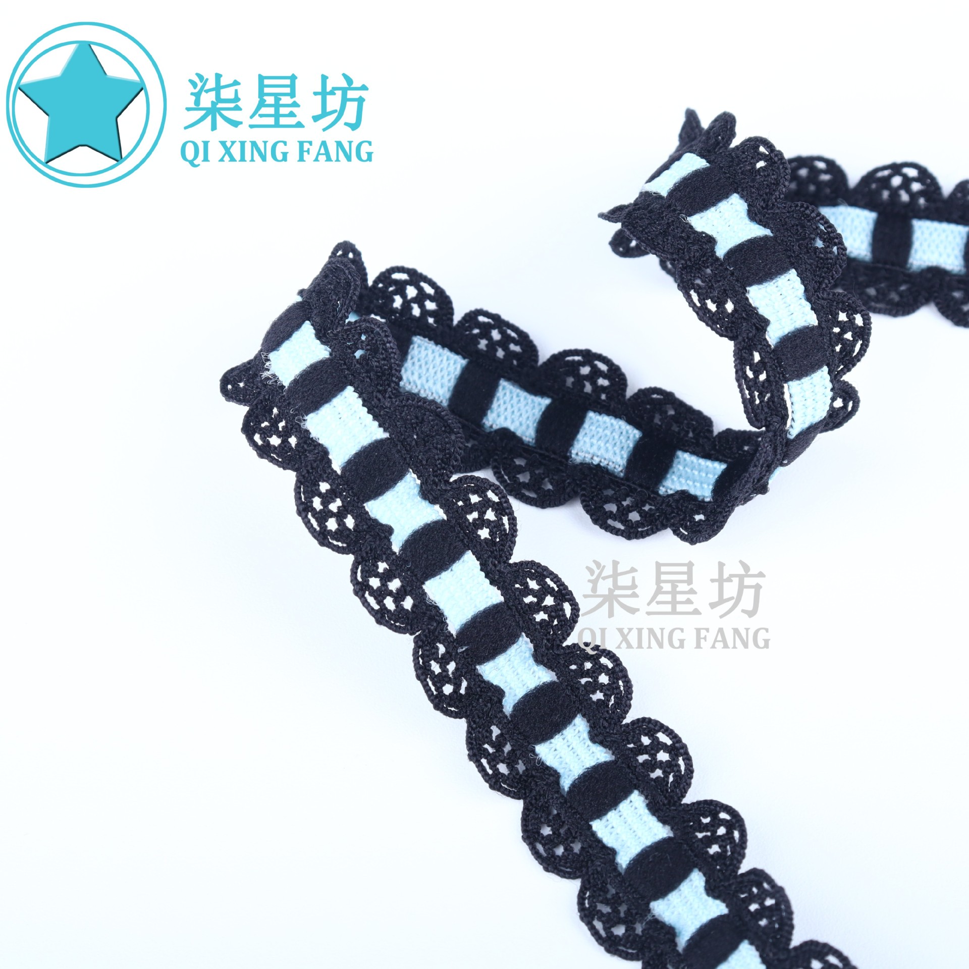 弹力蕾丝粉蓝清新花边橡筋褶带手工DIY装饰玩偶镂空梯子格松紧带