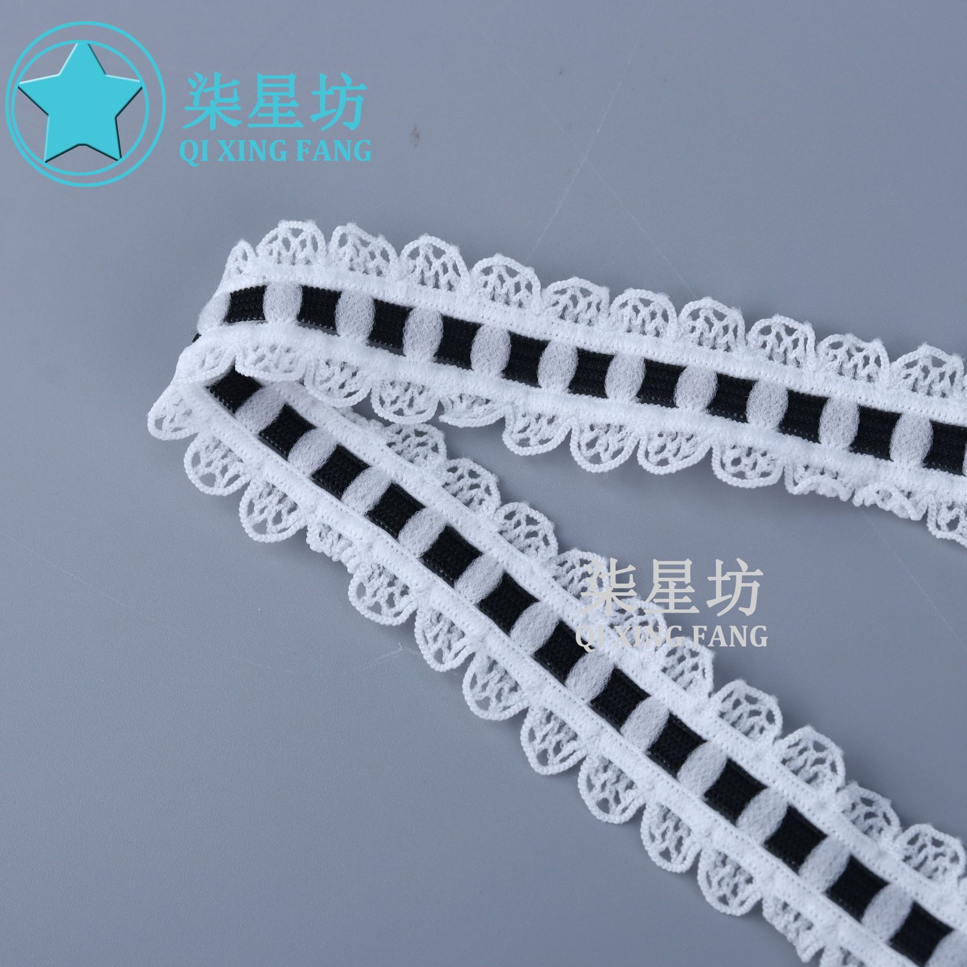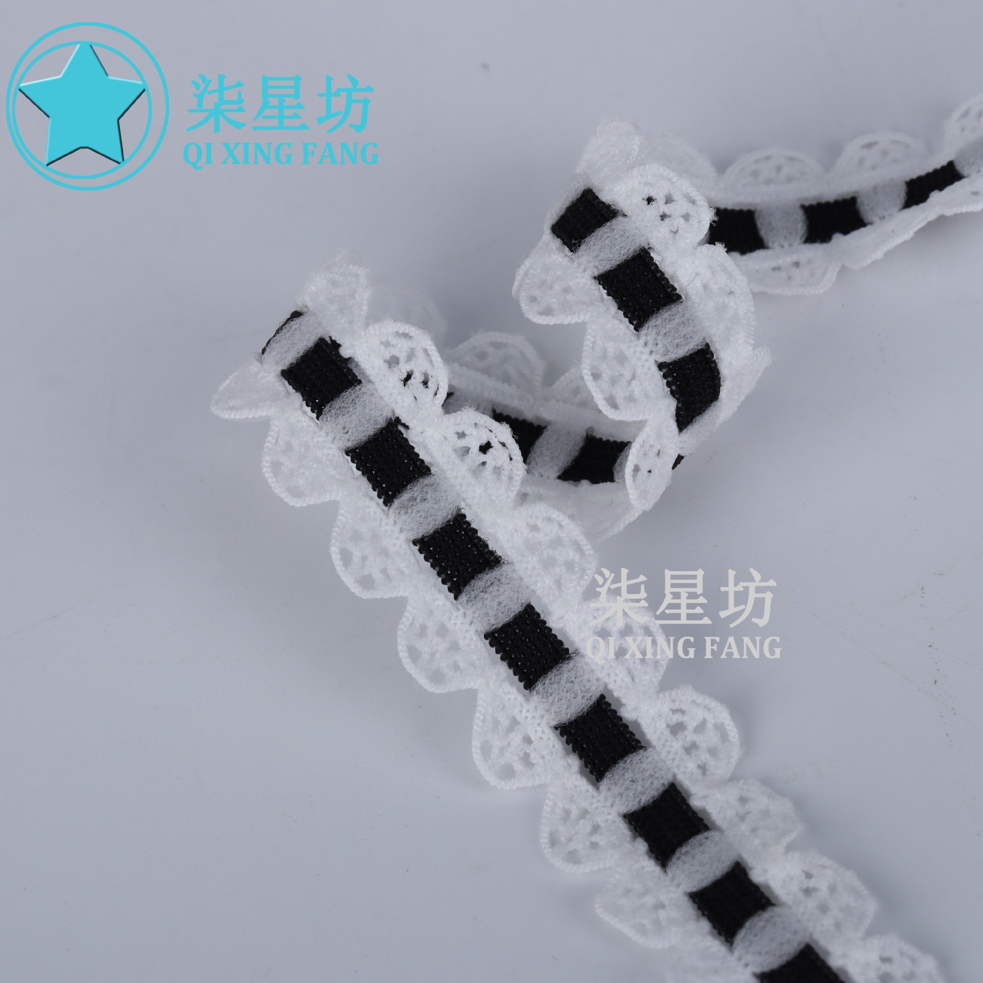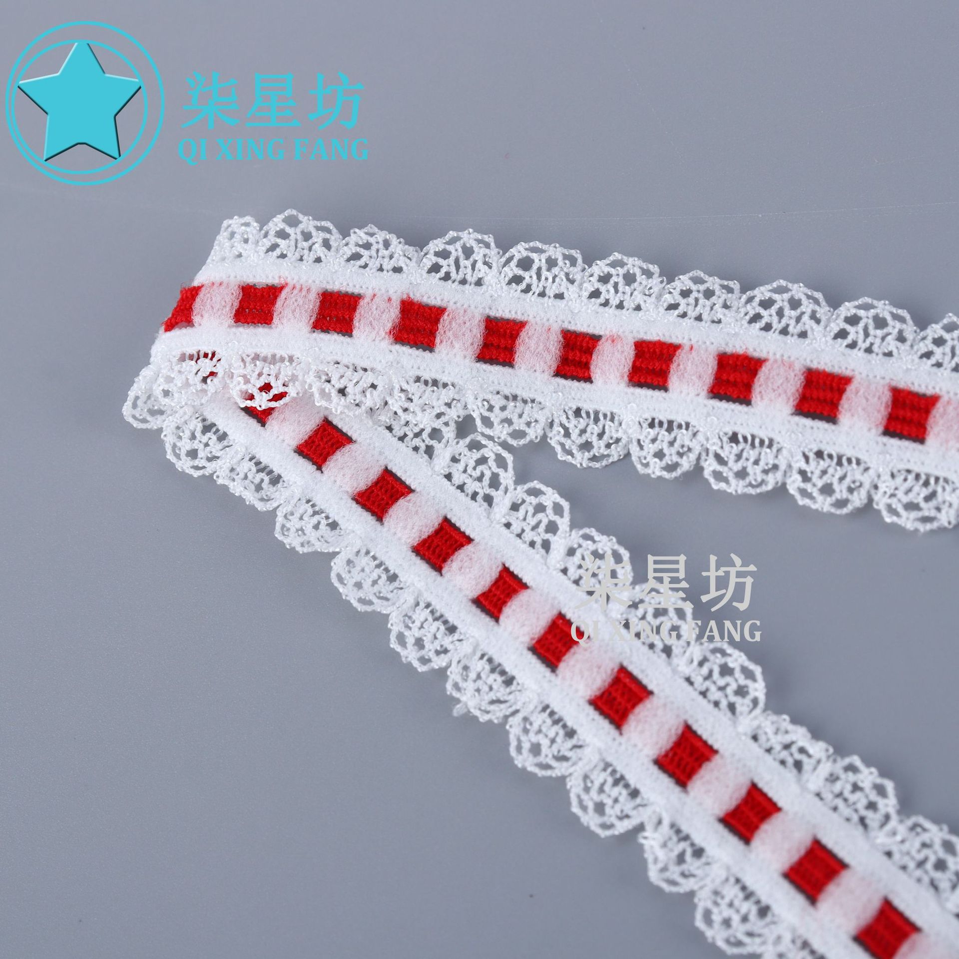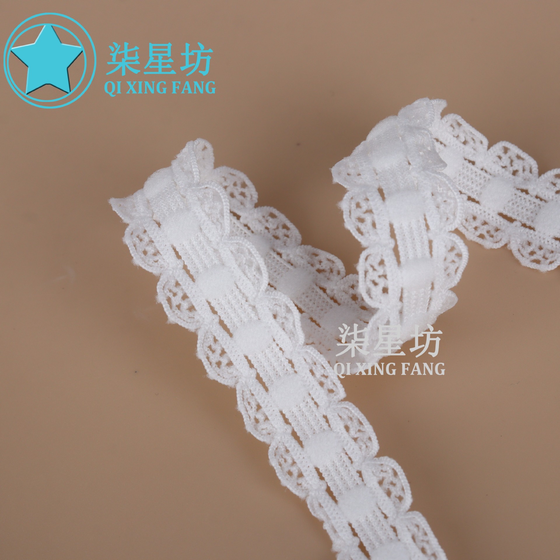 弹力蕾丝粉蓝清新花边橡筋褶带手工DIY装饰玩偶镂空梯子格松紧带