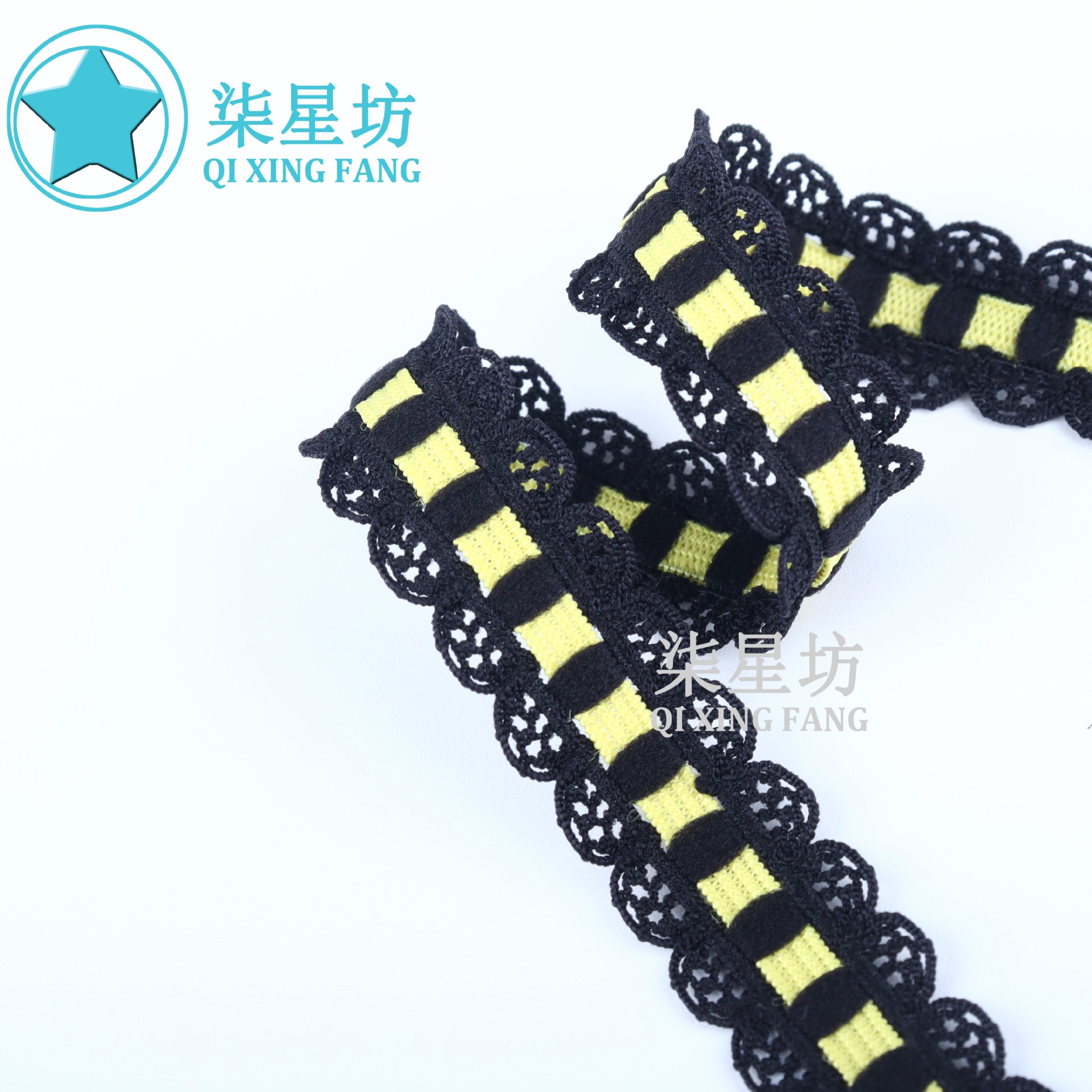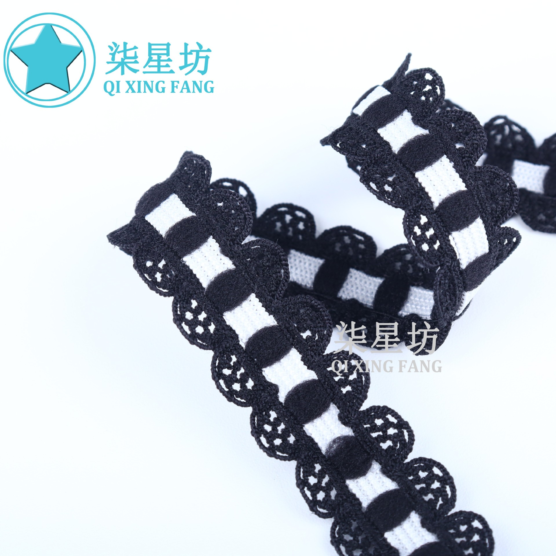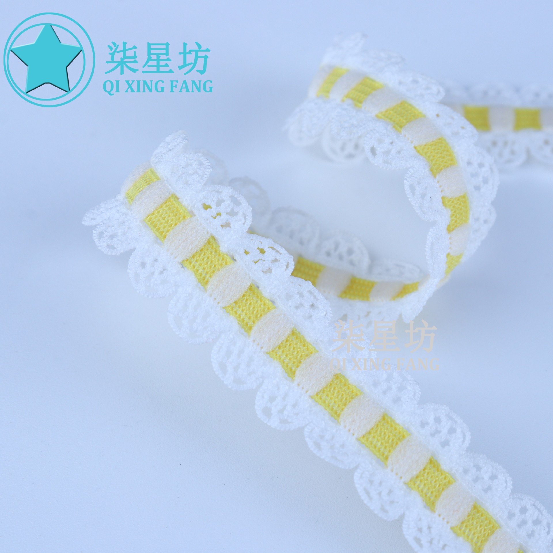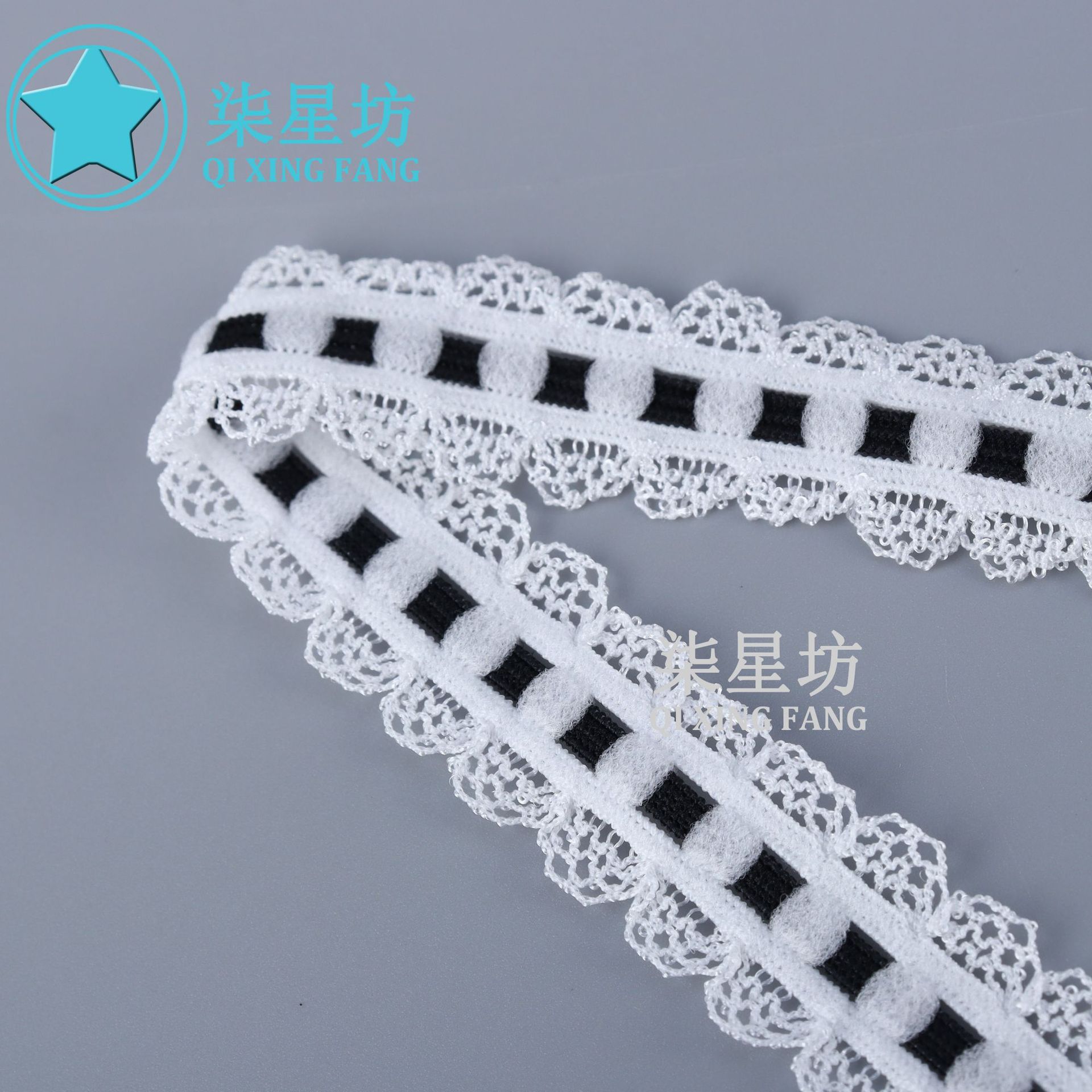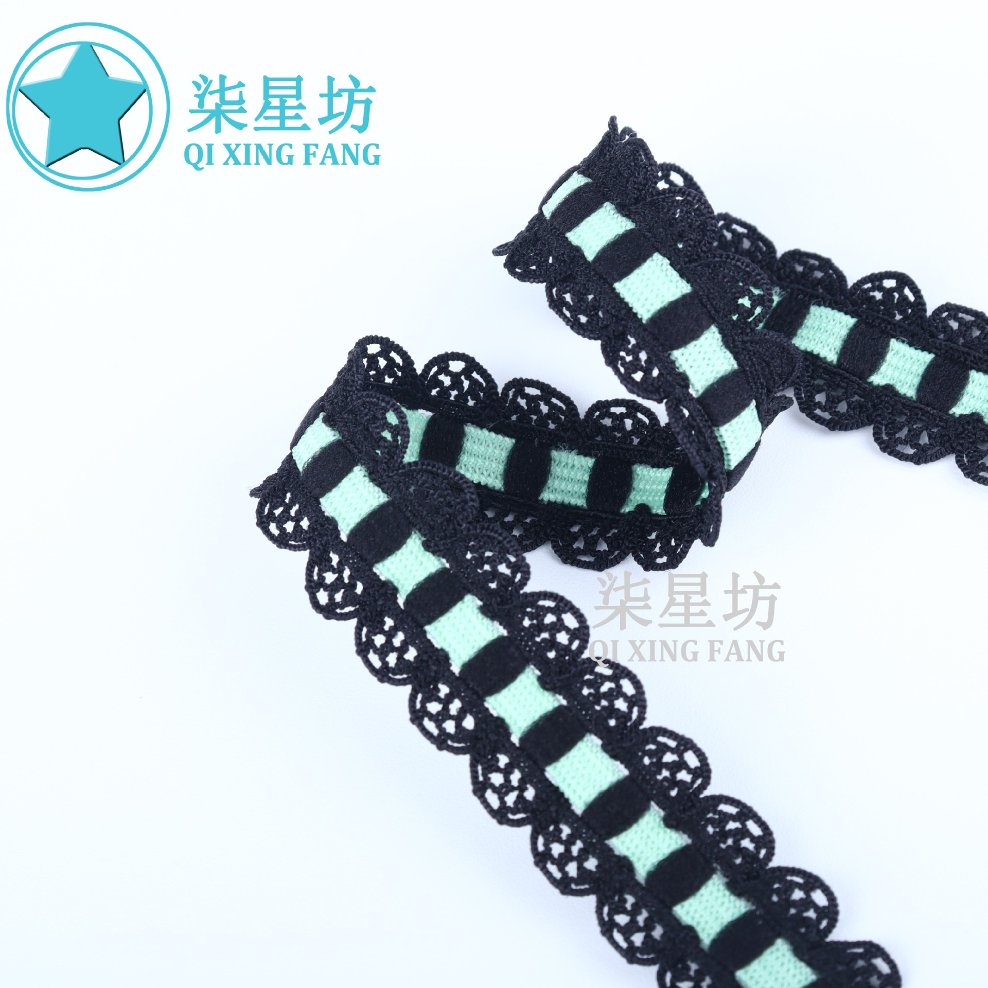 弹力蕾丝粉蓝清新花边橡筋褶带手工DIY装饰玩偶镂空梯子格松紧带