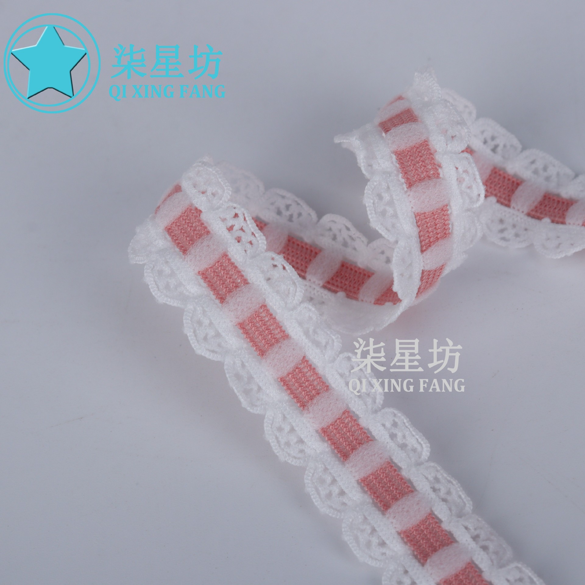 Эластичная кружевная розовая свежая кружевная резиновая складка с ручными декоративными куклами DIY с полыми лестничными решетками