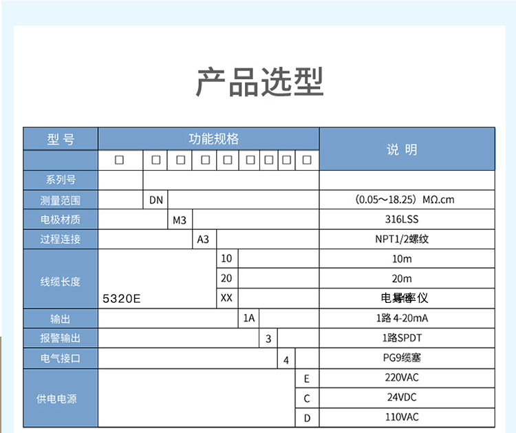 CCT-8301А отдельный счетчик; CCT8301A с CON5121Y-13- 10.01m металлический электрод; CCT8301A с CON3123Y-13- 5m с металлическим электродом 0,1; CCT8301A с CON3124Y-14- 5m с металлическим электродом 1,0; CCT8301A с CON2126Y-13- 5.1m Графитовый электрод; Измеритель 8301a + металлический высокотемпературный патрон 1,0 CTS-6323- 10m; 8301а метр +0,1 металлический высокотемпературный патрон CTS-6322- 10m; Измеритель 8301a + металлический высокотемпературный патрон 0,01 RTS-6321- 10m; Головка метра 8301a + 1,0 металлическая высокотемпературная резьба CTS-6223- 10m; 8301а метр +0,1 металлическая высокотемпературная резьба CTS-6222- 10m; Головка метра 8301a + металлическая высокотемпературная резьба 0,01 RTS-6221- 10m; Для получения информации о других характеристиках, пожалуйста, обратитесь в службу поддержки клиентов; CON2126Y-13- 5m; 8301