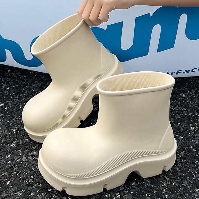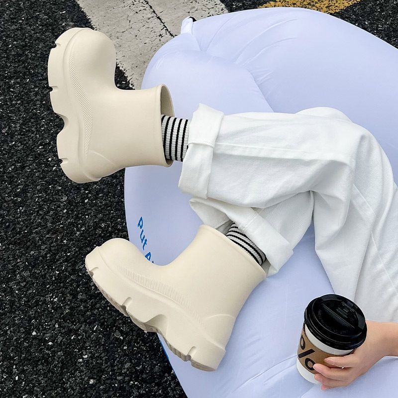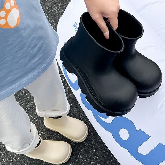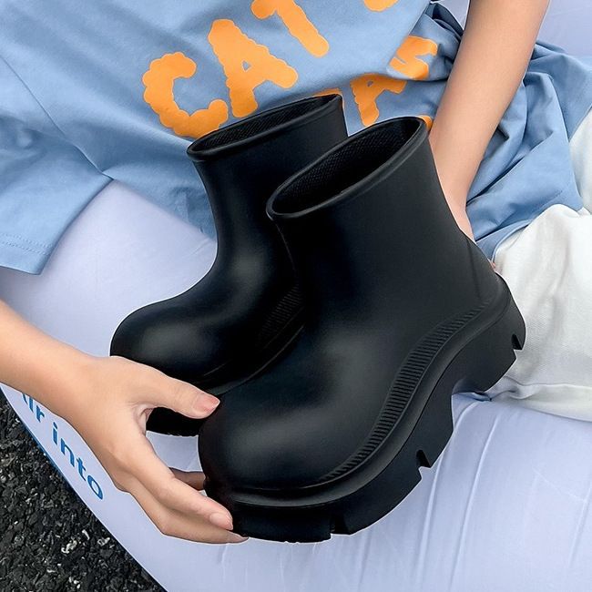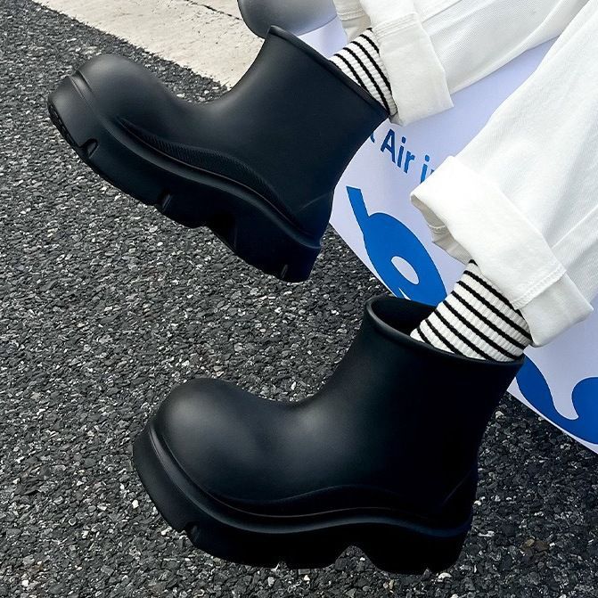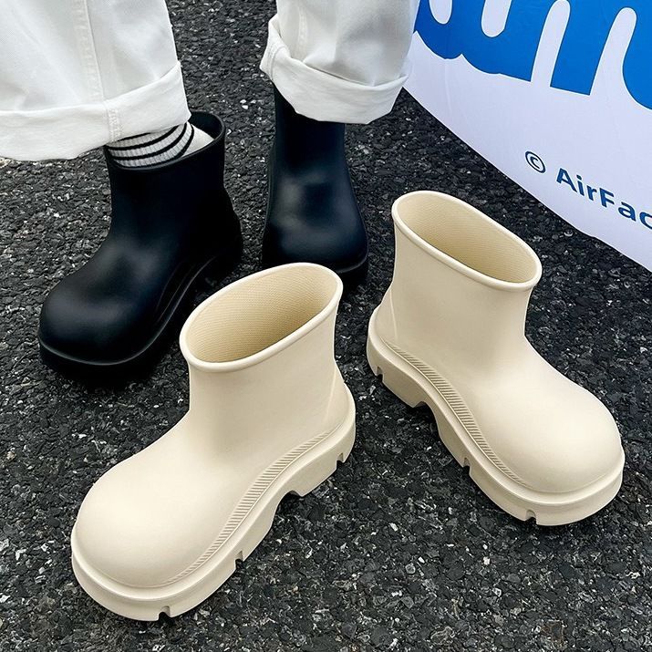 Новый модный тренд 2025 дождевые сапоги носить наружные туфли с толстой подошвой дождевой сапоги короткая трубка для взрослых повышая водонепроницаемость