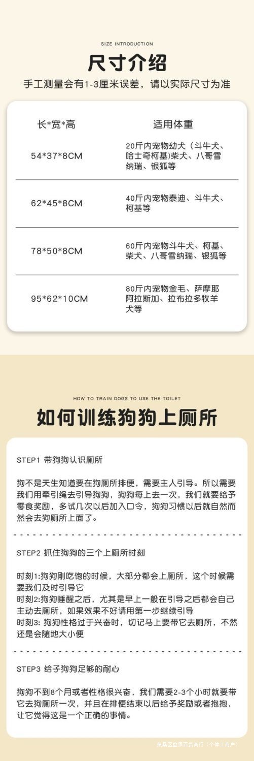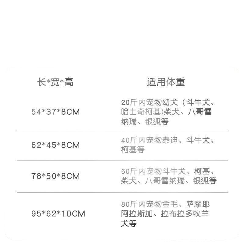 [52*35*8 см] Подходит для щенков; [61*45*8 см] Подходит для маленьких собак; [78*50*8 см] Подходит для собак среднего размера.; [95*62*10 см] Подходит для собак среднего размера.
