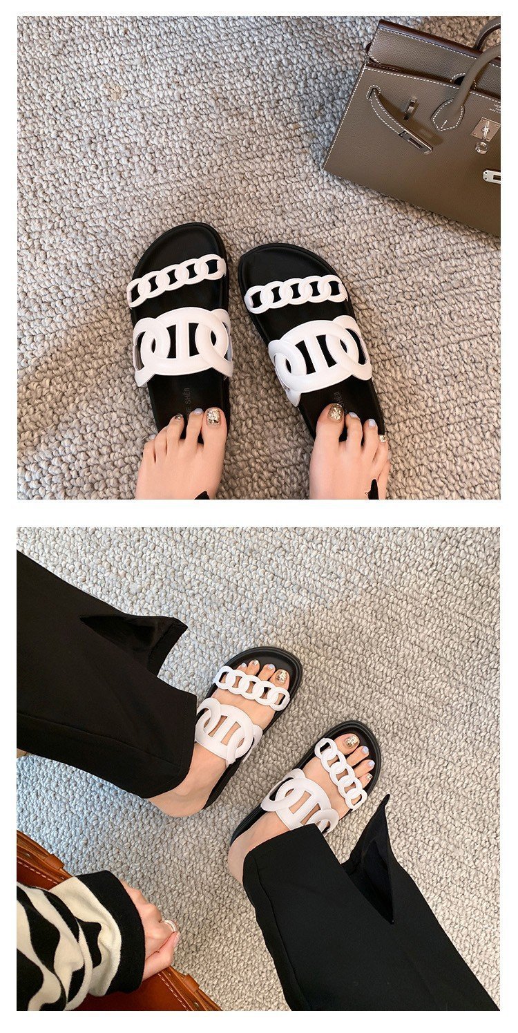 Европейская станция 2025 Новый европейский и американский кроссовер шезлонг досуг Толстый круг цепи пляжные тапочки женщины