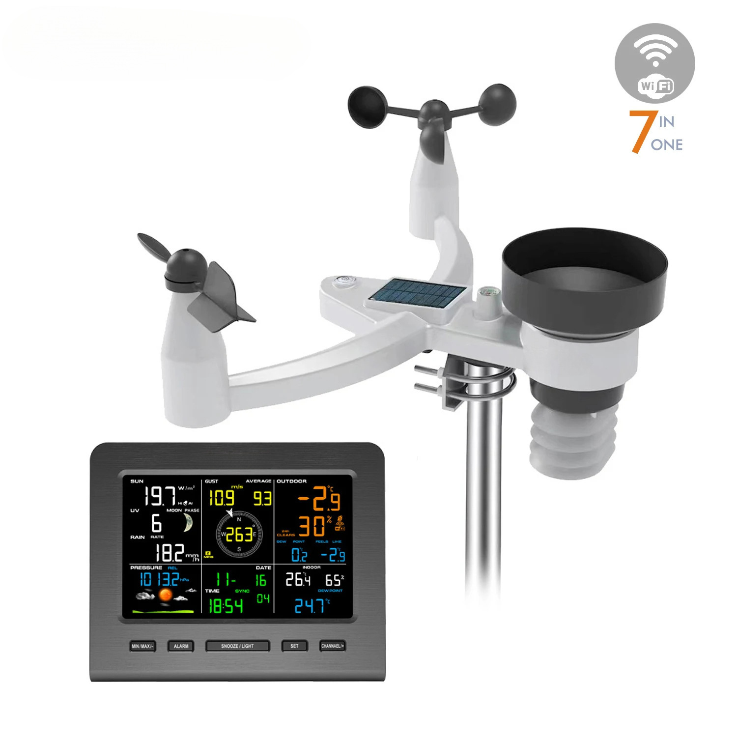 0360 7-in-1 метеостанция WIFI Скорость ветра ветер УФ освещенность дождь температура и влажность Прогноз погоды Электронные часы