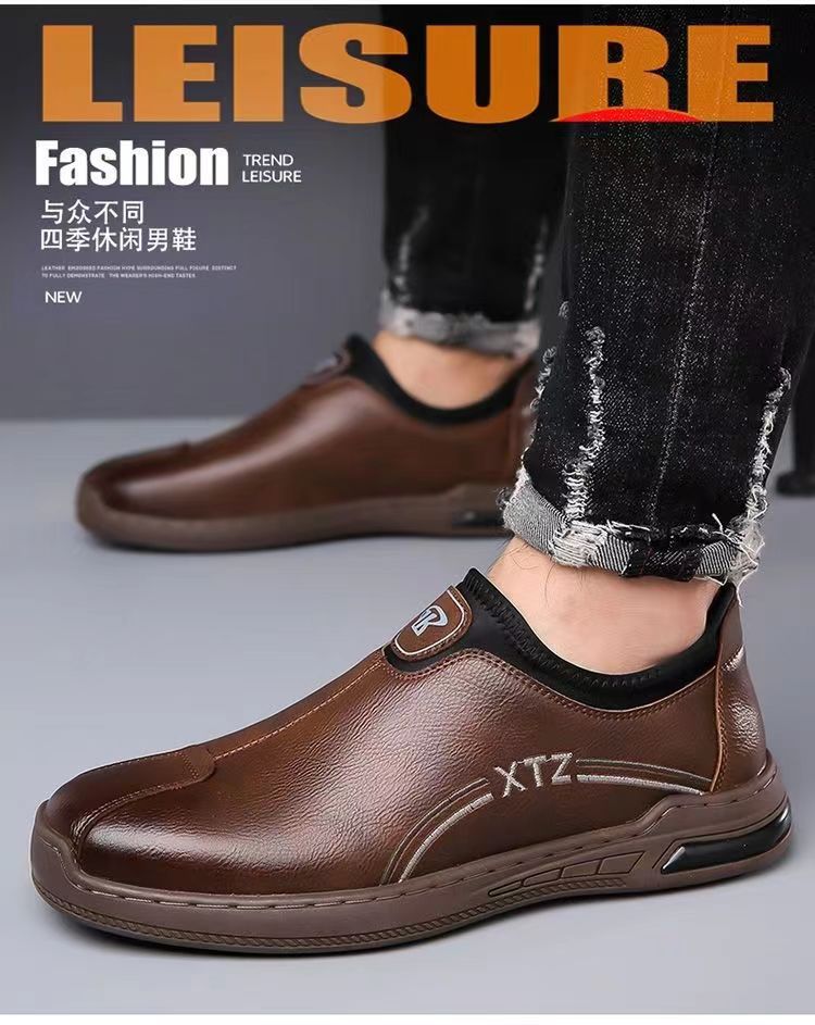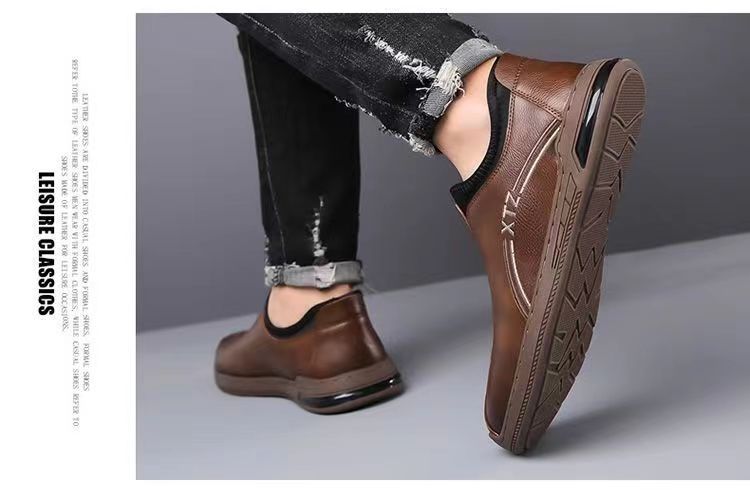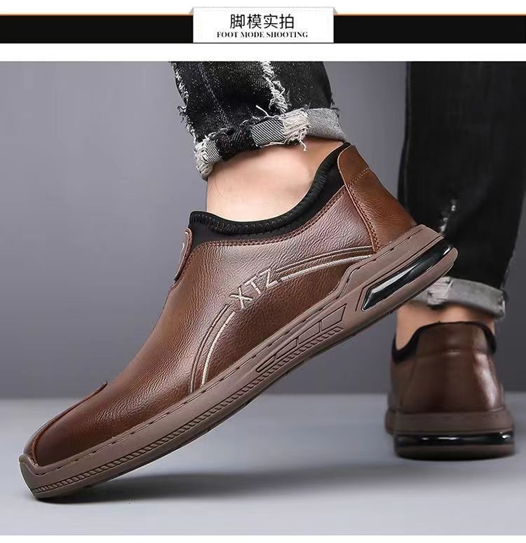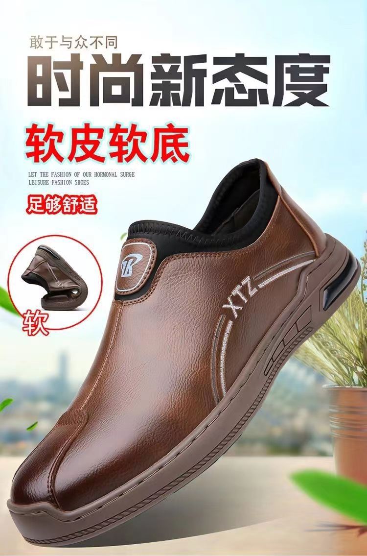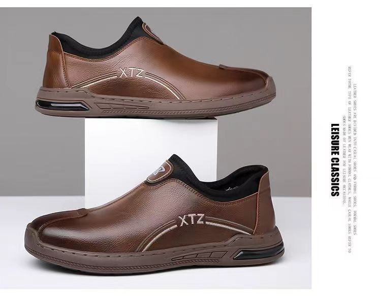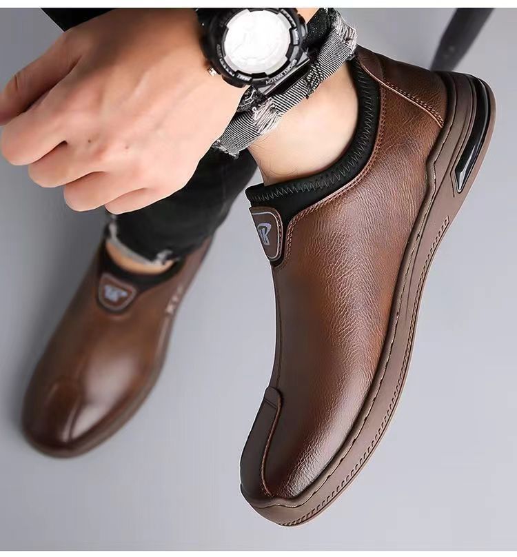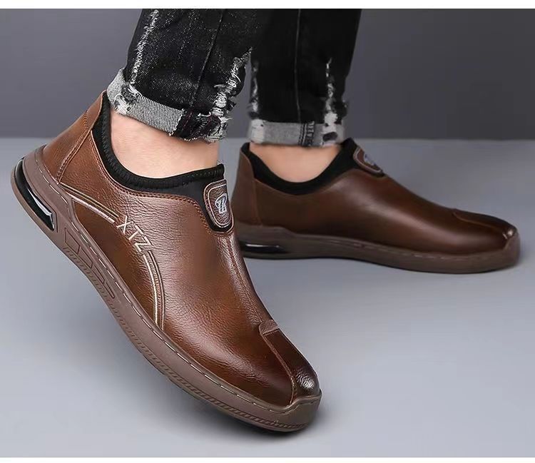 Кожаная обувь новый мужской кожаный водонепроницаемый один педаль повседневная кожаная обувь мягкая подошва мягкая лапша мужская обувь повседневная бобовая обувь мужская обувь