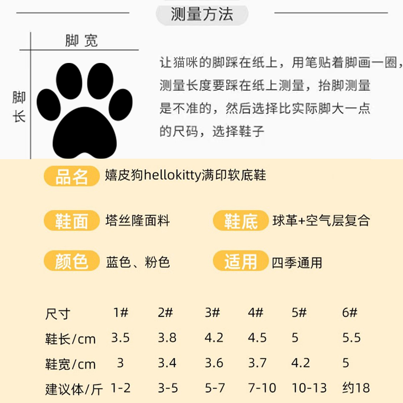 No 1 [длина обуви 3,5 см, ширина обуви 3 см] около 0.5-1.0kg износ; No 2 [длина обуви 3,8 см, ширина обуви 3,4 см] около 1.5-2.5kg износ; No 3 [длина обуви 4,2 см, ширина обуви 3,6 см] около 2.5-3.5kg износ; No4 [длина обуви 4,5 см, ширина обуви 3,7 см] около 3.5-5kg износ; Размер 5 [длина обуви 5 см, ширина обуви 4,2 см] около 5-6.5kg износ; No 6 [длина обуви 5,5 см, ширина обуви 5 см] около 9kg износ
