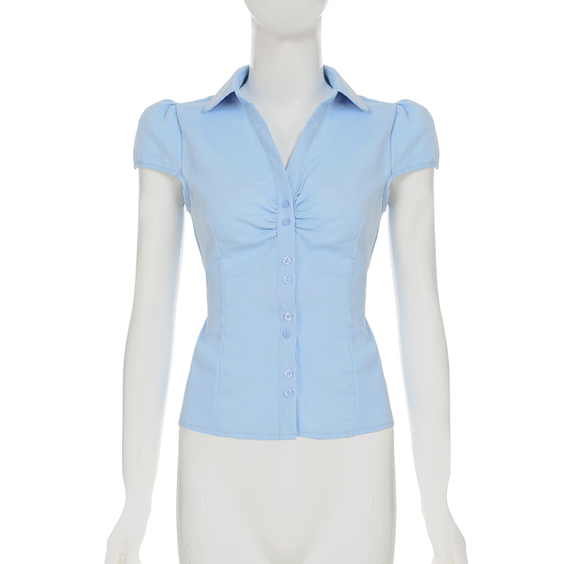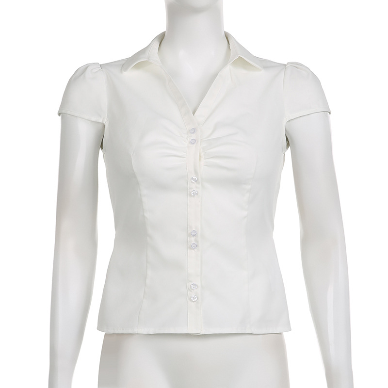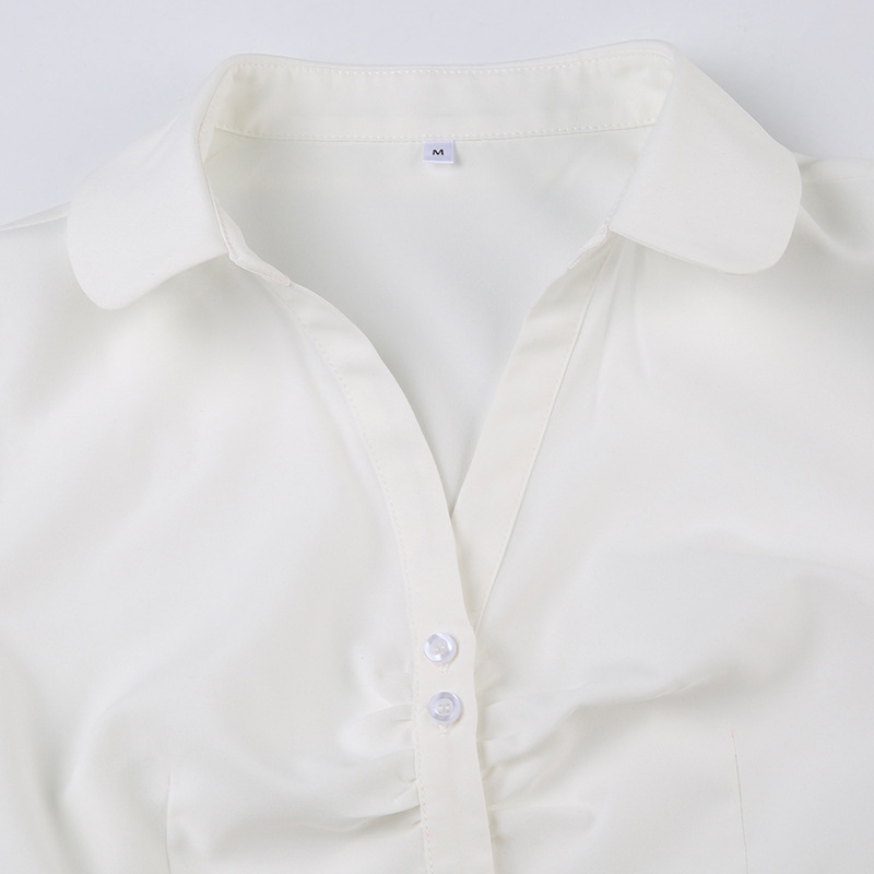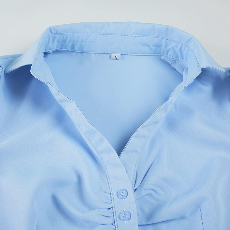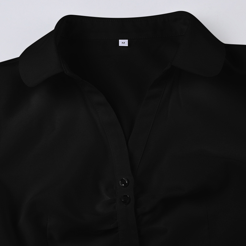 Простая темпераментная сплошная тонкая тонкая рубашка с лацканом и воротником