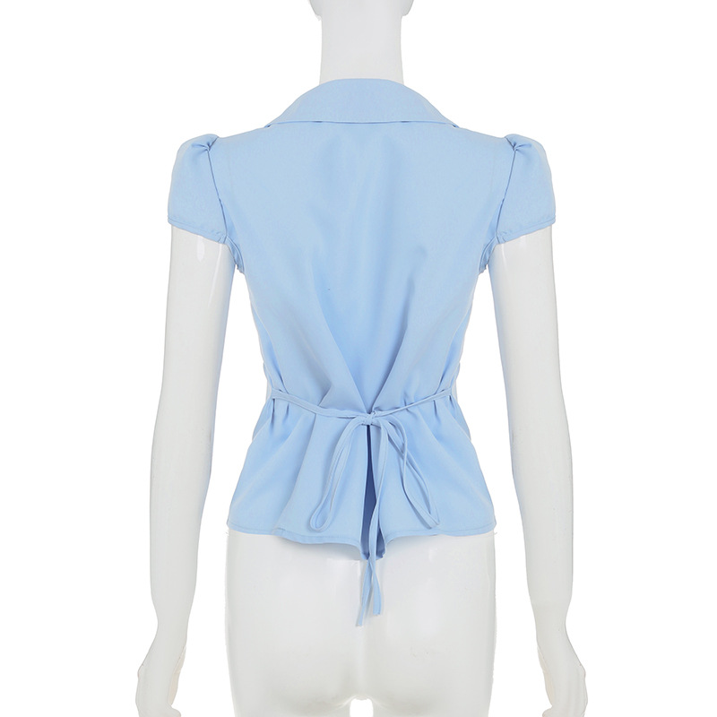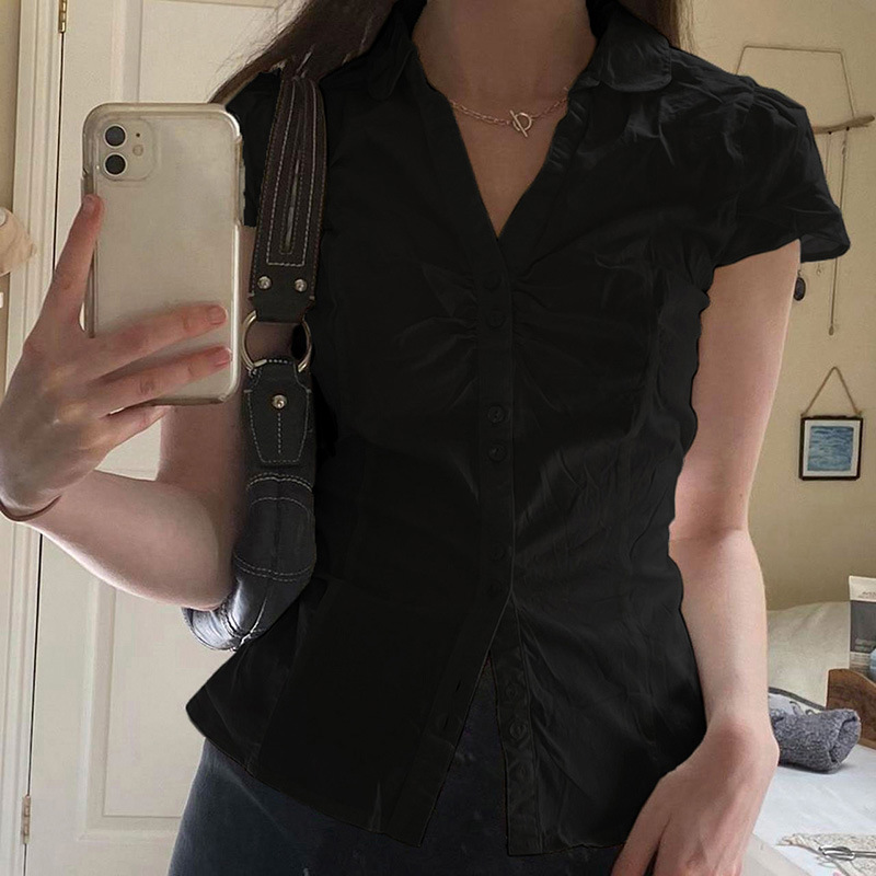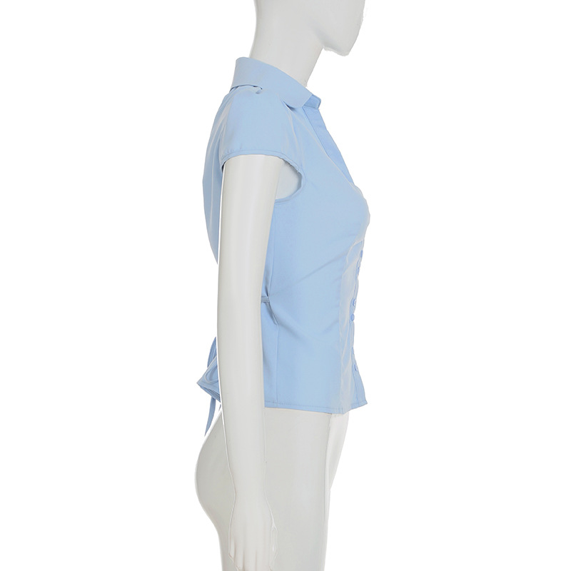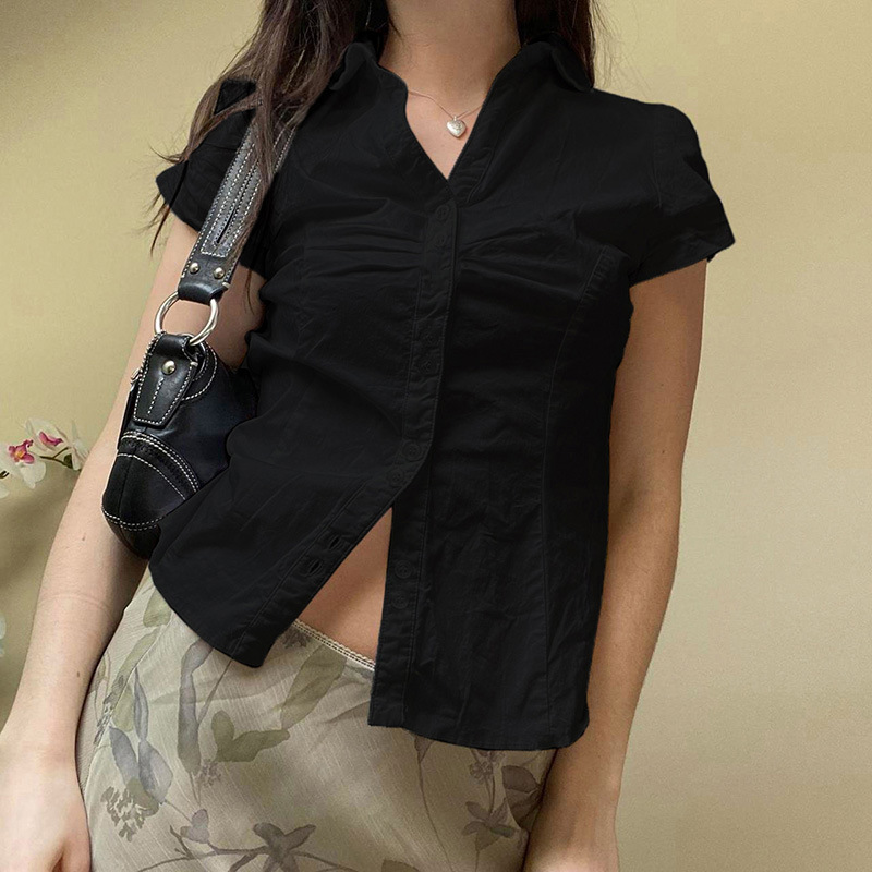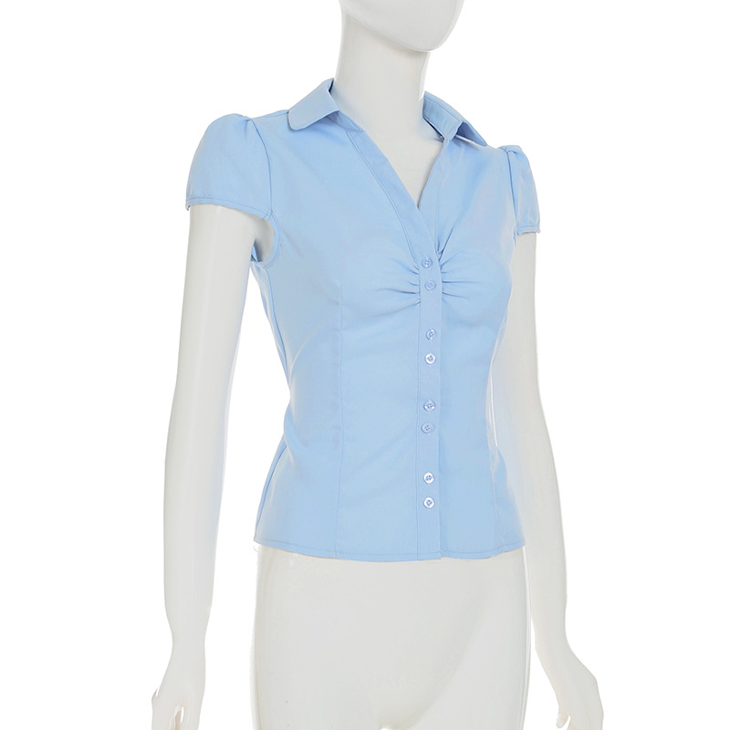 Простая темпераментная сплошная тонкая тонкая рубашка с лацканом и воротником
