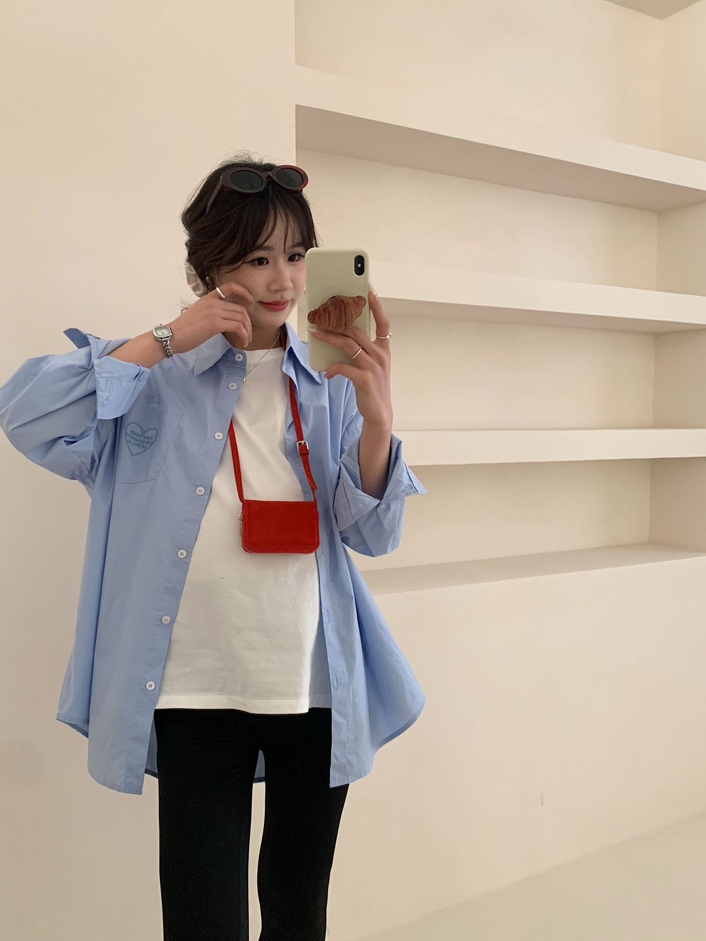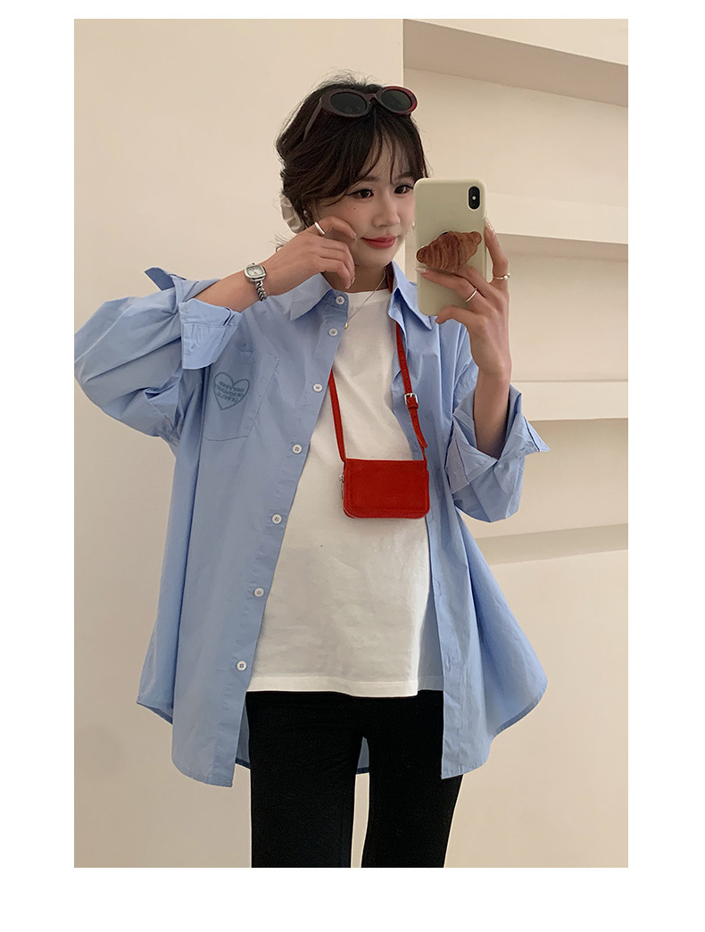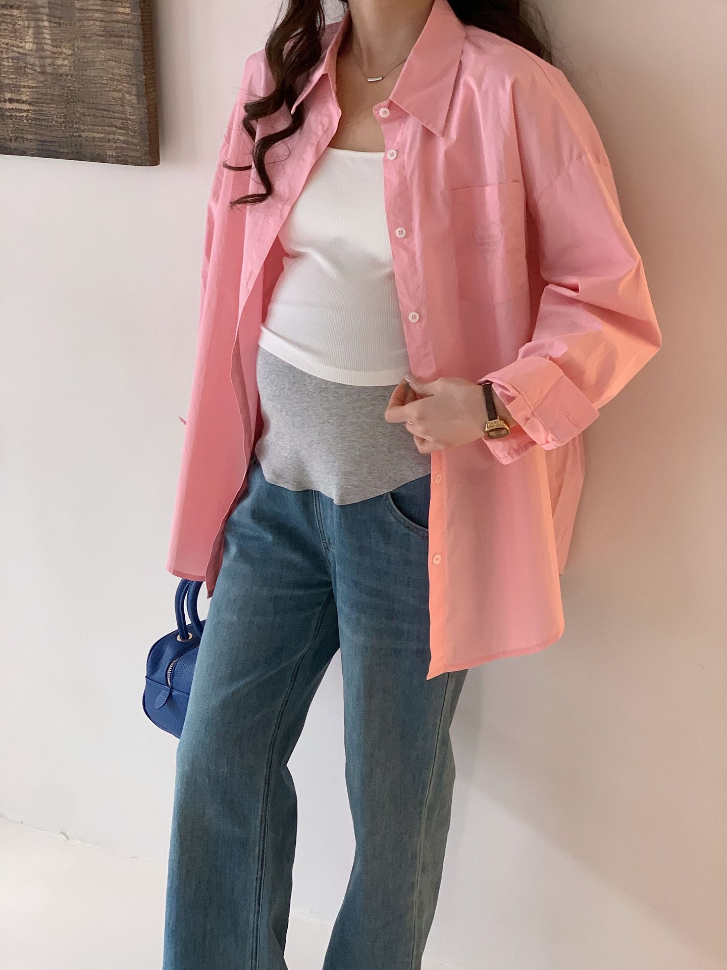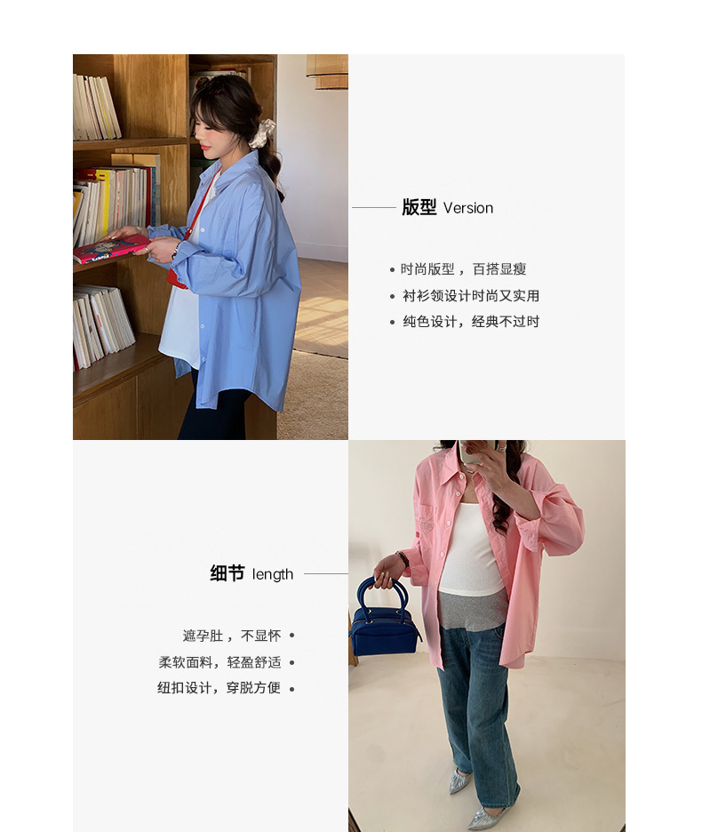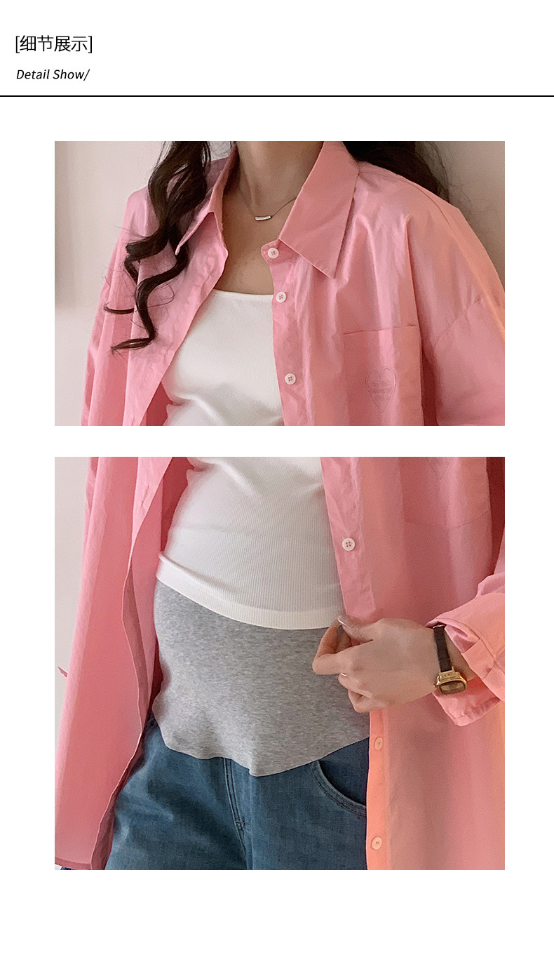 Ранняя весна новая одежда для беременных с вышивкой сплошной цвет беременные женщины плюс размер рубашки свободные повседневные хлопчатобумажные с длинными рукавами беременные женщины