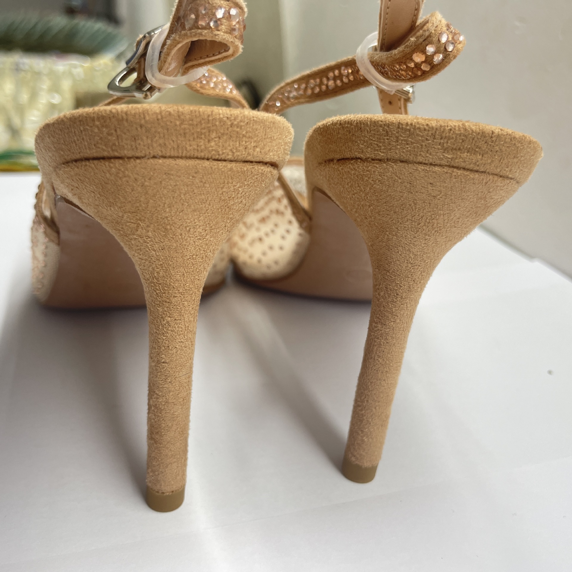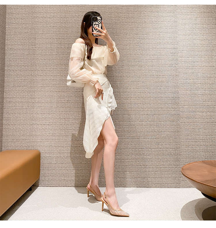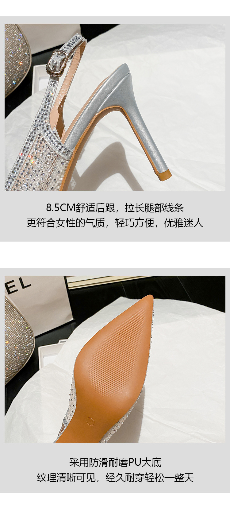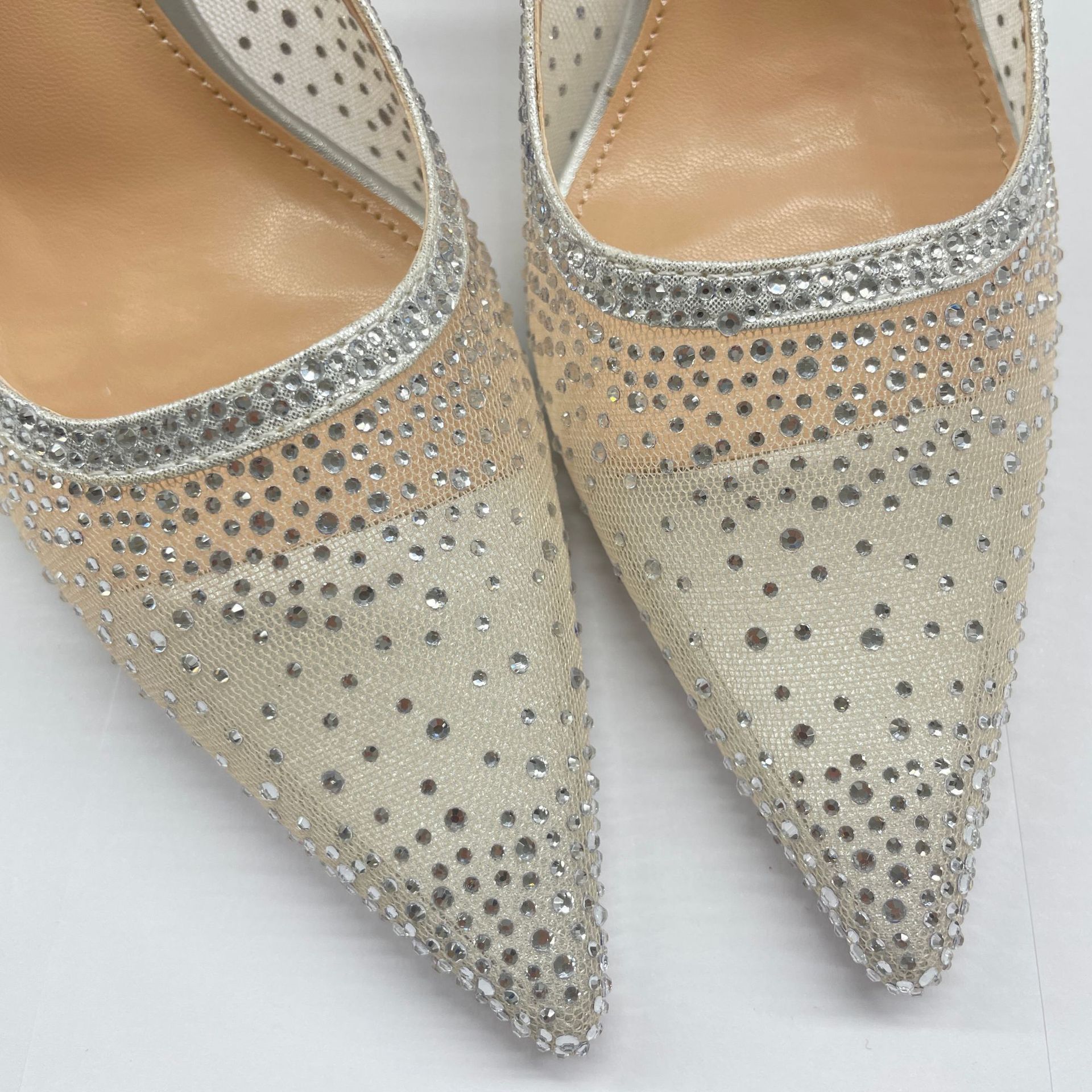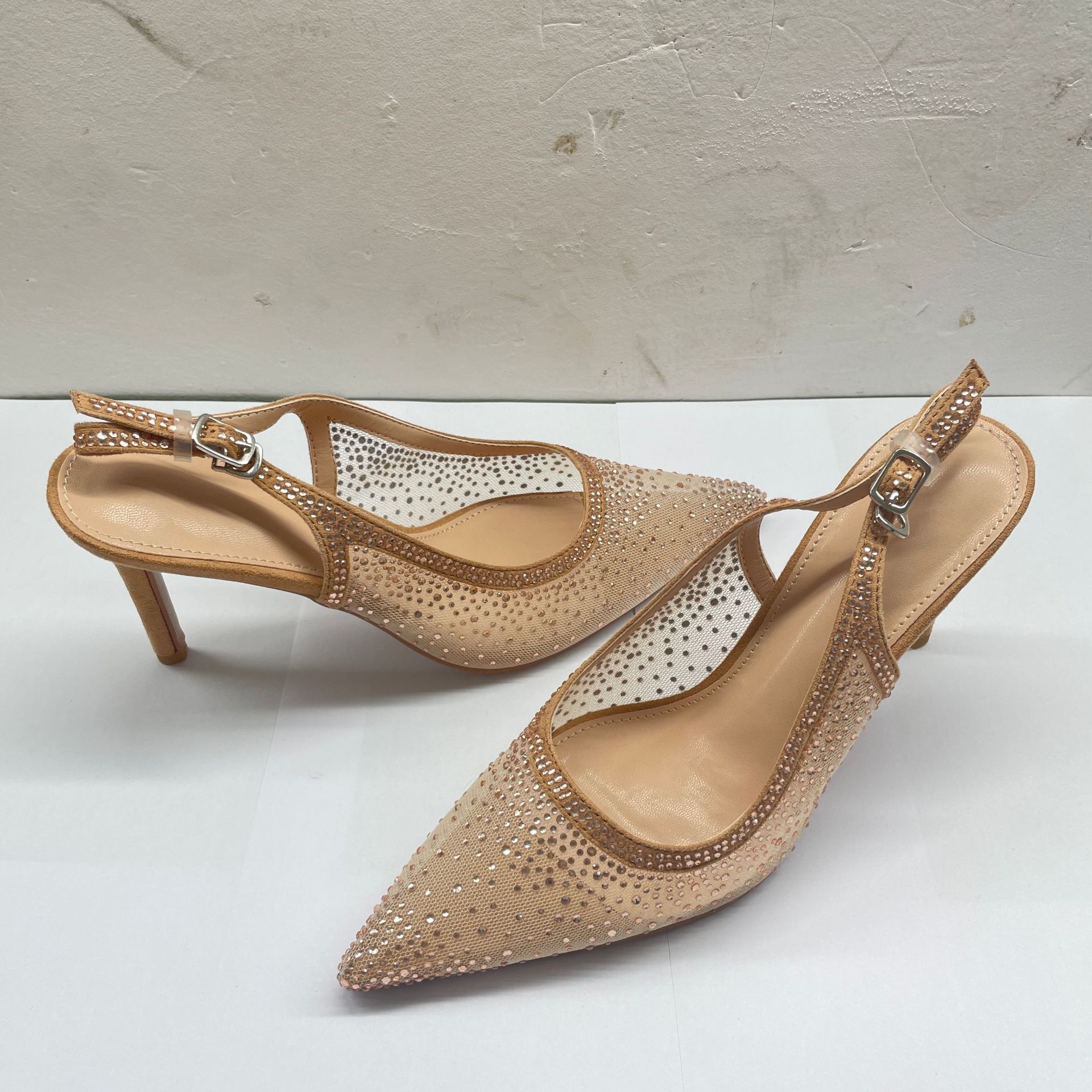 Женские босоножки-стилето с заостренным носком, сетчатые, с блестящими стразами, летняя новинка 2025 года, элегантные, закрытые, потрясающие высокие каблуки, французский стиль, однотонные туфли.