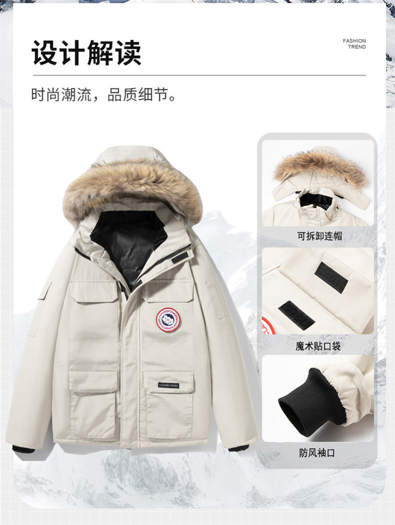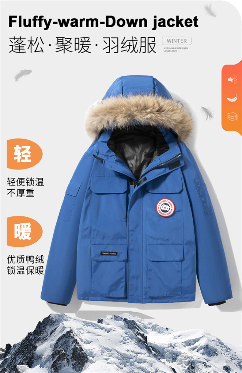 Пуховик мужской трансграничный пара белая утка с капюшоном прилив на открытом воздухе утолщает теплый большой гусиный шерстяной шкурот женский