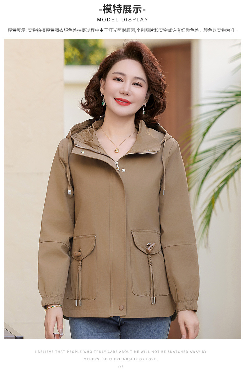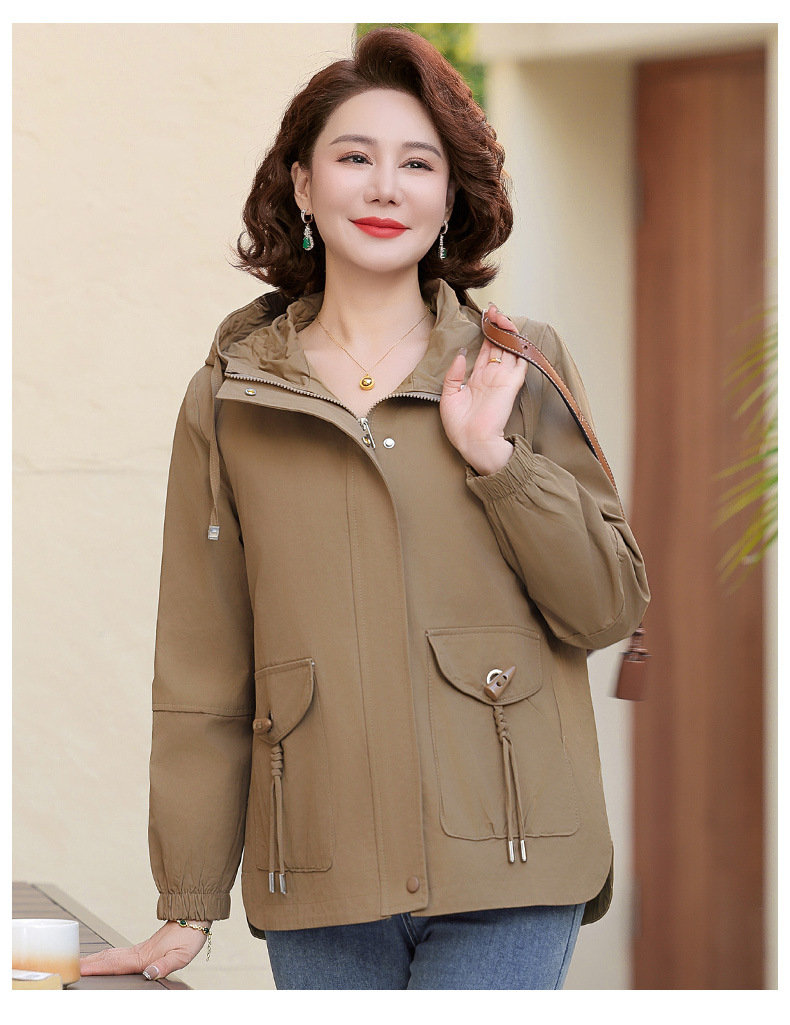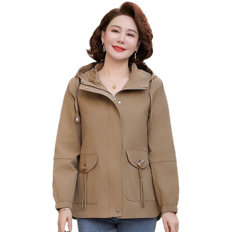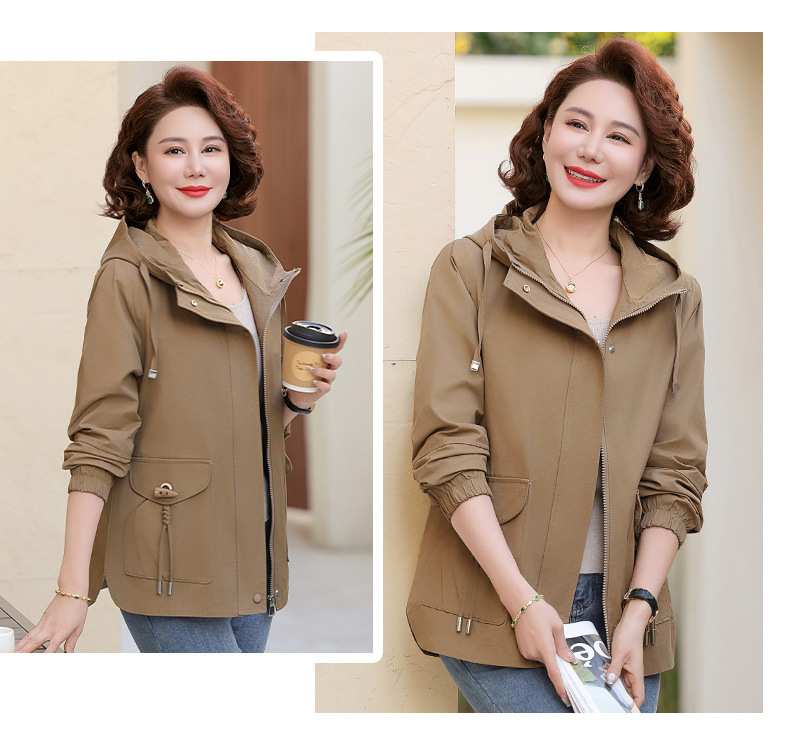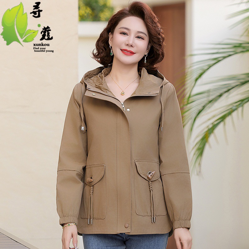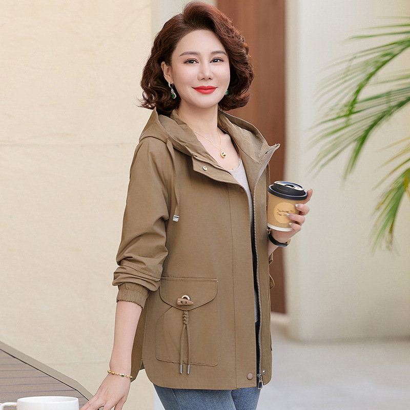 Новая мама весенняя куртка женская 40-60 лет среднего и пожилого возраста с капюшоном Весенняя и осенняя одежда 50 лет