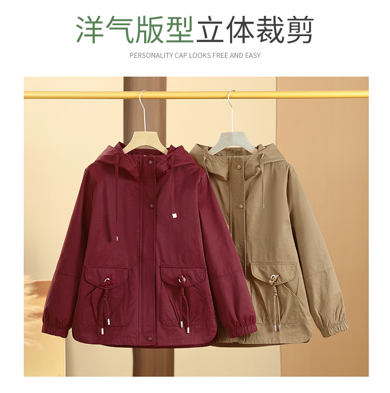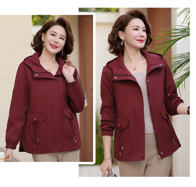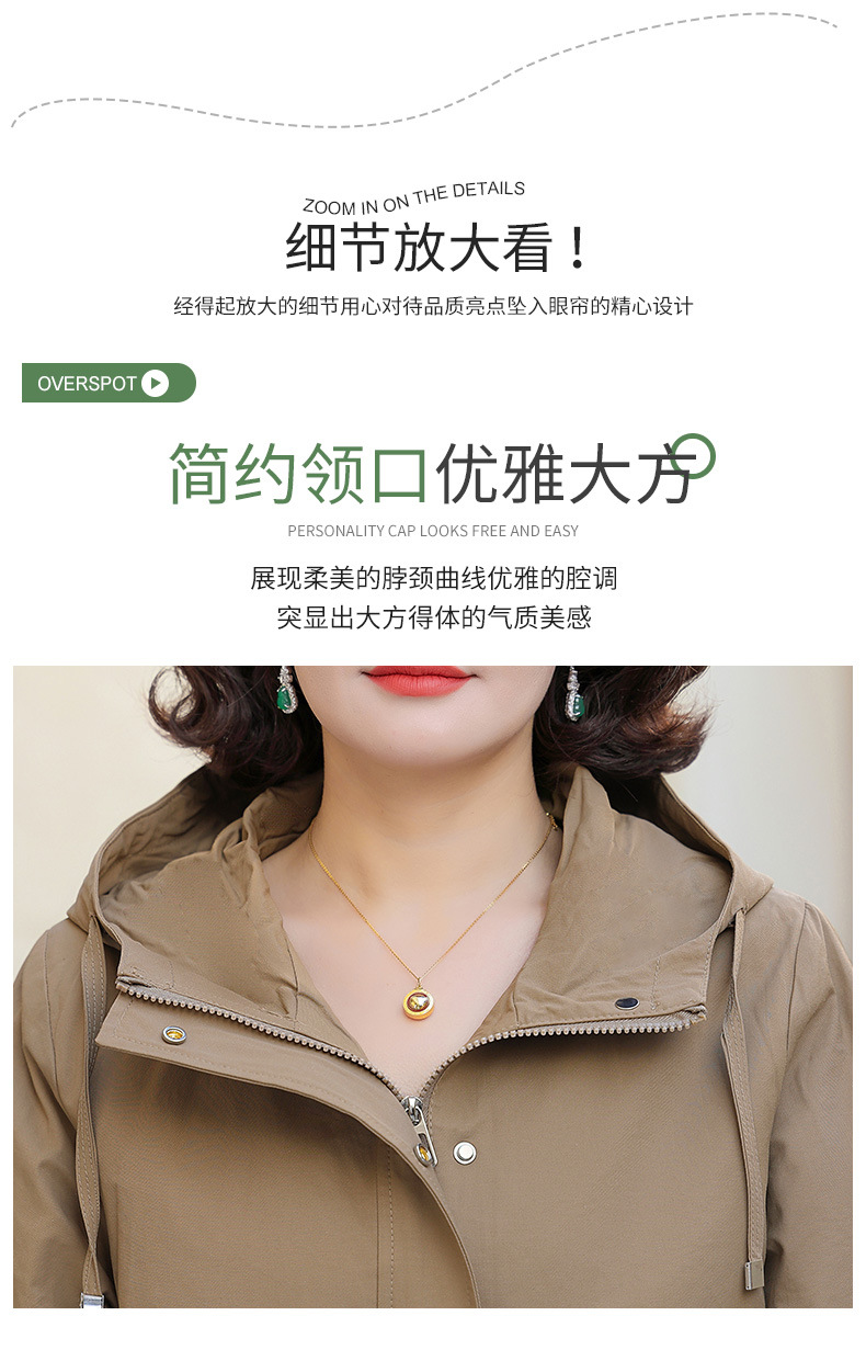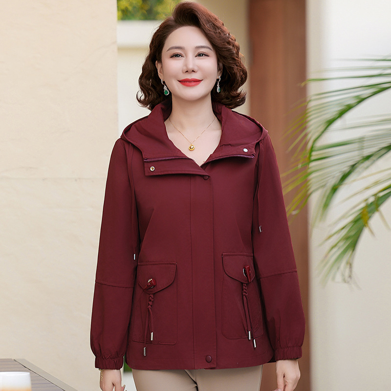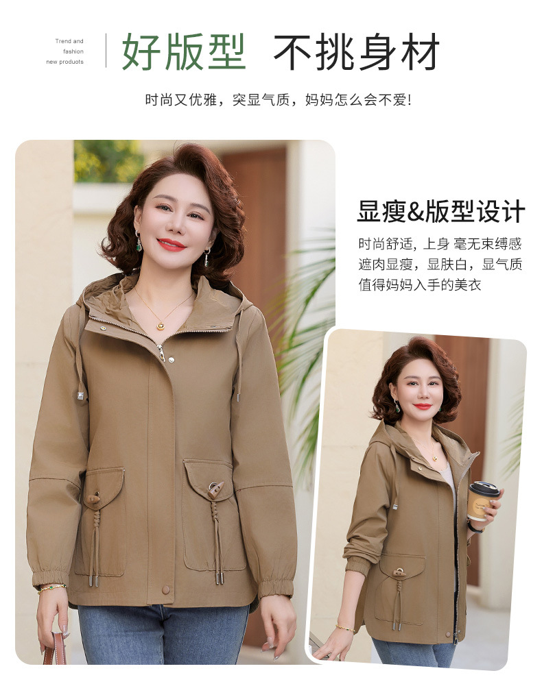 Новая мама весенняя куртка женская 40-60 лет среднего и пожилого возраста с капюшоном Весенняя и осенняя одежда 50 лет
