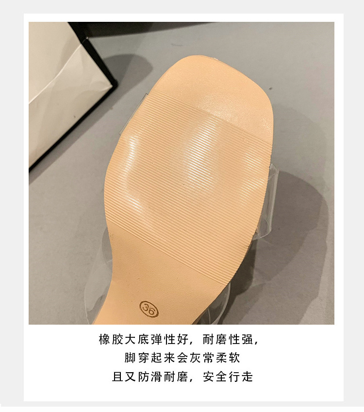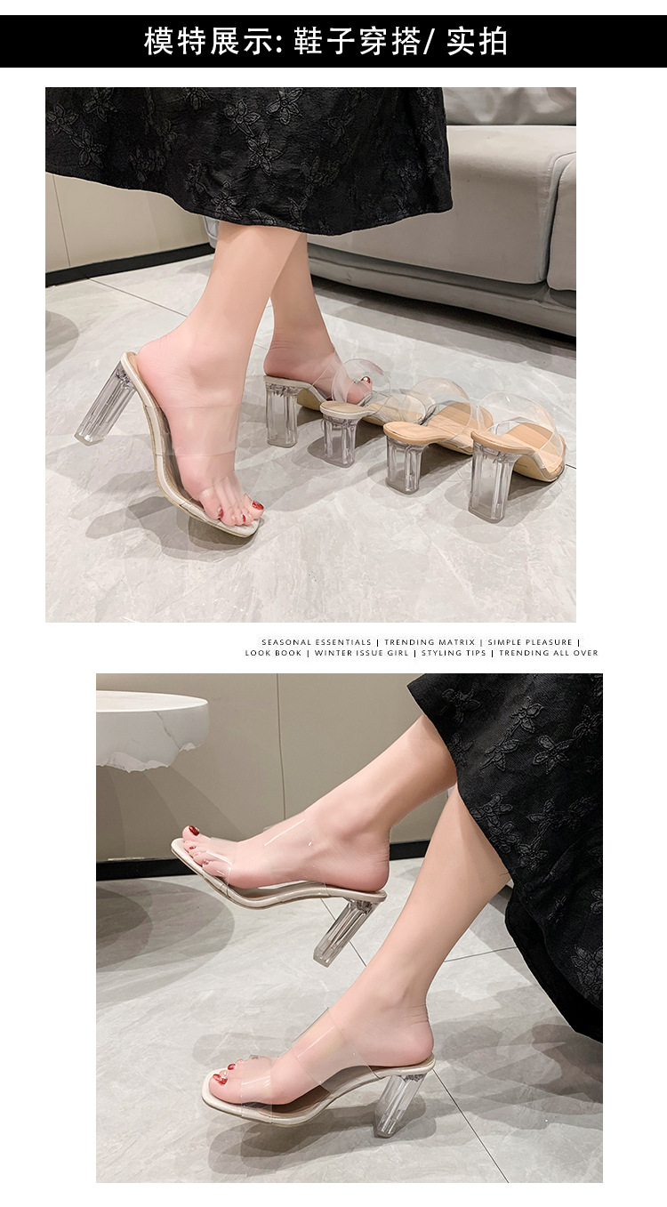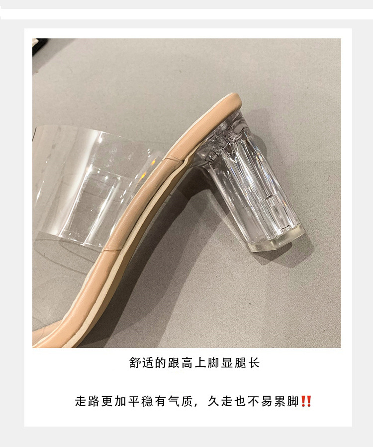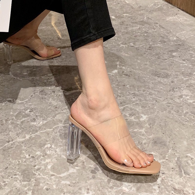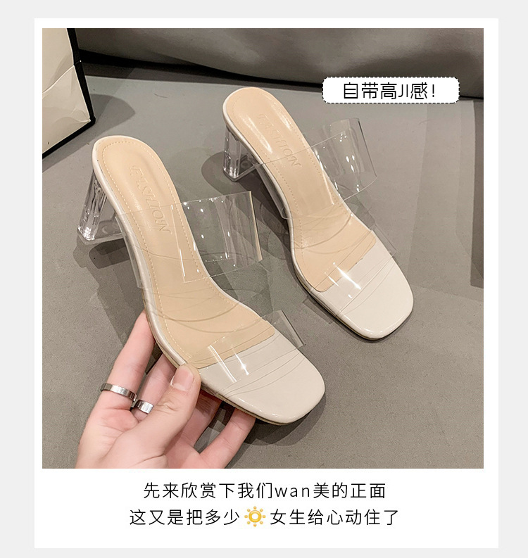 Сандалии женские летние новые квадратные головы прозрачные с высокими каблуками хрустальные толстые каблуки моды большие размеры тапочки женские наружные