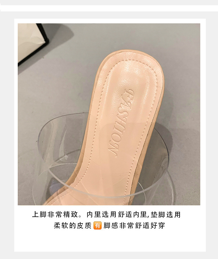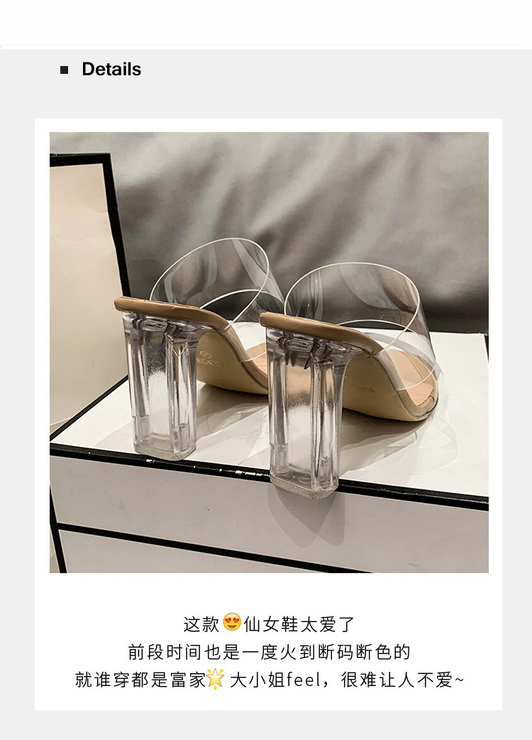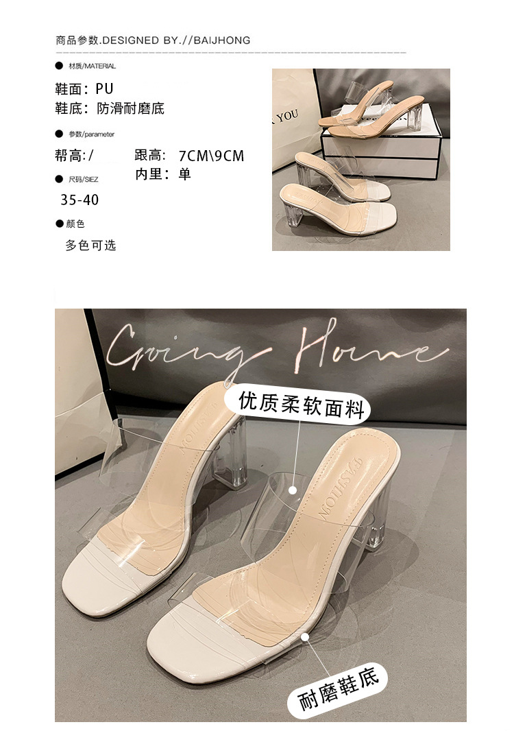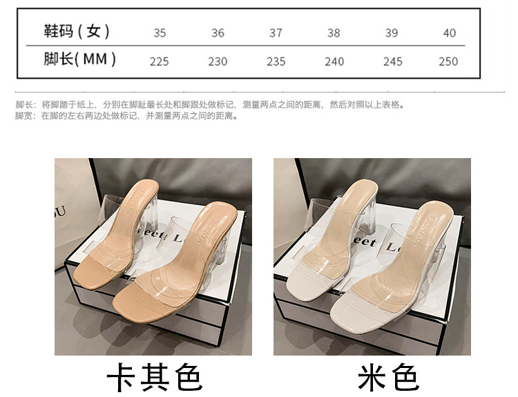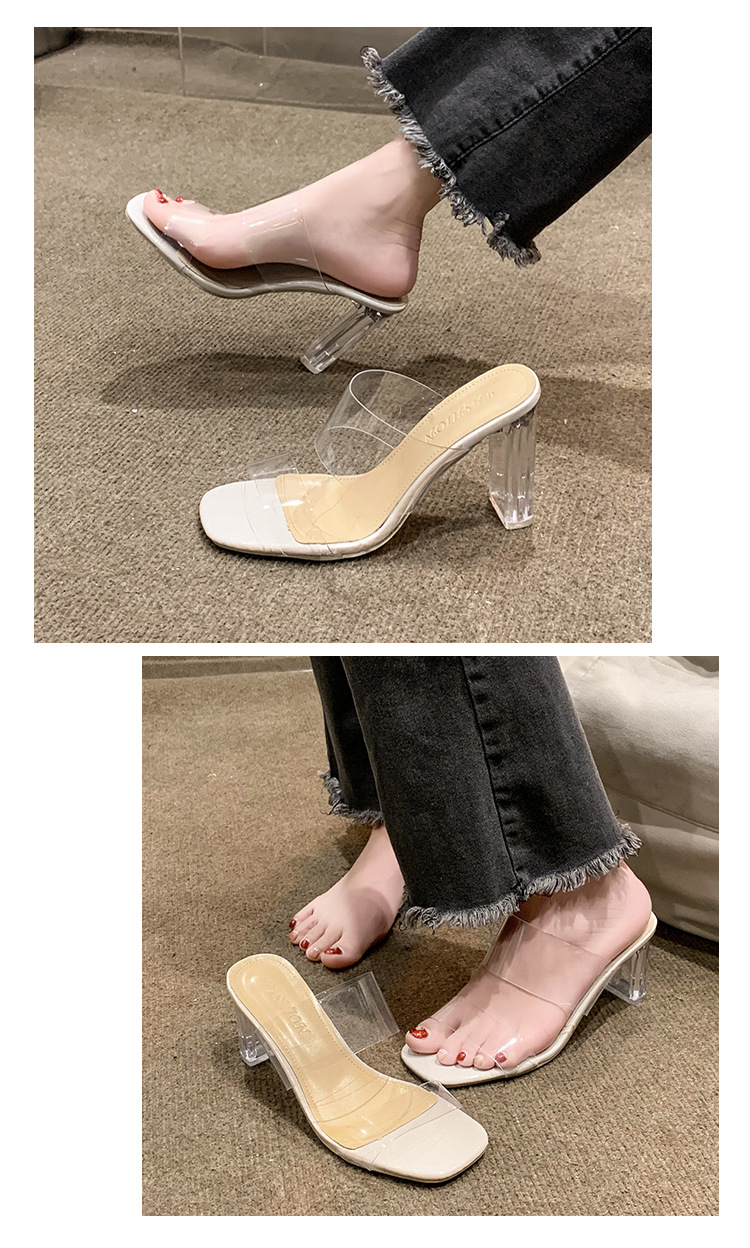 Сандалии женские летние новые квадратные головы прозрачные с высокими каблуками хрустальные толстые каблуки моды большие размеры тапочки женские наружные