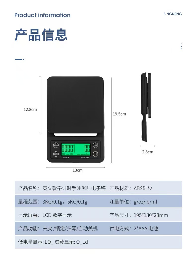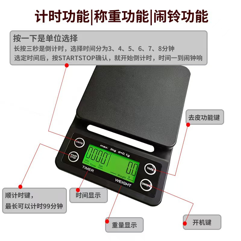 Рука для приготовления кофе электронные весы Трансграничный хронометр кухонные весы черный 3kg 0.1g домашняя пищевая выпечка высокая точность