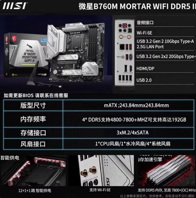 Материнская плата Micro/Star MAG B760M MORTAR WIFI DDR5 II Mortar