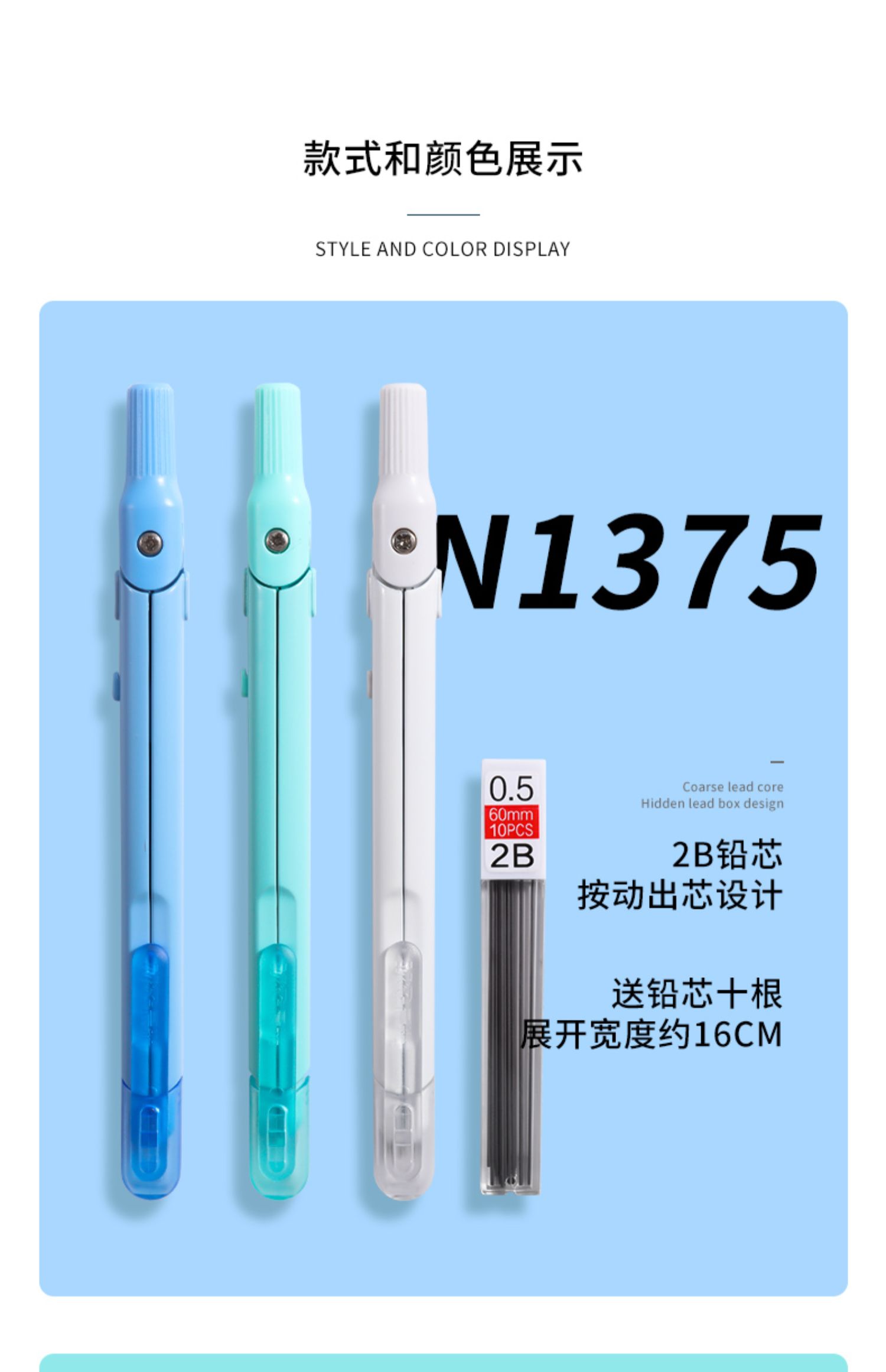 Компас ручного типа обычного типа [белый], компас ручки обычного типа [синий], обычный стиль [зеленый] компас ручного типа, толстый сердечник 2B [белый] компас 2-в-1