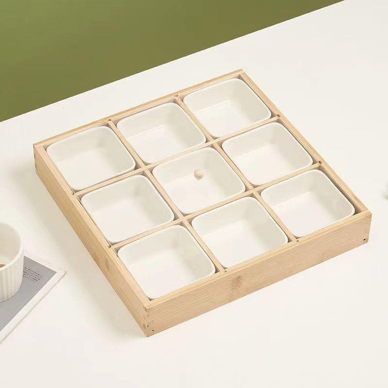 Лоток с двумя квадратными решетками [модель с полным бамбуковым краем]; Лоток с тремя квадратными решетками [полный бамбуковый край]; Четырехквадратный сетчатый лоток [полный бамбуковый край]; Лоток с шестью квадратными решетками [полный бамбуковый край]; Лоток с девятью квадратными сетками [полный бамбуковый край]; Сумочка с четырьмя квадратами [модель с полным бамбуковым краем]; Лоток с двумя квадратными решетками и чашей [модель с полным бамбуковым краем]; Трехквадратный поднос с чашей [модель с полным бамбуковым краем]; Четырехквадратный поднос с чашей [полный бамбуковый край]; Лоток с шестью квадратными решетками и чашей [модель с полным бамбуковым краем]; Поддон с девятью квадратной сеткой и чашей [модель с полным бамбуковым краем]