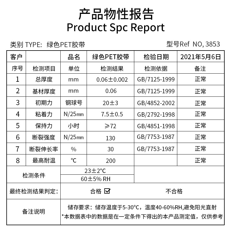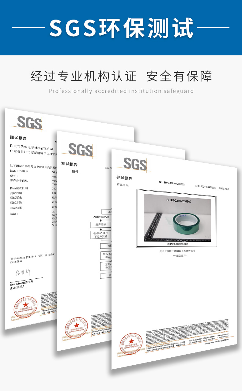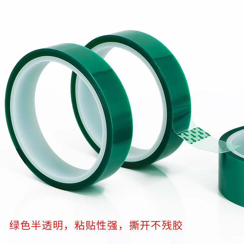 聚脂绿胶带:耐高温200℃,耐电压,耐溶剂性,耐腐蚀,耐酸碱极优,粘性佳;不残胶,不变色。PCB板电镀金手指保护用及绝缘用途;UL及SGS认可。