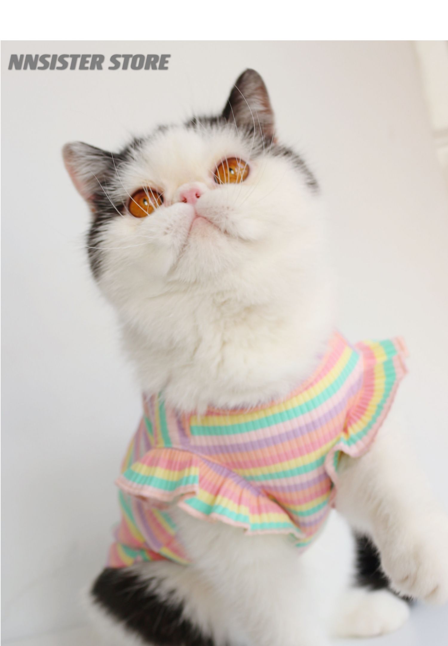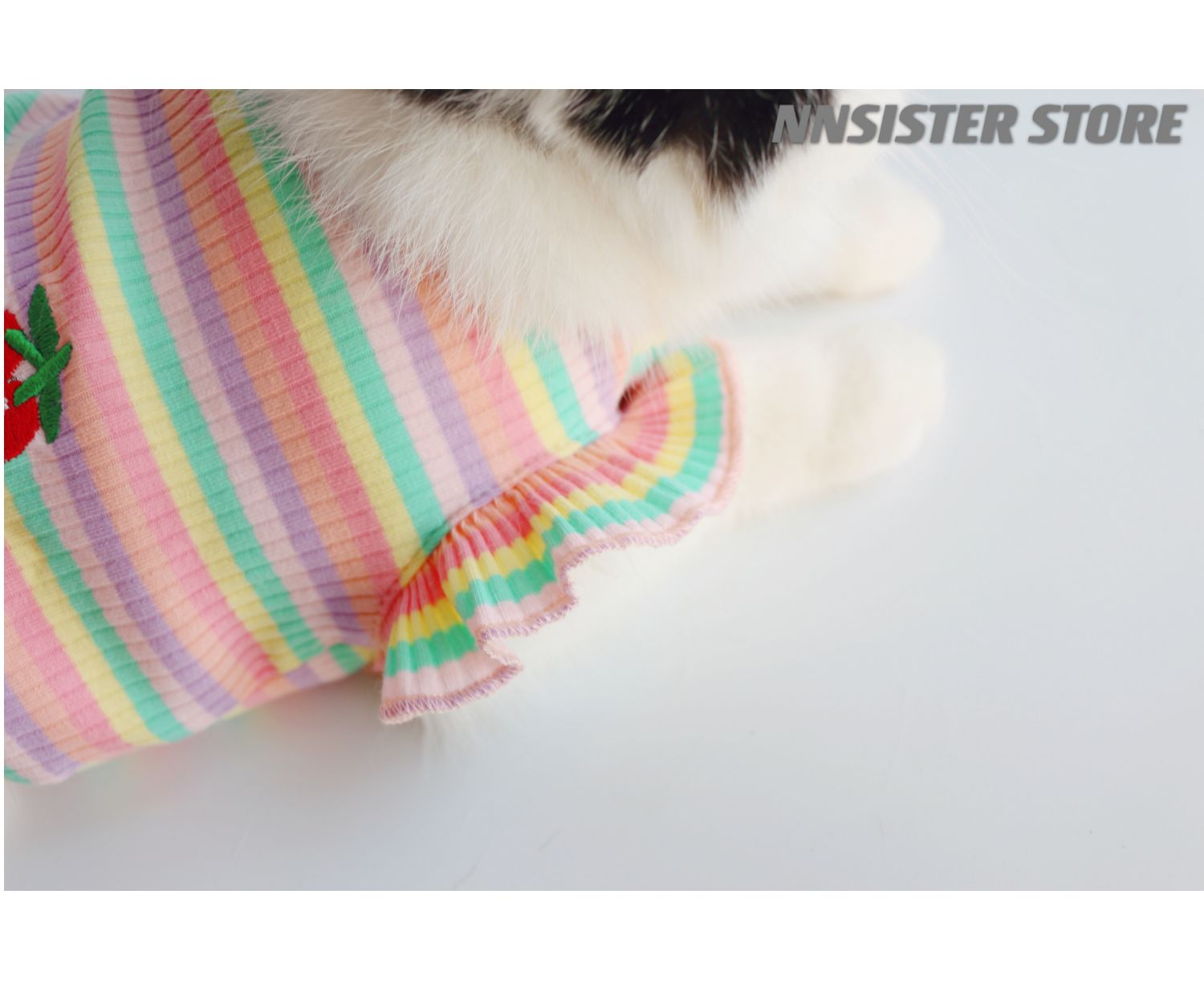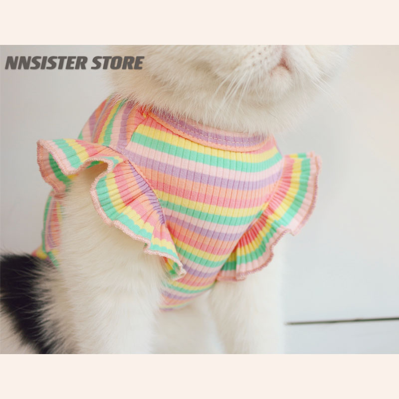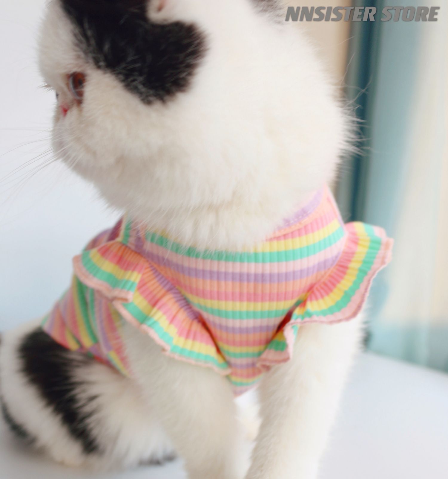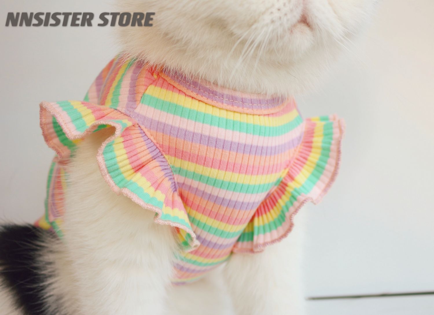 Радуга маленькая милая ~ Хлопчатобумажная полосатая рубашка кошачья одежда принцесса милая весна и лето ins тонкая собака против выпадения волос