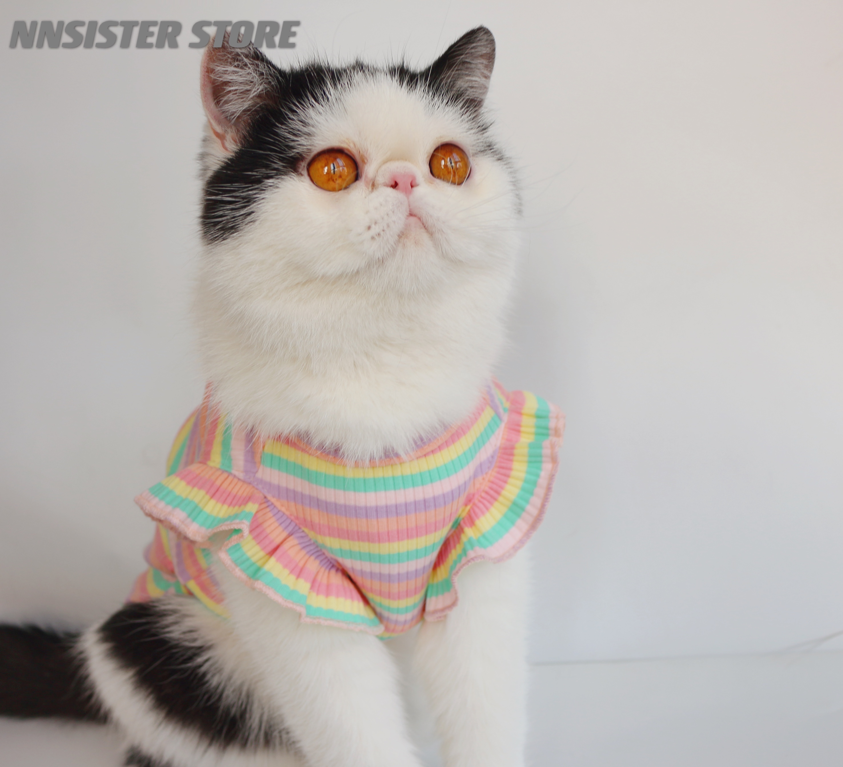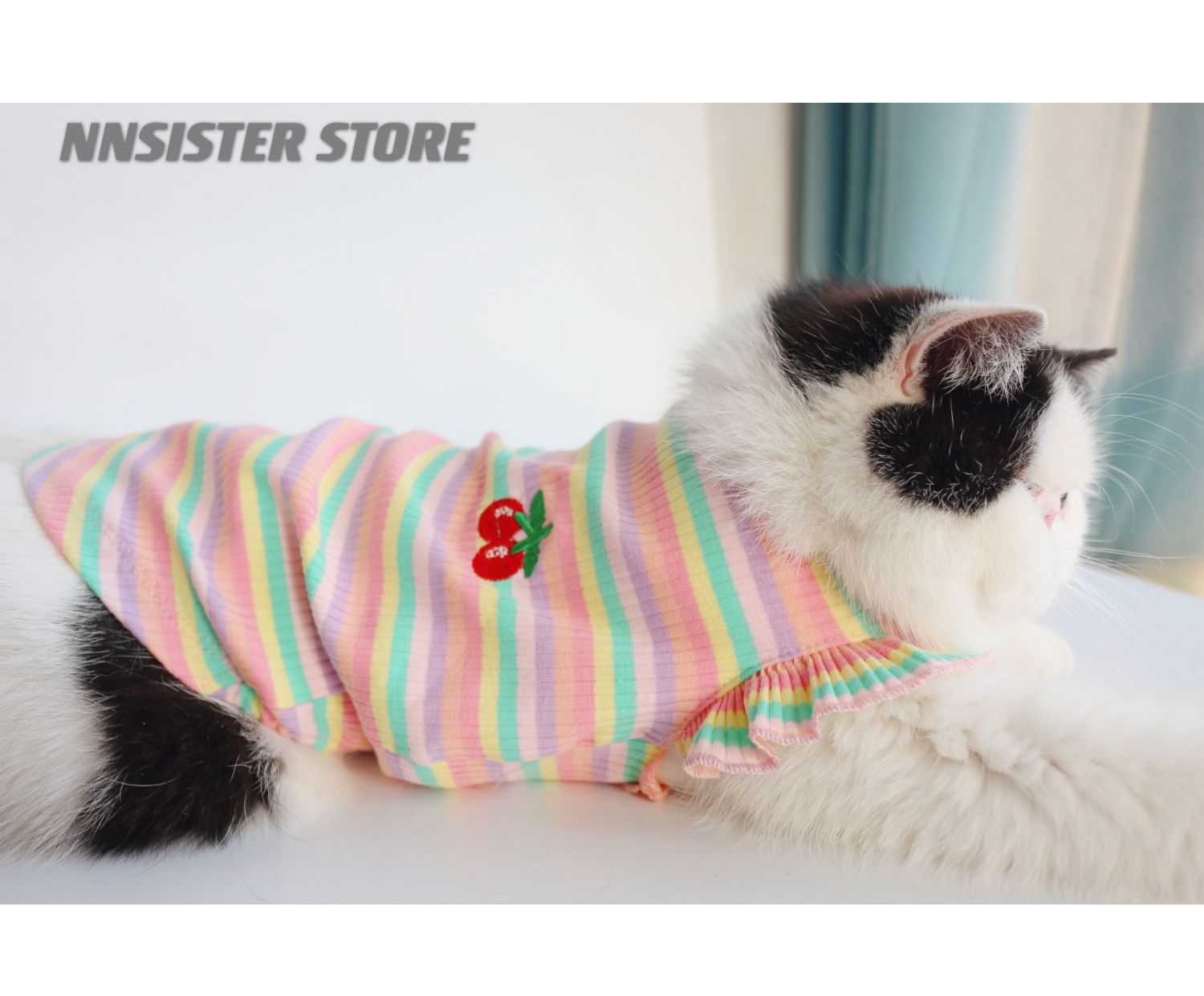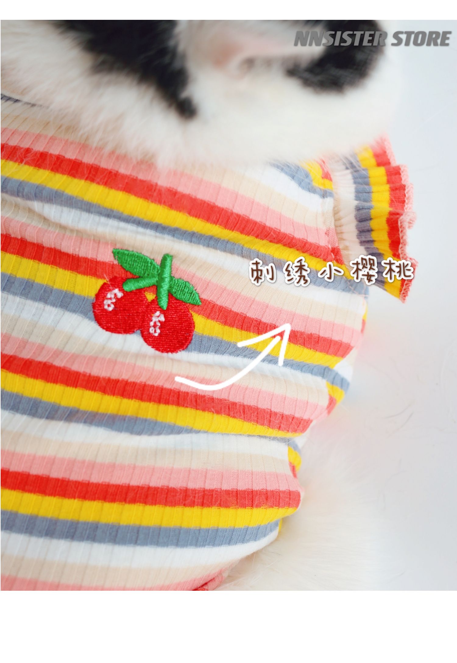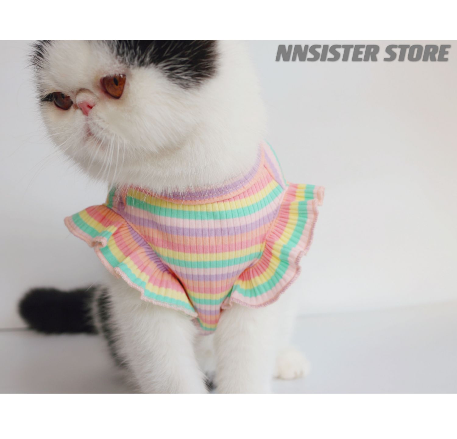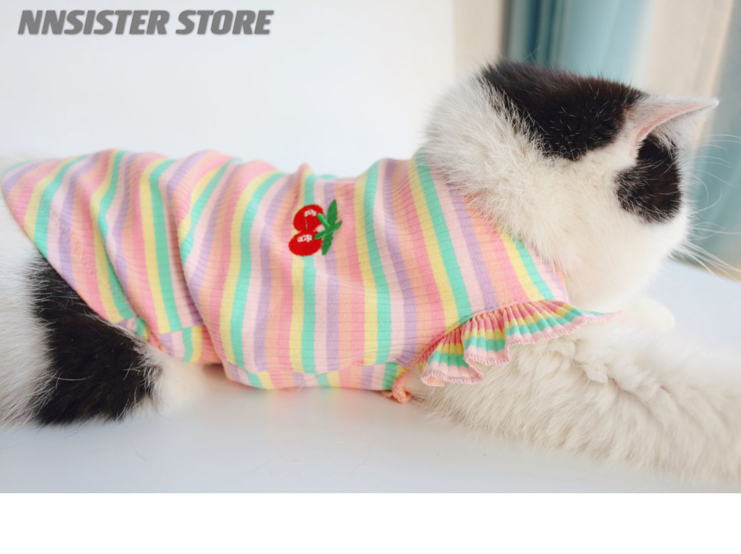 Радуга маленькая милая ~ Хлопчатобумажная полосатая рубашка кошачья одежда принцесса милая весна и лето ins тонкая собака против выпадения волос