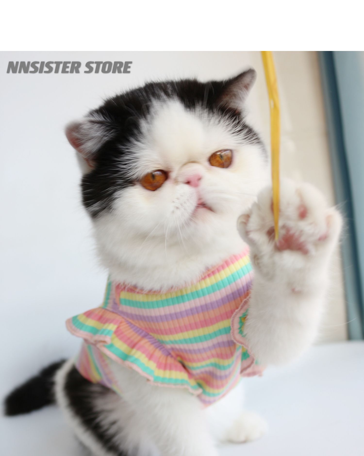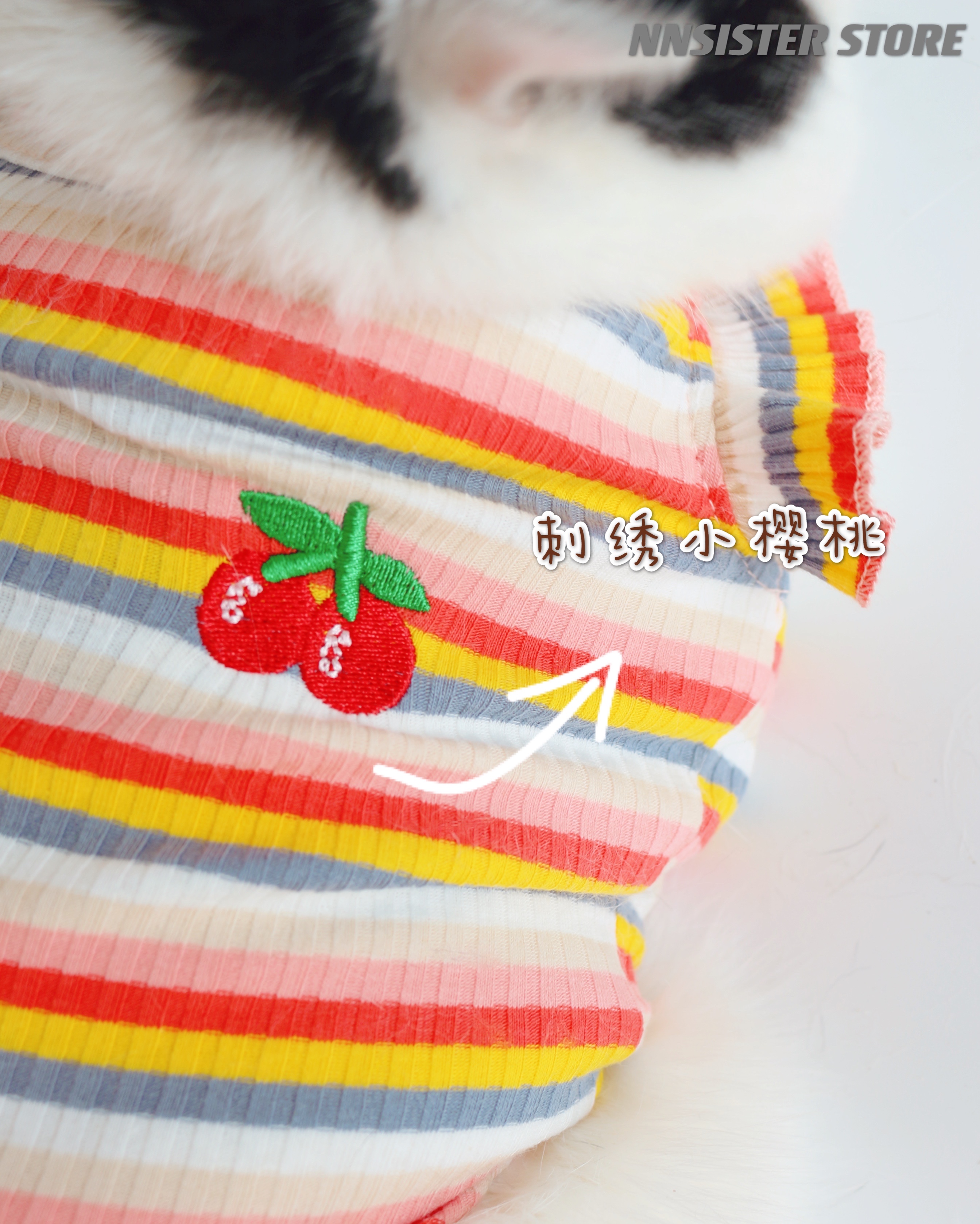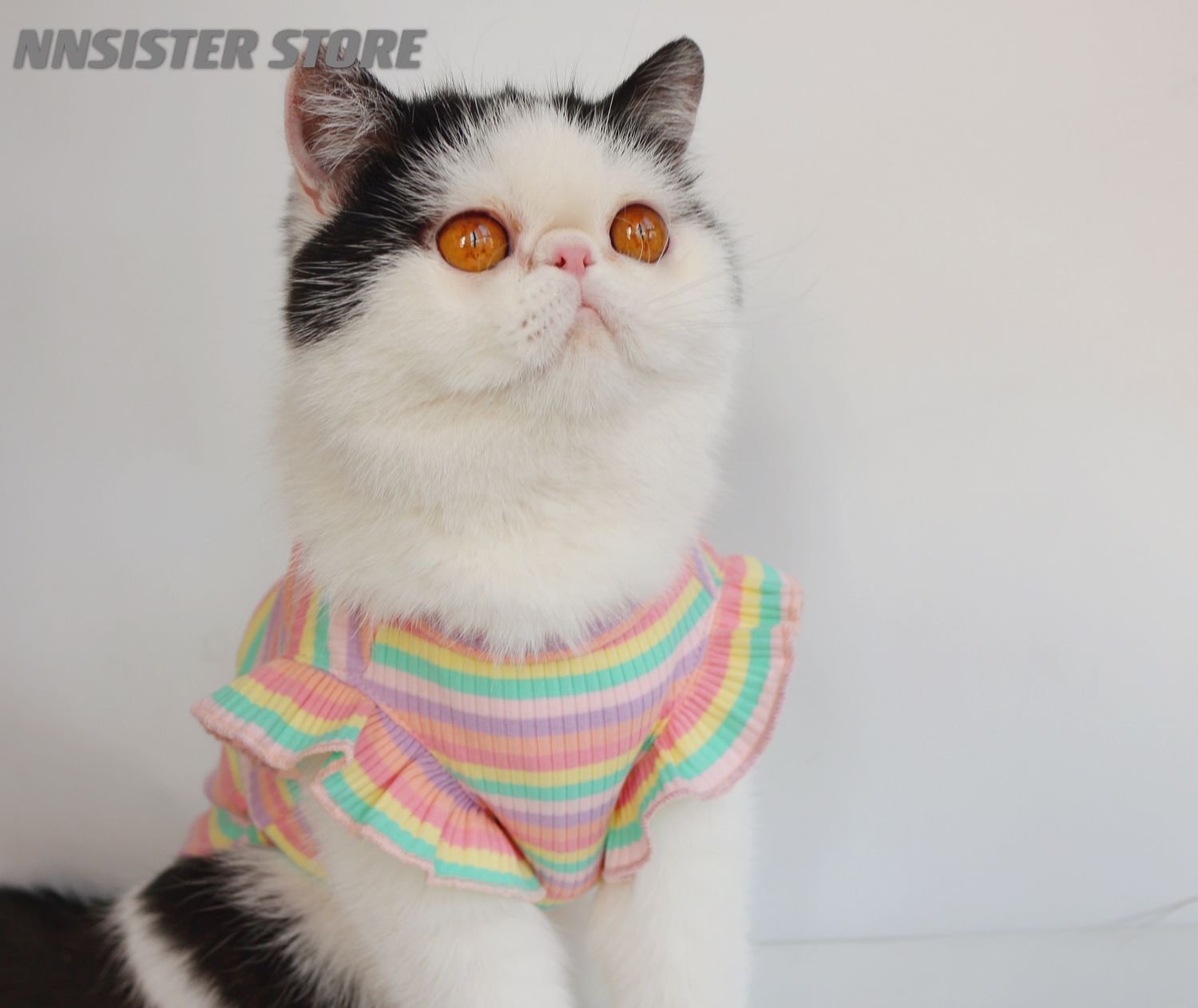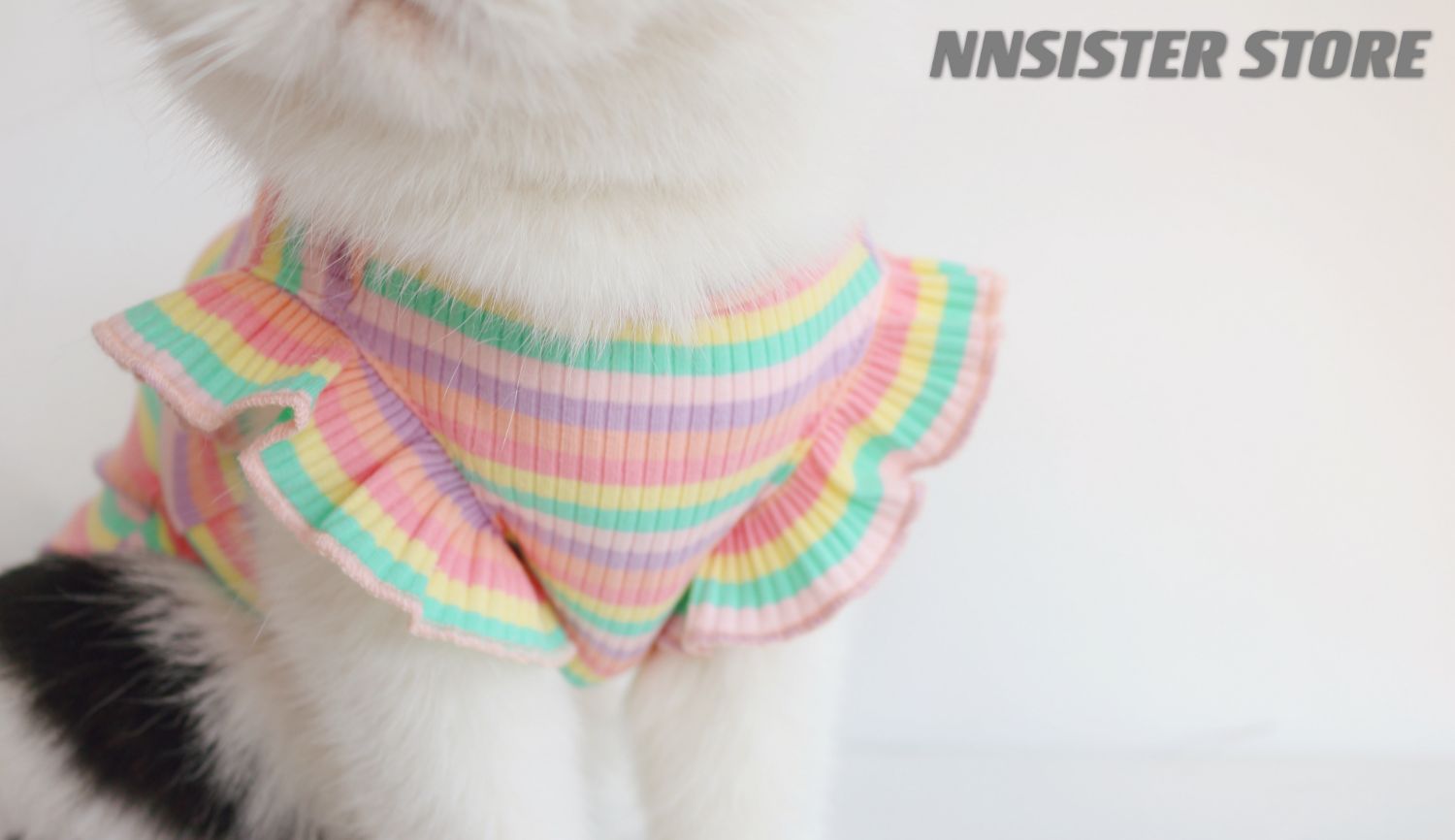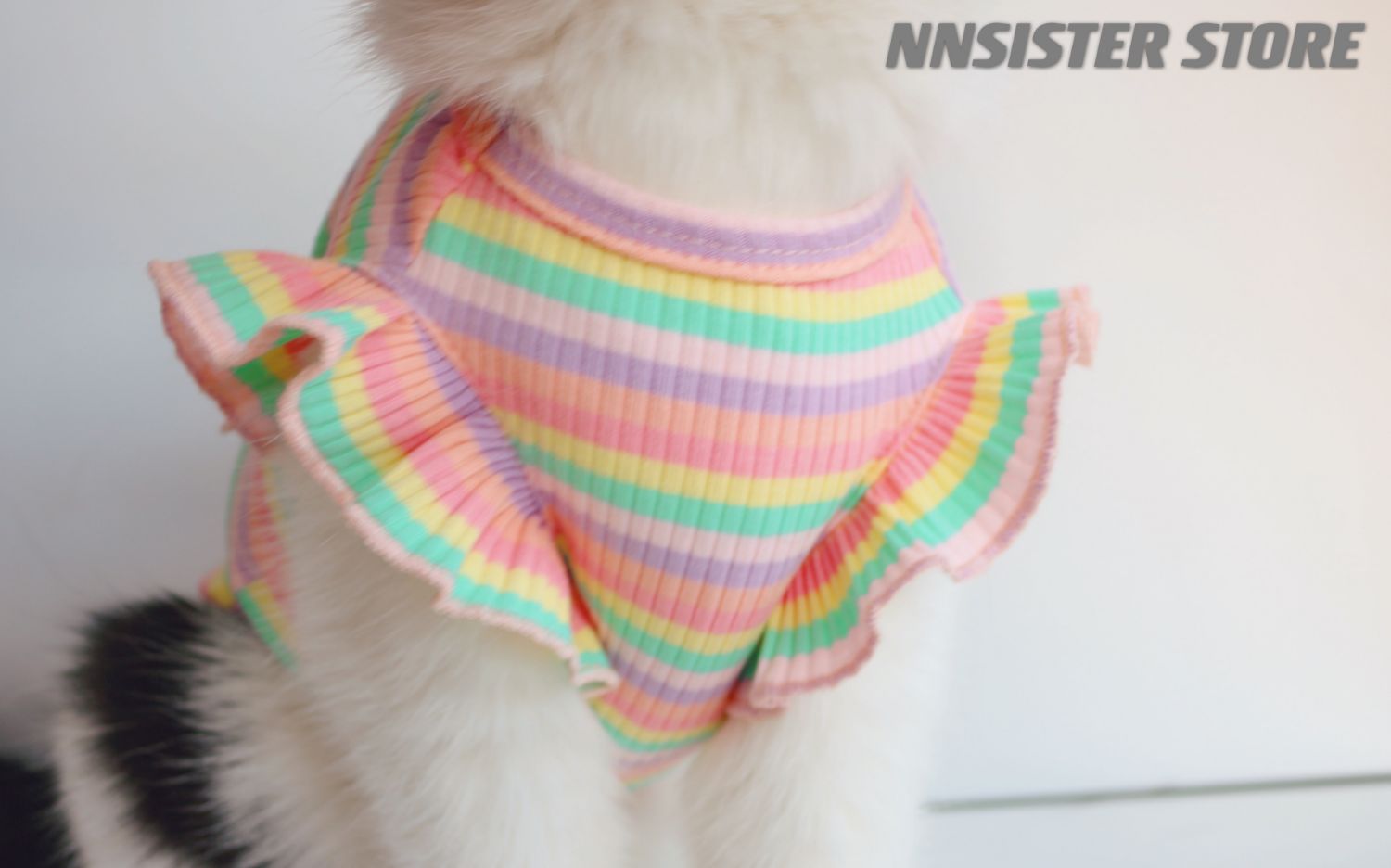 Радуга маленькая милая ~ Хлопчатобумажная полосатая рубашка кошачья одежда принцесса милая весна и лето ins тонкая собака против выпадения волос