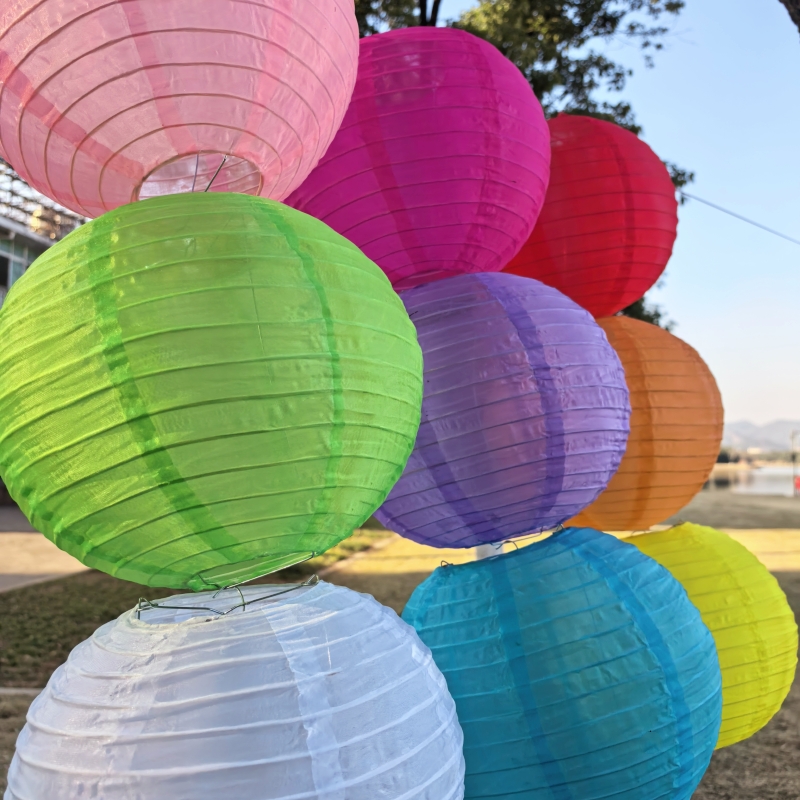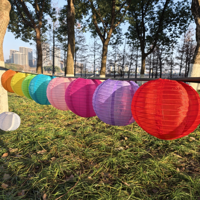 潘通布质彩色灯笼,具有防水、防晒!相比纸灯笼 这款布灯笼可以在户外长时间悬挂,不必担心天气问题。夜晚加灯,比纸灯笼的透光性更强!