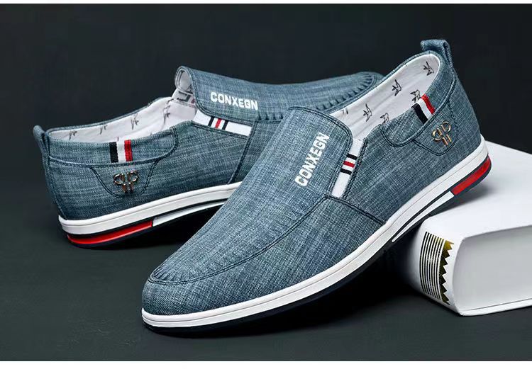 Мужская молодежная корейская версия британской модной модной мужской обуви бизнес-бахилы ноги повседневные холщовые туфли оптом