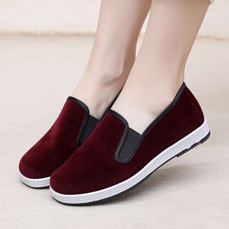 Старые пекинские туфли для женщин среднего и пожилого возраста с мягким дном нескользящие и удобные дышащие бархатные туфли для весны и осени повседневные одиночные туфли для мамы
