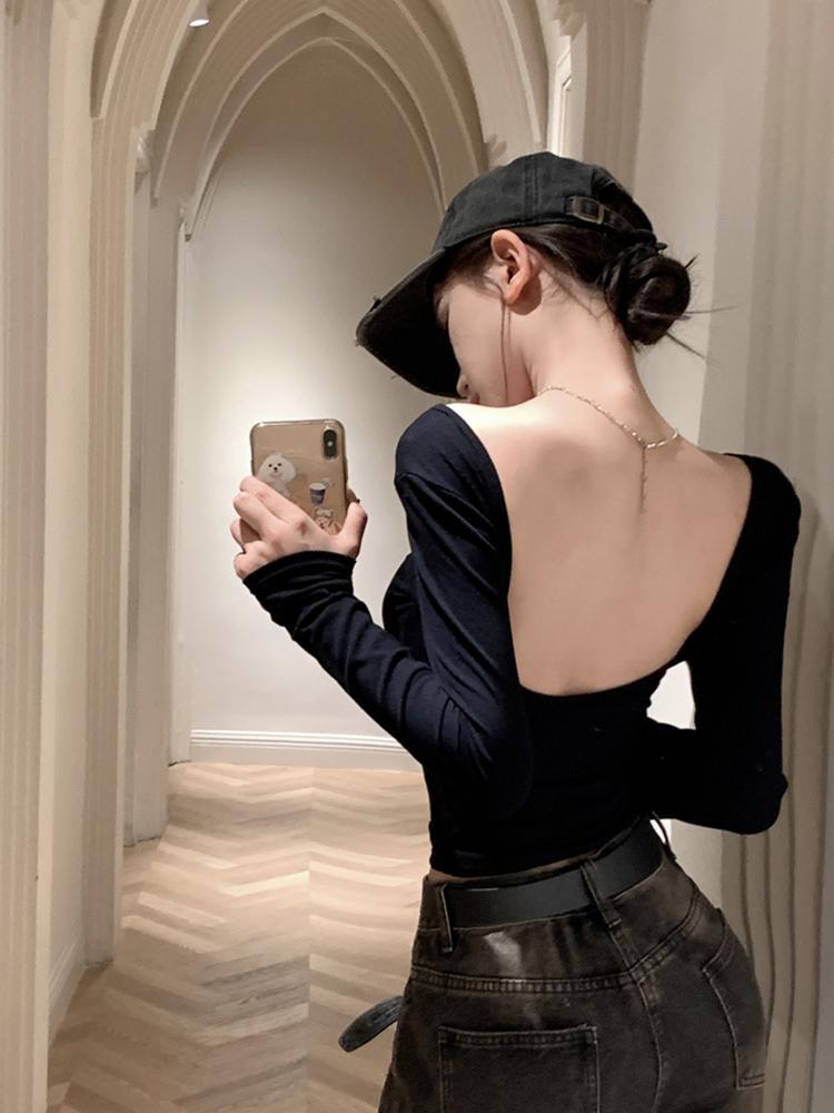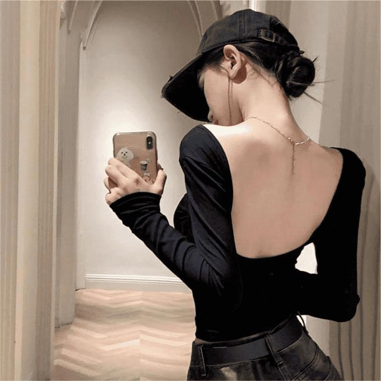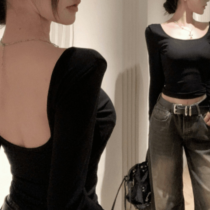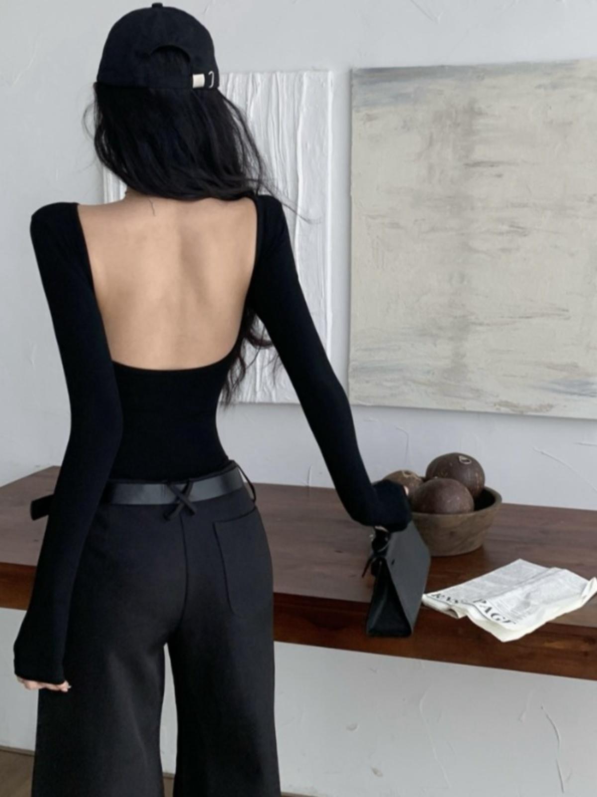 Горячая девушка сексуальная дикая роса с обтягающей спиной рубашка с длинными рукавами женская весна и лето черный нижний топ
