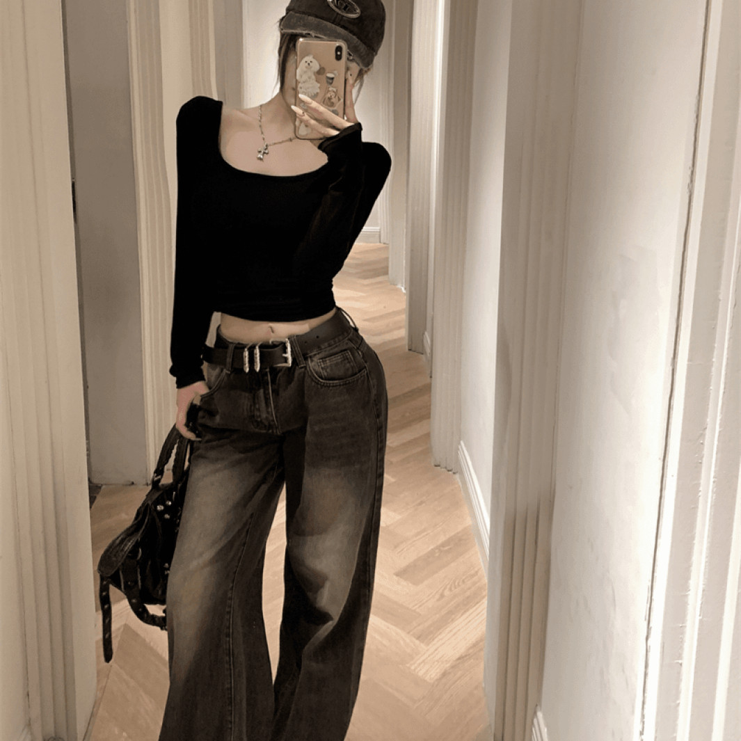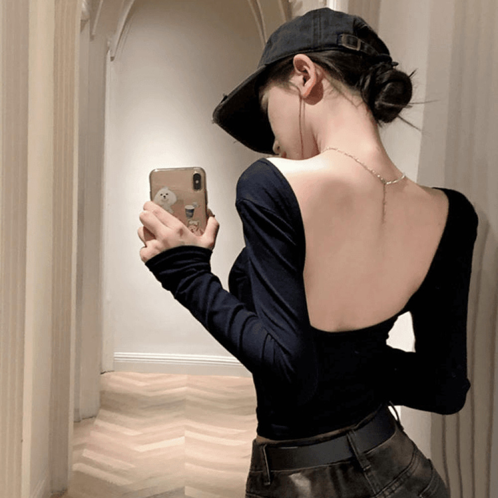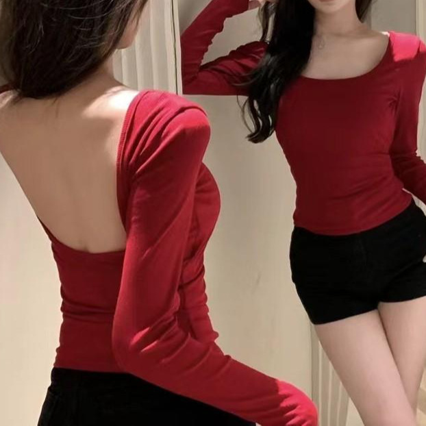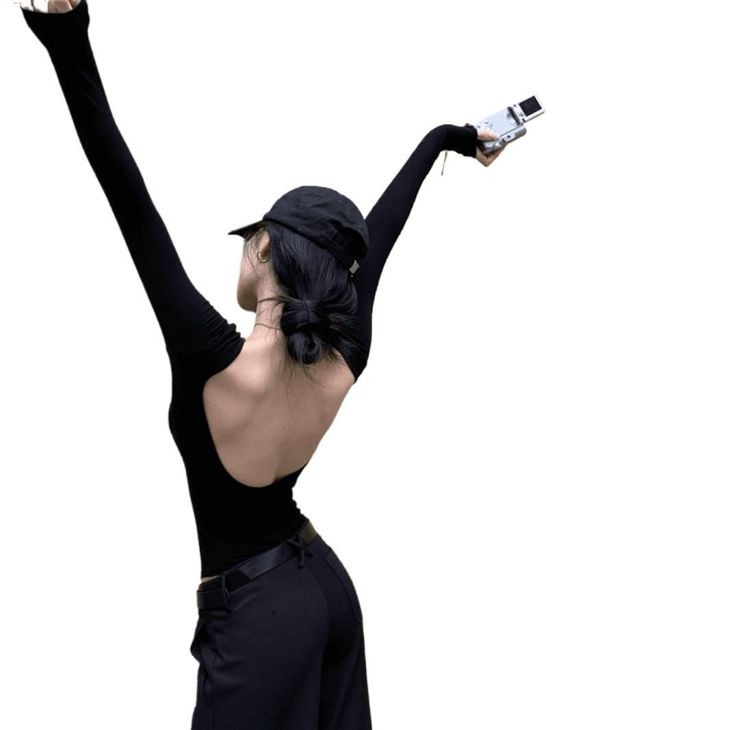 Горячая девушка сексуальная дикая роса с обтягающей спиной рубашка с длинными рукавами женская весна и лето черный нижний топ