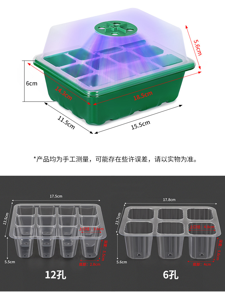 Пять наборов с лампами утолщения и повышения 12 лунок 6 лунок рассадная коробка с крышкой прозрачная мясистая роза черенкование розы