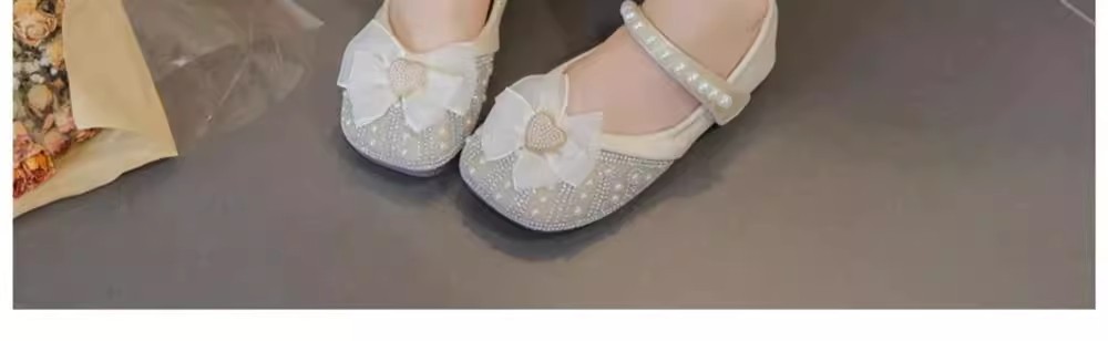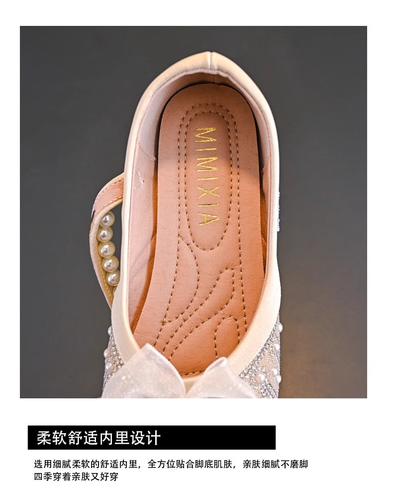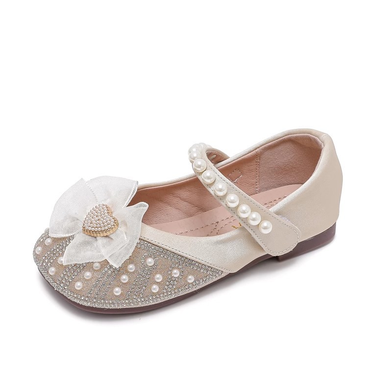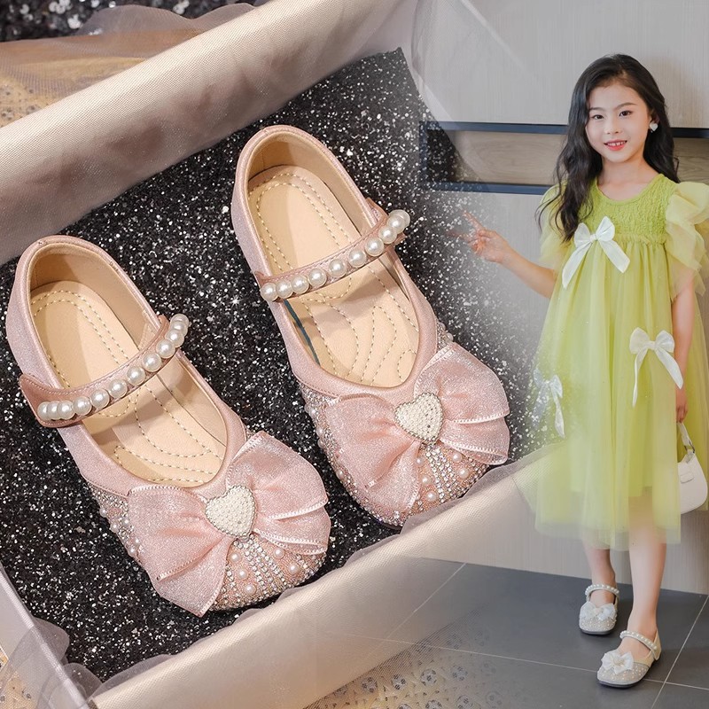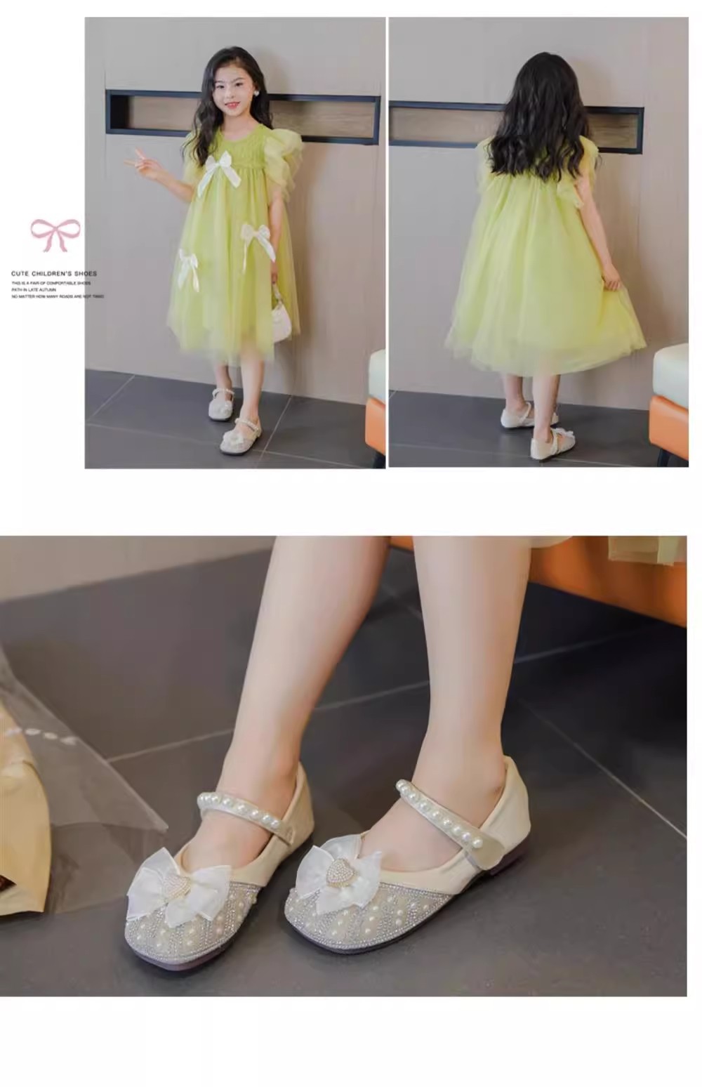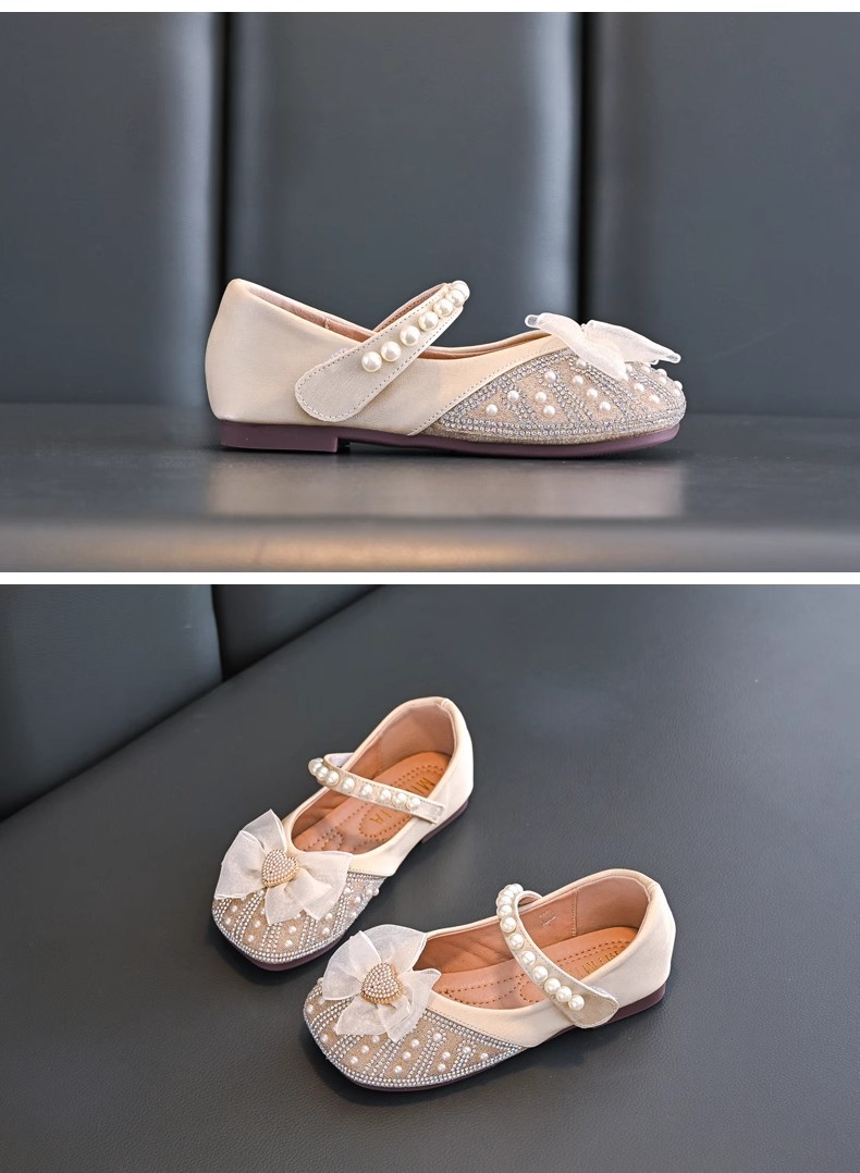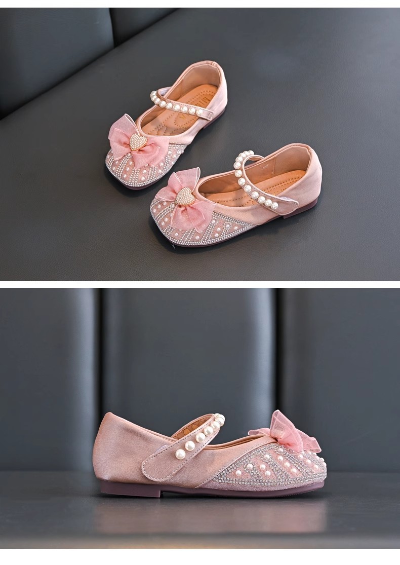 Принцесс обувь для девочек Весна и Осень 2025 Новый детский кожаный кроссовок хрустальный мягкий фон с платьем маленькая девочка с бантом