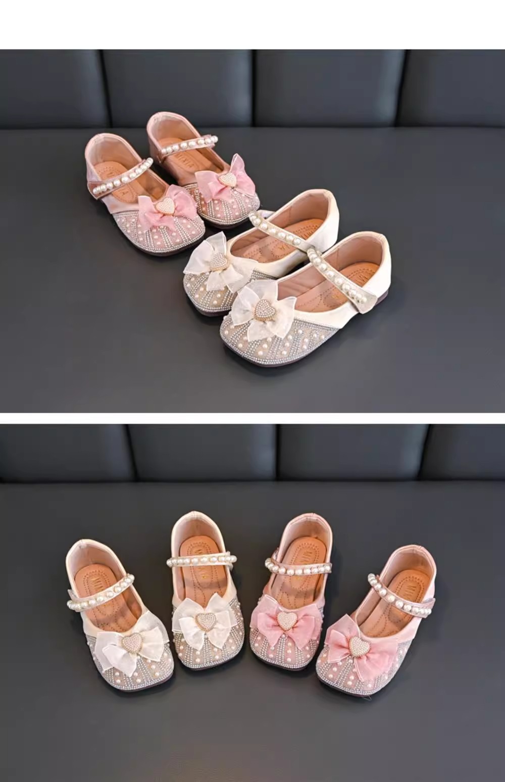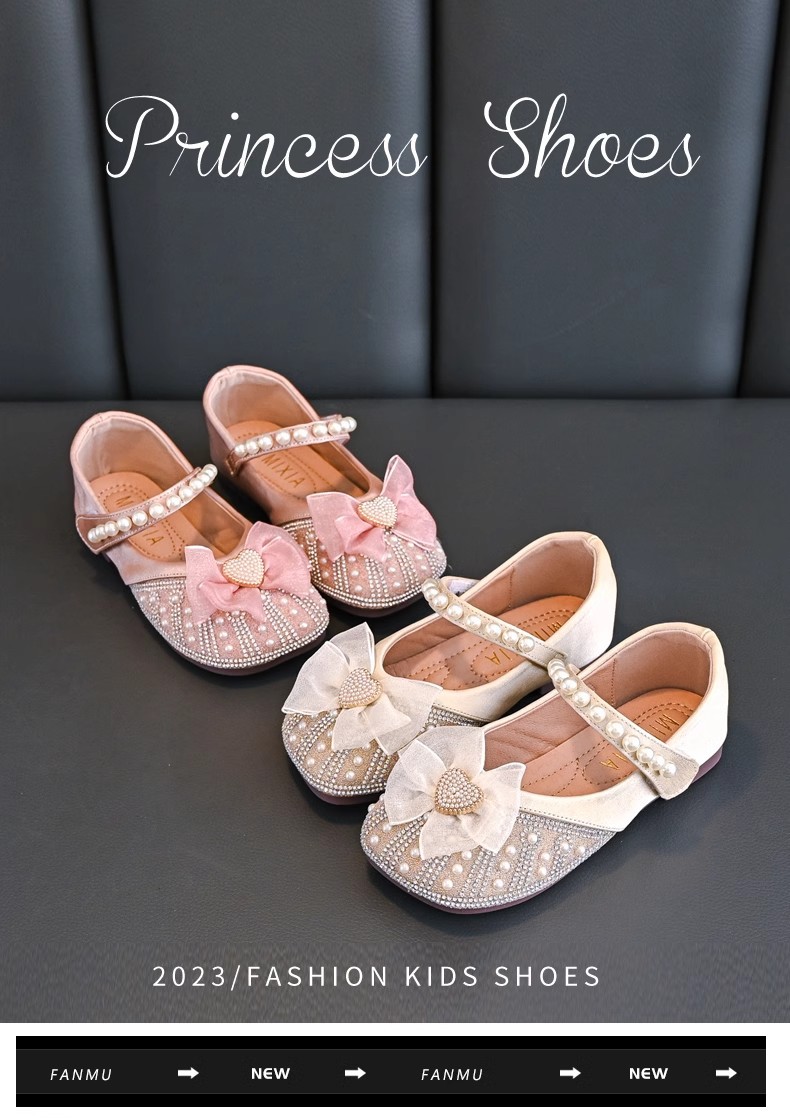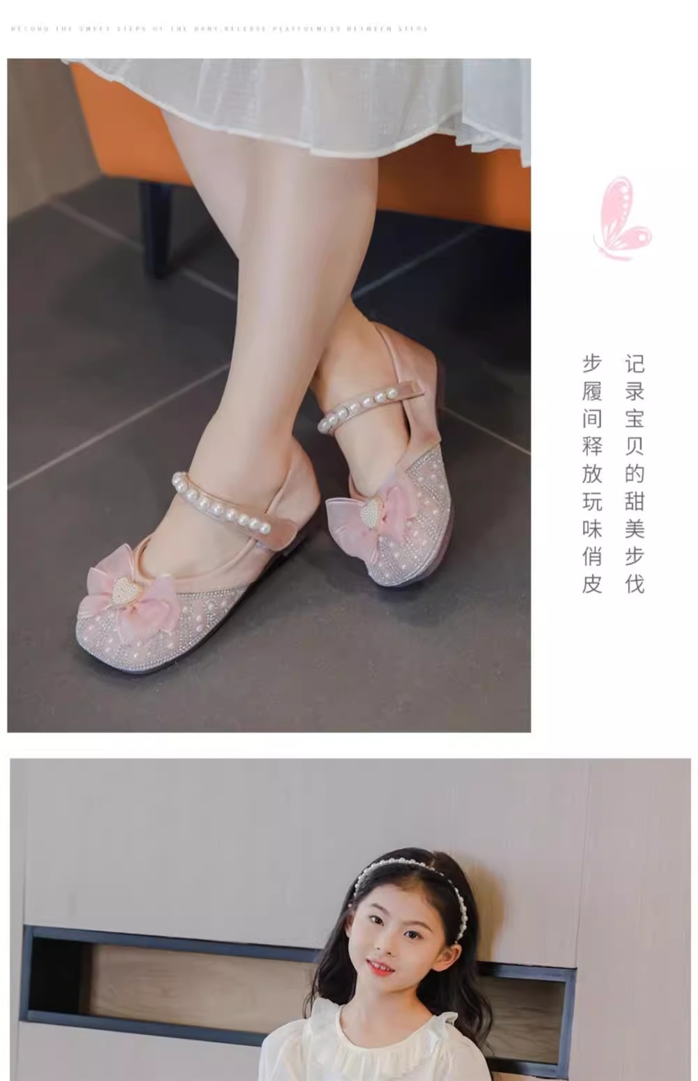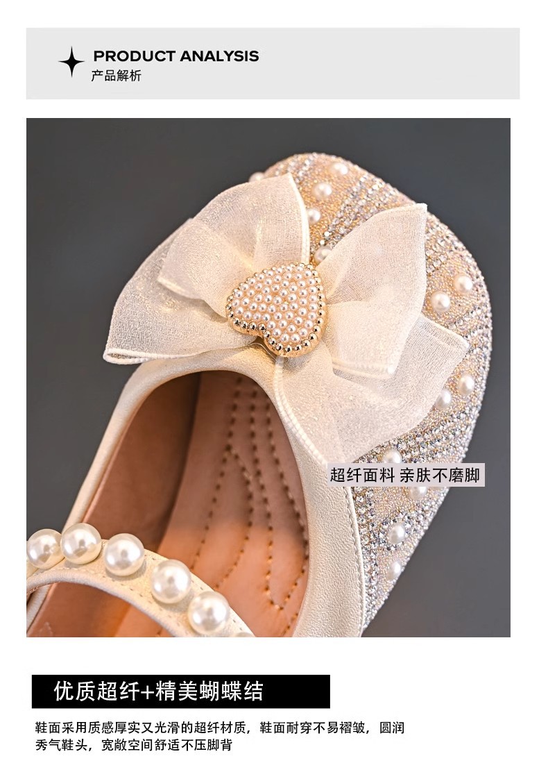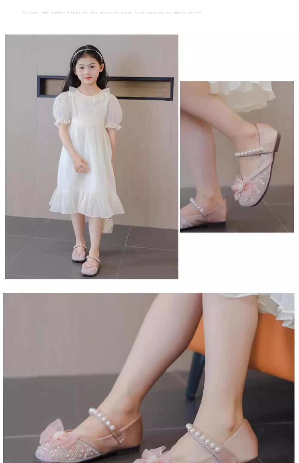 Принцесс обувь для девочек Весна и Осень 2025 Новый детский кожаный кроссовок хрустальный мягкий фон с платьем маленькая девочка с бантом
