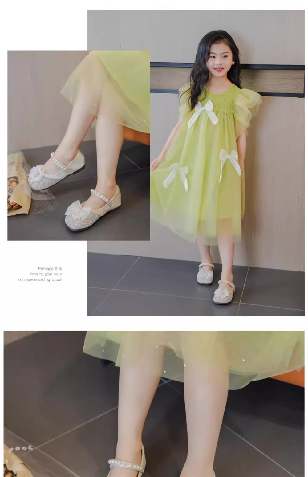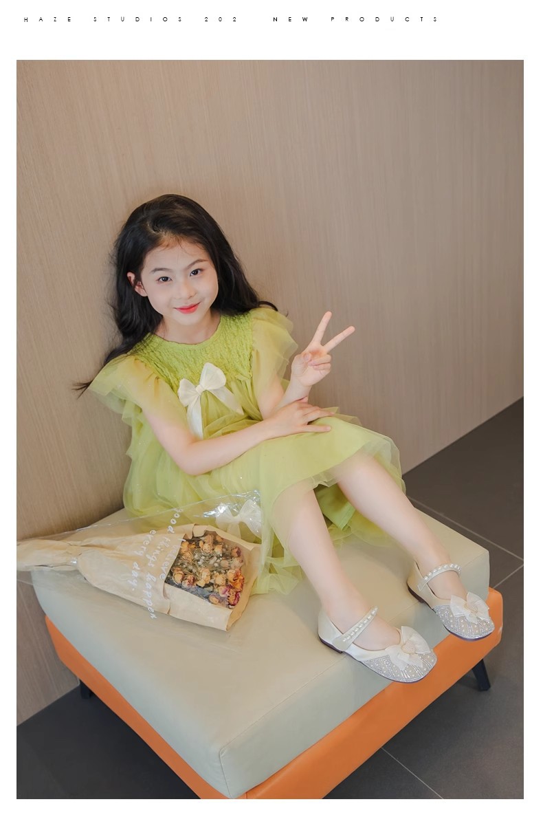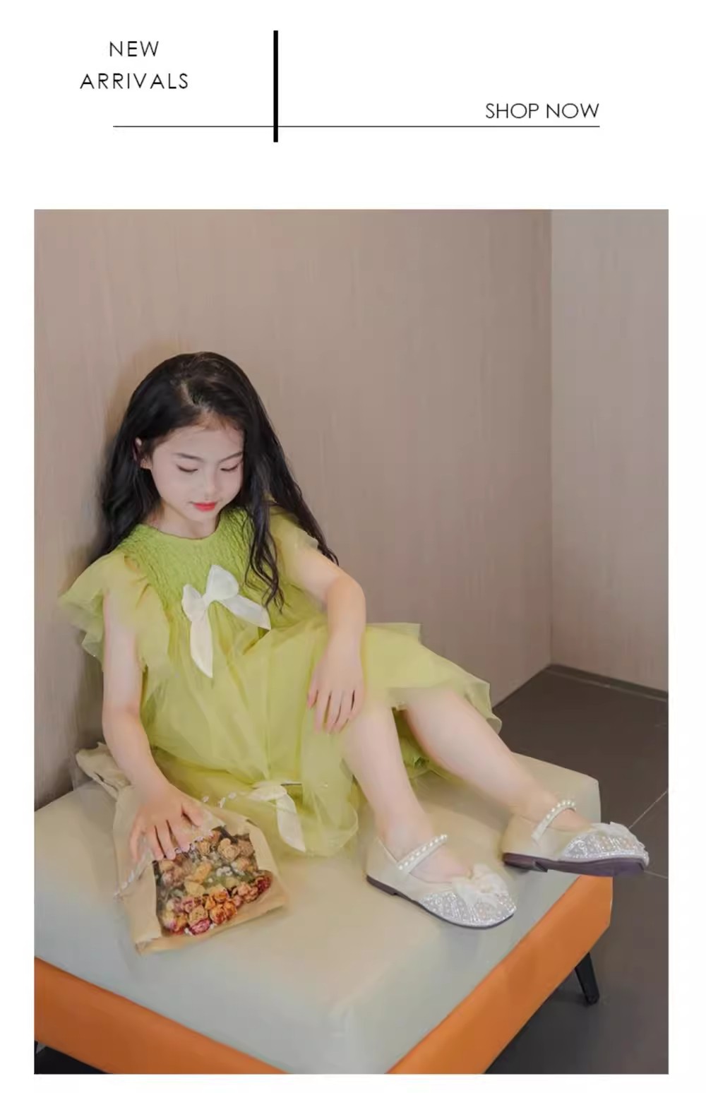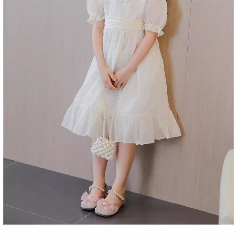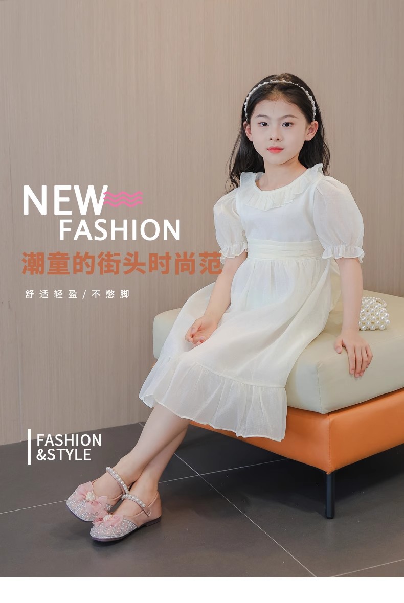 Принцесс обувь для девочек Весна и Осень 2025 Новый детский кожаный кроссовок хрустальный мягкий фон с платьем маленькая девочка с бантом