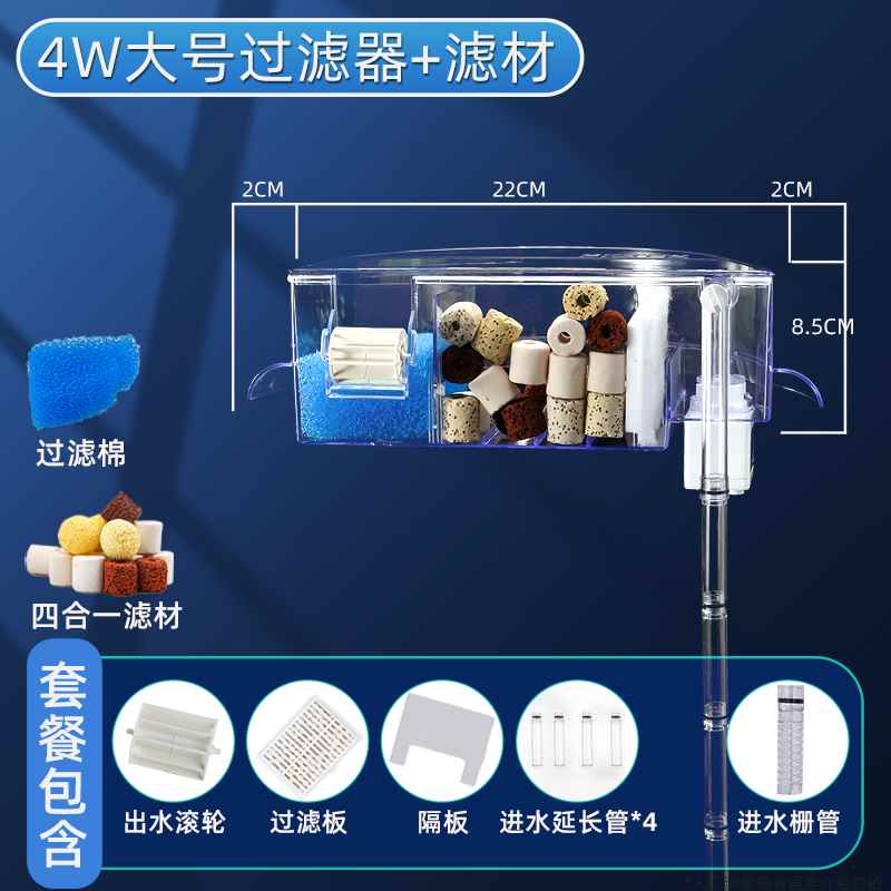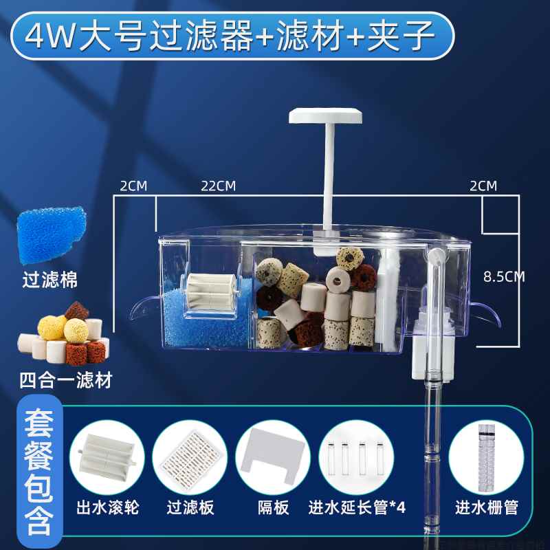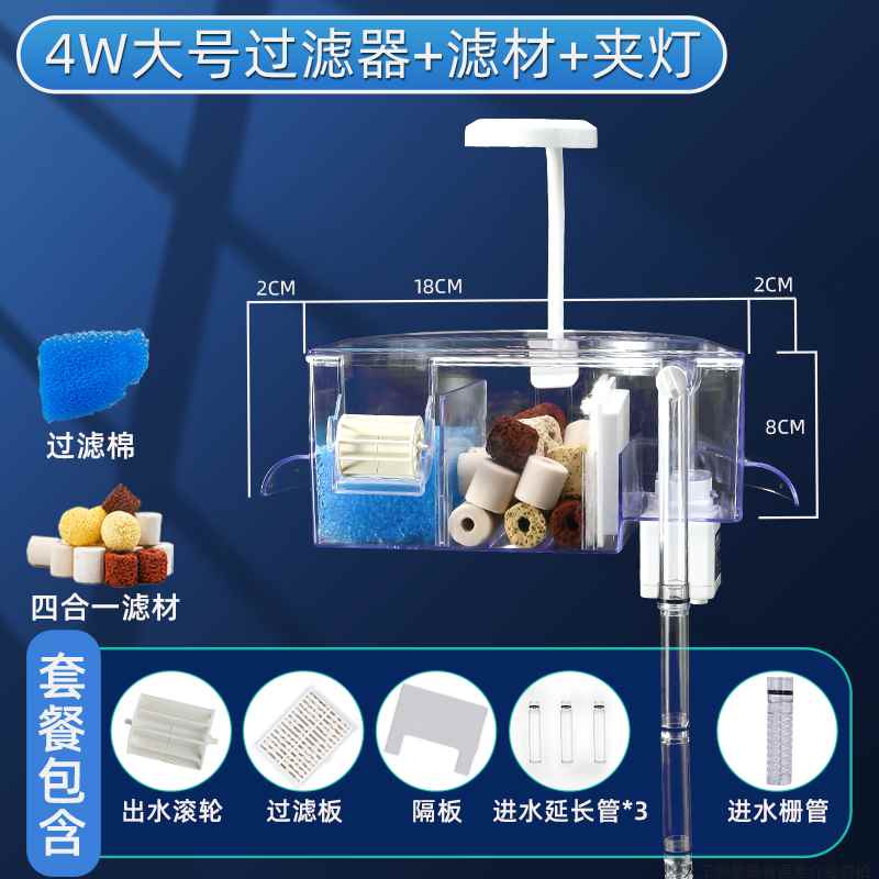 Маленький круглый цилиндрический фильтр подходит для диаметром 9,5–13,5 см.; Маленький круглый цилиндрический фильтр + светильник D-1 с зажимом (белый), подходит для диаметров 9,5–13,5 см.; Средний круглый цилиндрический фильтр [стандартная версия] подходит для диаметром 14-18 см.; Средний круглый цилиндрический фильтр + светильник D-1 с зажимом (белый), подходит для диаметром 14-18 см.; Большой круглый цилиндрический фильтр [стандартная версия] подходит для диаметром 18-22 см.; Большой круглый цилиндрический фильтр + светильник D-1 с зажимом (белый), подходит для диаметром 18-22 см.; Очень большой круглый цилиндрический фильтр [стандартная версия] подходит для диаметра 22-26 см.; Очень большой круглый цилиндрический фильтр + светильник с зажимом D-1 (белый), подходит для диаметра 22-26 см.; Фильтрующий материал 12-в-1 [ 0.5kg] поставляется с сетчатым мешком и нитрифирующими бактериями.; Пять цветных полых кварцевых шариков 0.5kg; Керамическое кольцо 0.5kg