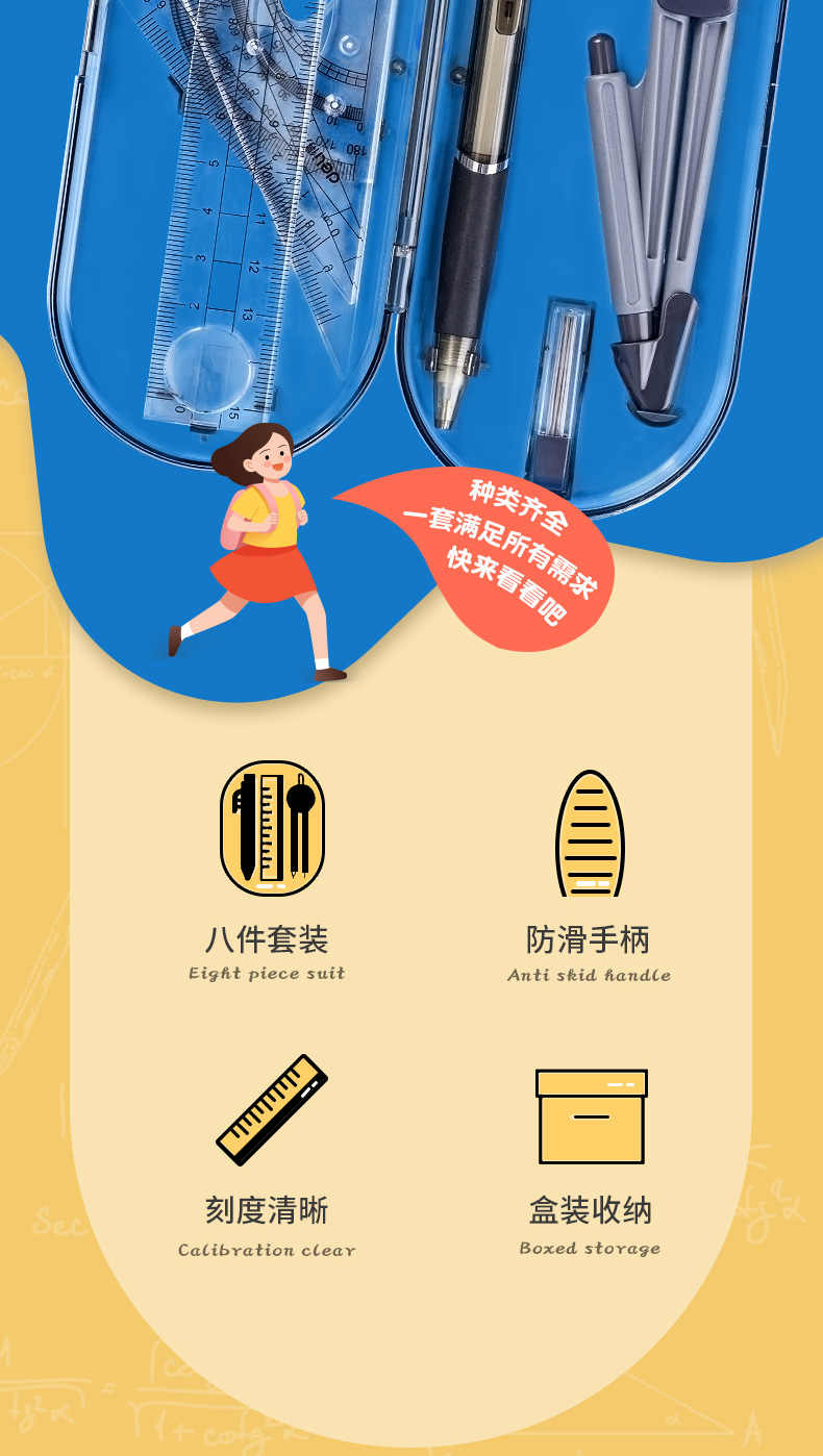 Металлический компас, набор из 2 предметов, набор из 8 предметов (набор линеек, набор из 4 предметов/управление/сердечник/резина)
