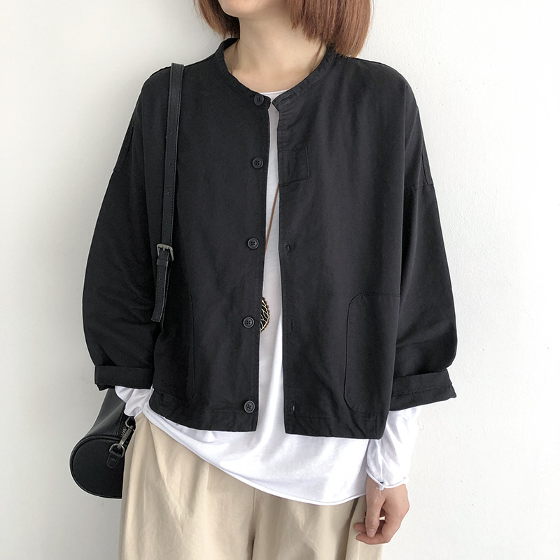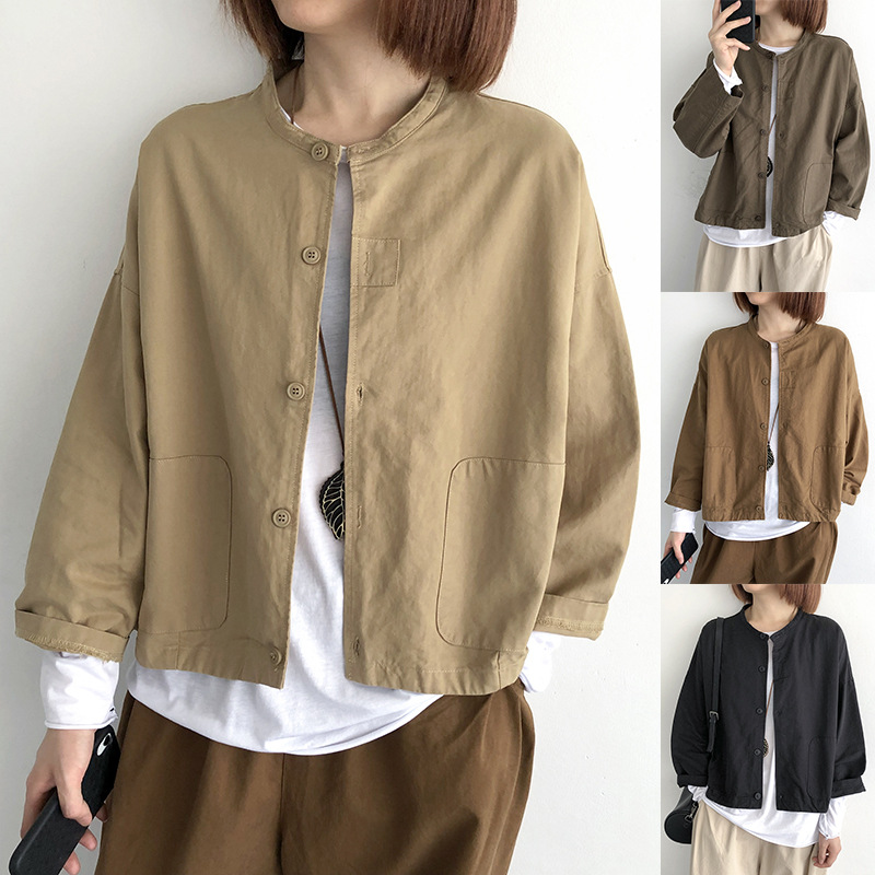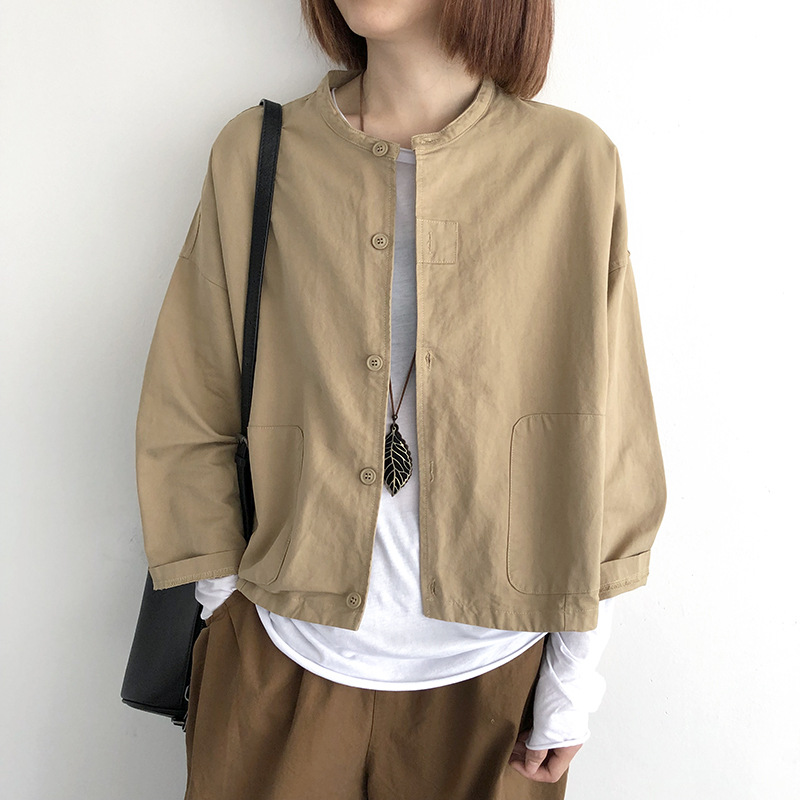 Весеннее и осеннее пальто женская свободная дикая повседневная куртка с коротким верхом в начале осени тонкий однотонный кардиган с длинными рукавами