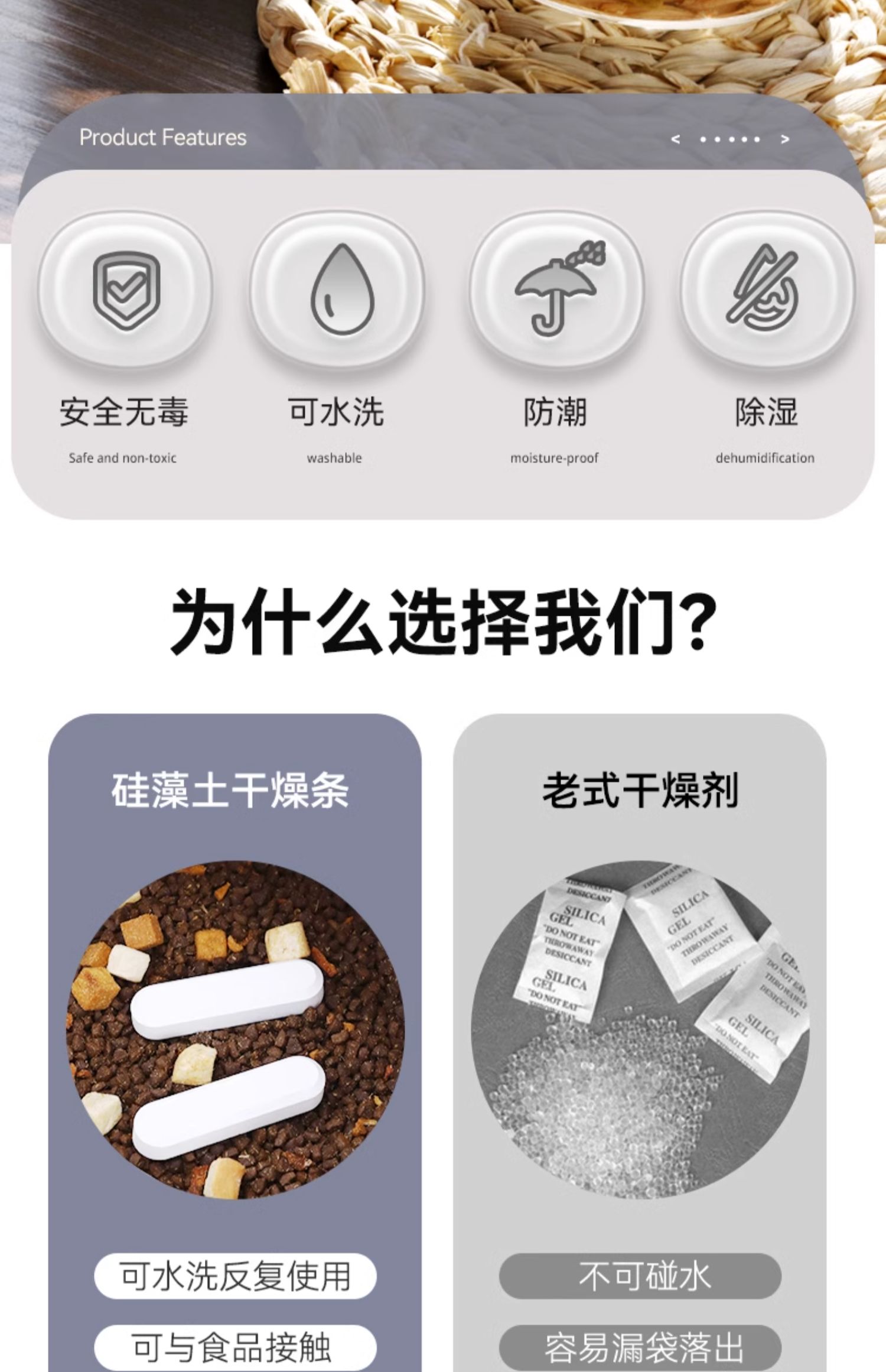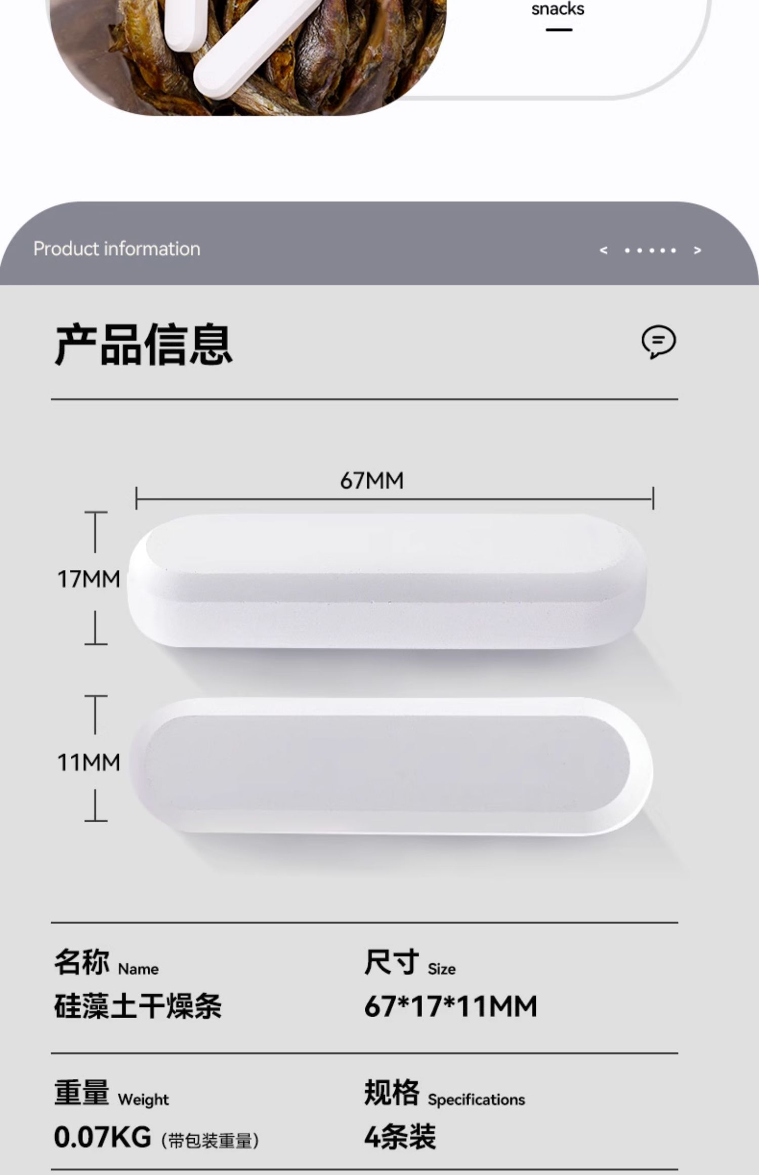 1 упаковка белых сухих полосок (4 полоски) 1 упаковка белых сухих полосок (4 полоски) подходит для зерна весом до 10 кг.; 2 упаковки белых сухих полосок (8 полосок) 2 упаковки белых сухих полосок (8 полосок) подходят для пищи весом до 20 кг.; 3 упаковки белых сухих полосок (12 полосок) 3 упаковки белых сухих полосок (12 полосок), пищевого поглощения влаги, консервации и защиты от плесени.; 5 сухих полосок [пакет чулок]