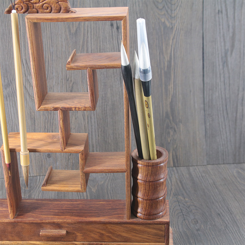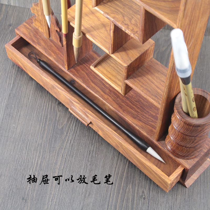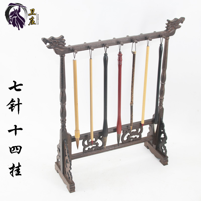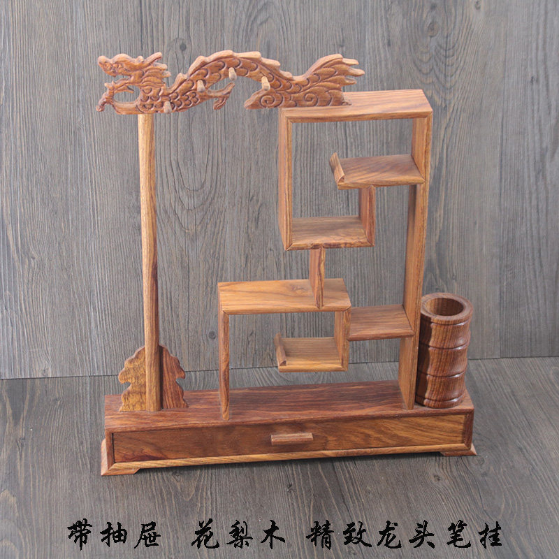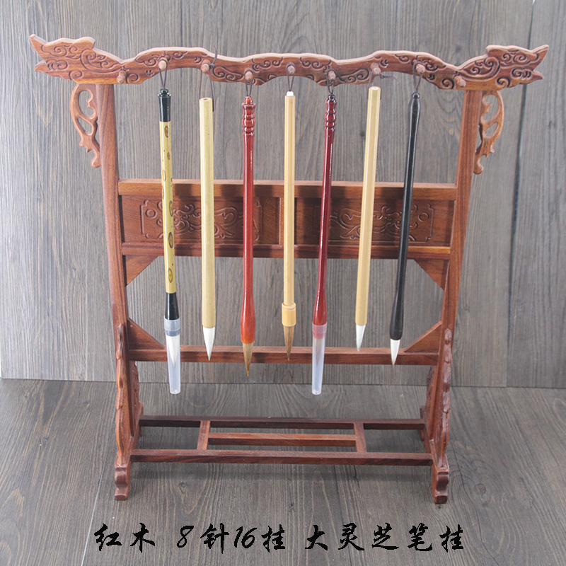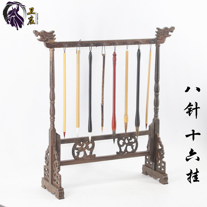 鸡翅木 8针16挂【规格】:长47*高47*宽14厘米 龙头笔挂