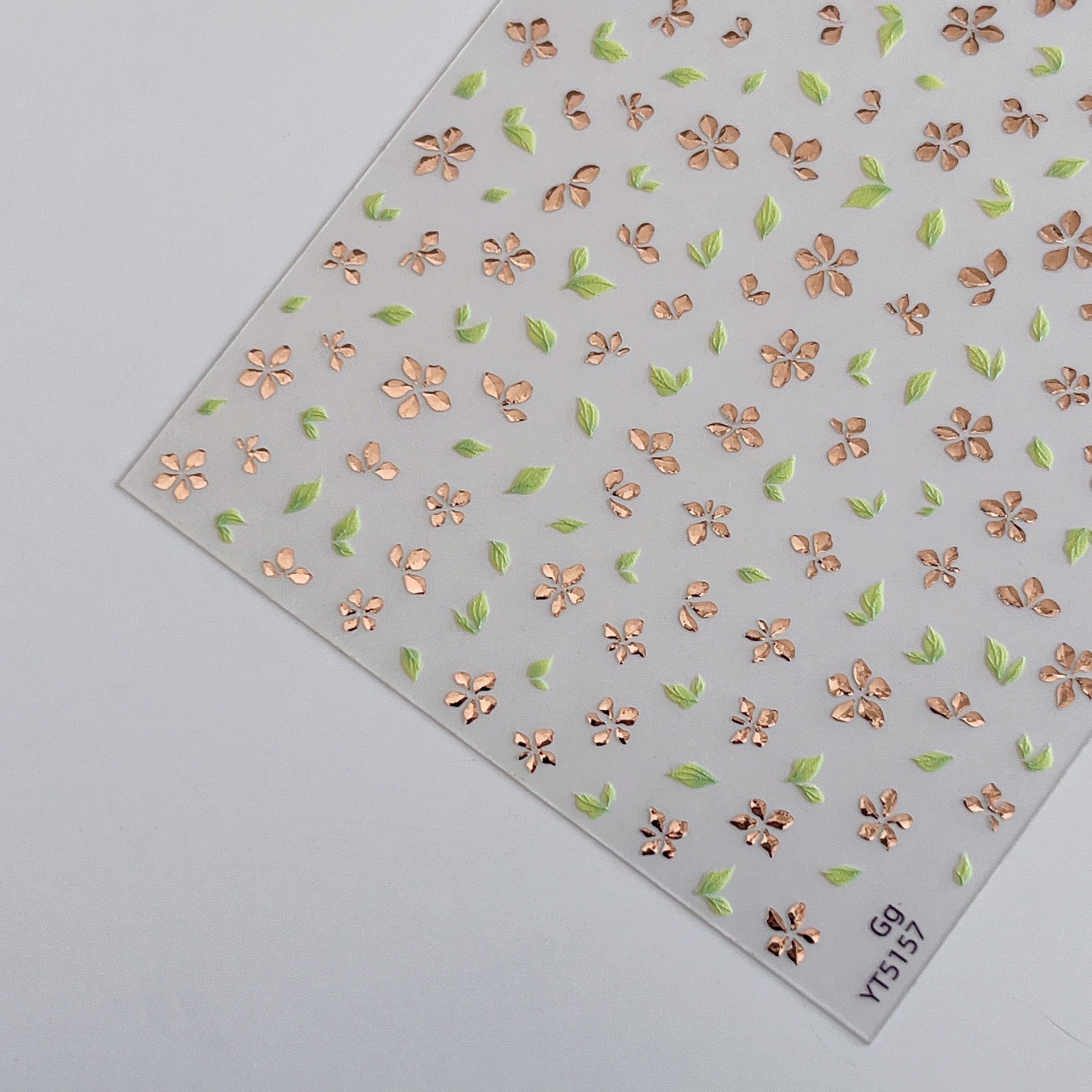 Новая бронзовая наклейка с пятью лепестками для ногтей наклейки с зелеными листьями изысканный мини-декор с подрезкой для ногтей украшения оптом