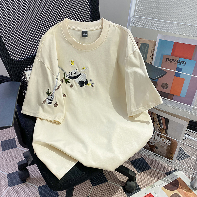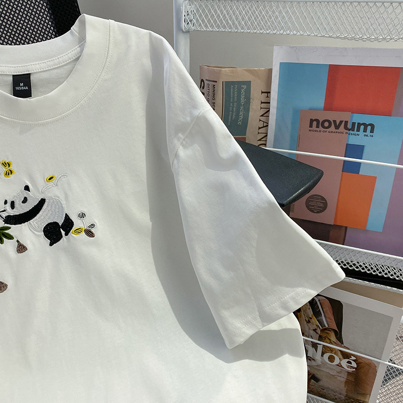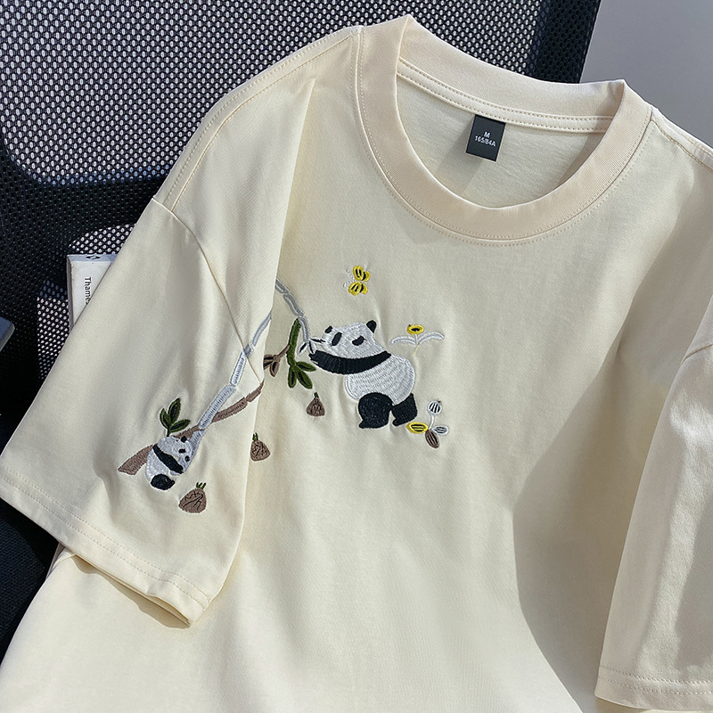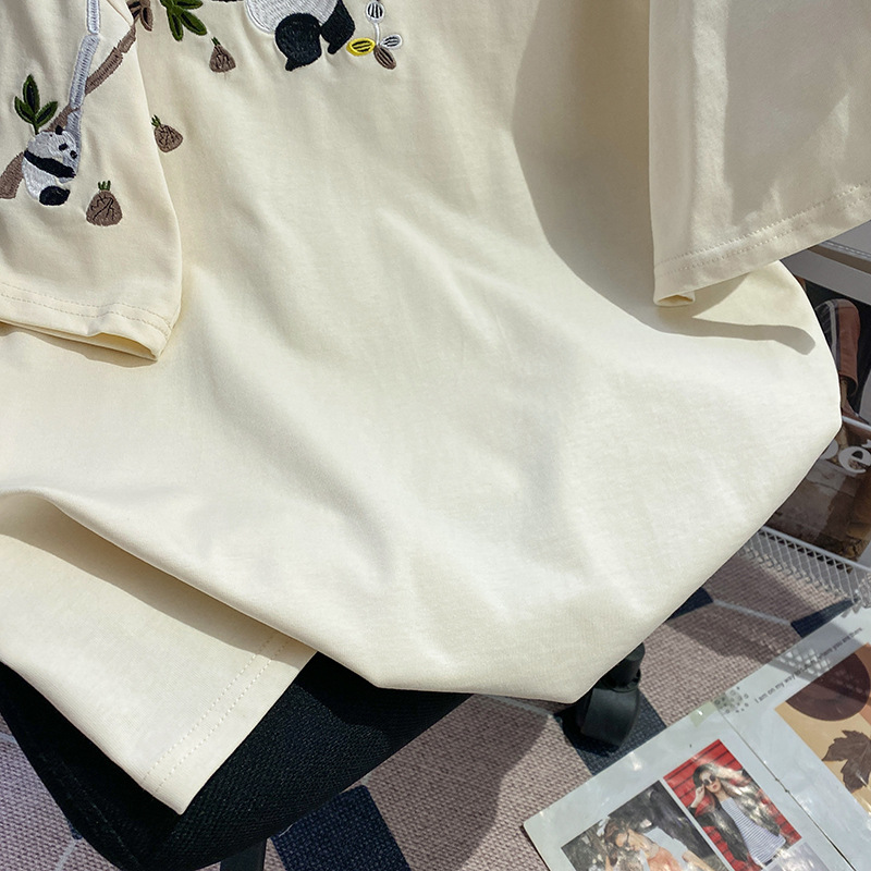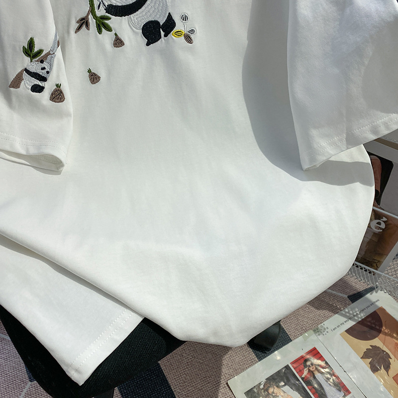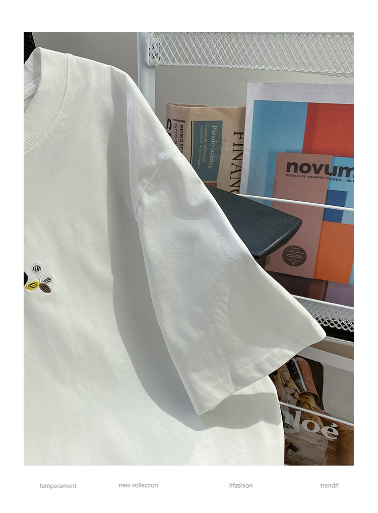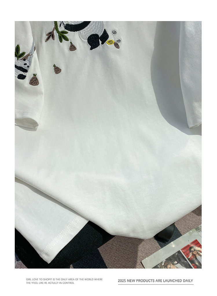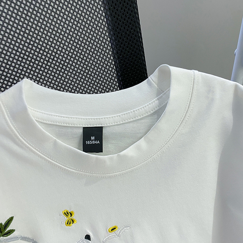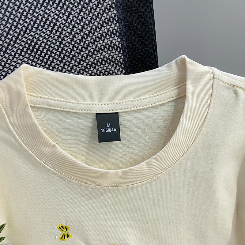 Реальная стрельба 32 футболки с короткими рукавами из двойной пряжи женская летняя 2025 новая вышивка тонкое плечо короткая корейская топ с круглым вырезом