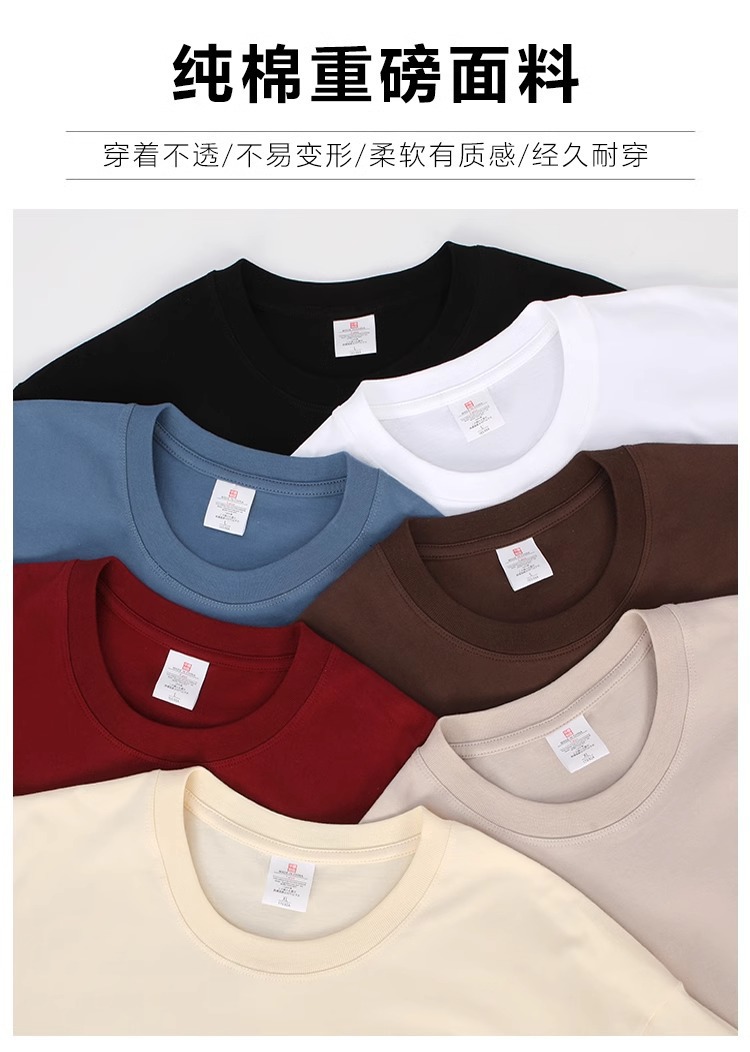 260-граммовая хлопковая футболка с короткими рукавами мужская летняя свободная большая сумка с принтом полукрукавов простой сплошной цвет мужской пятицентный рукав