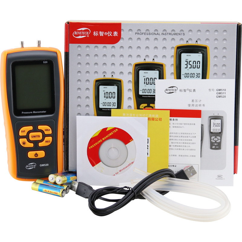 БЛИЦА BENETECH Цифровой дифференциальный манометр GM520 Газовый манометр 35KPa Высокоточный барометр