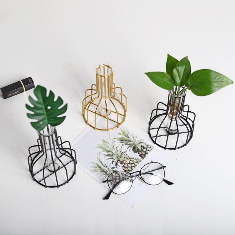 Оптовая продажа железа гидропонная зеленая розовая ваза для украшения сушеных цветов