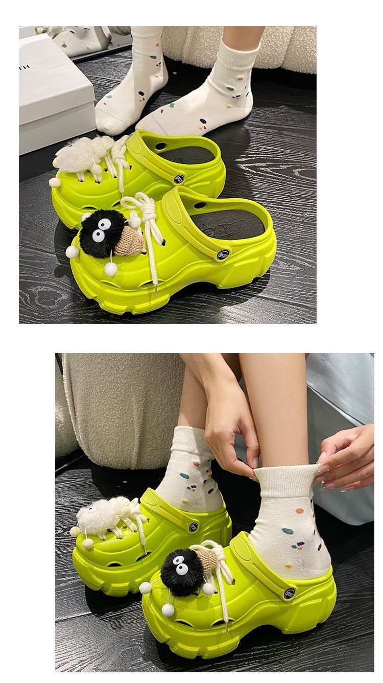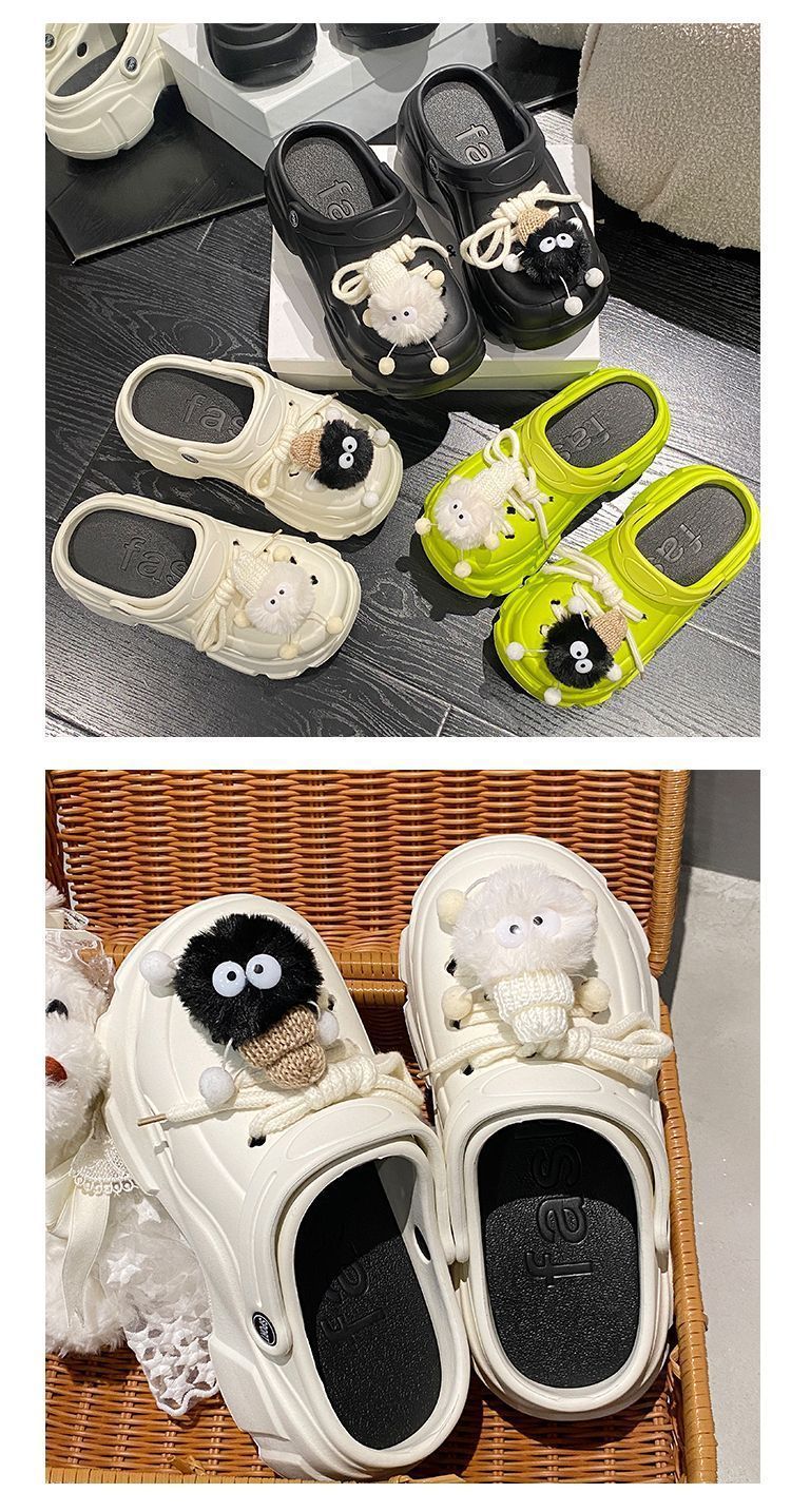 8388 меховой шарик маленькие сабо-монстры белого цвета; 8388 меховые шарики маленькие монстры зеленые сабо; 8388 меховые шарики маленькие монстры черные сабо