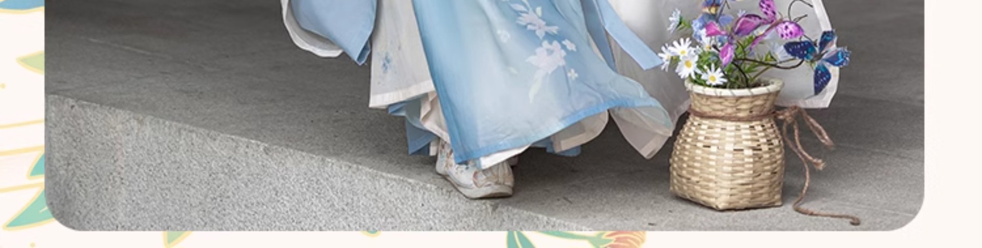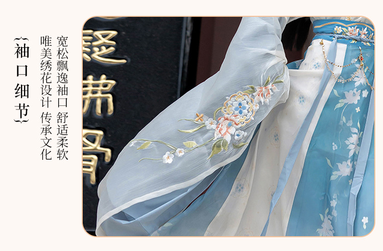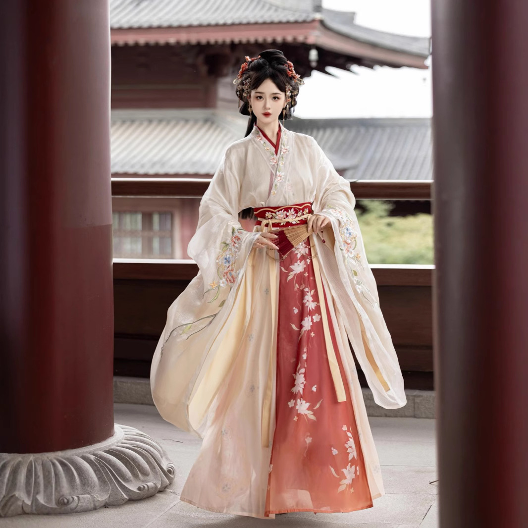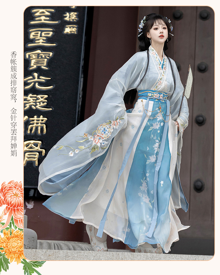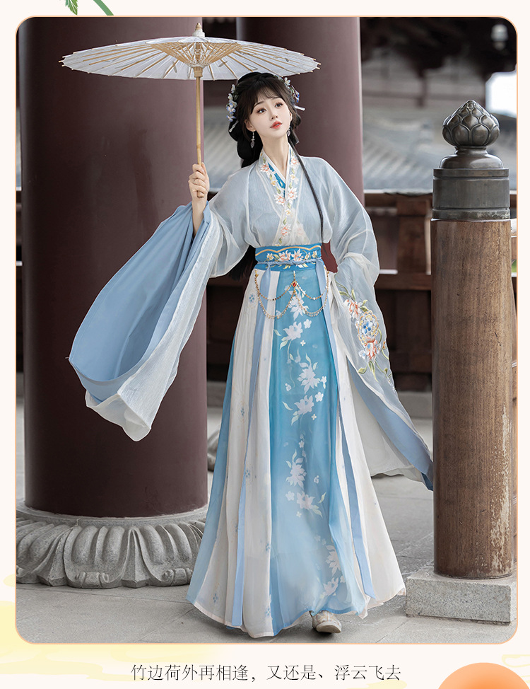 Бежевые верхние большие рукава + бежевые внутренние большие рукава + красная восьмибортная юбка + поясная цепочка; Бежевые большие внешние рукава + синие большие внутренние рукава + синяя восьмибортная юбка + поясная цепочка