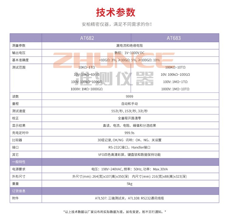 AT682(1000V/1TΩ); AT683(1000V/10TΩ)